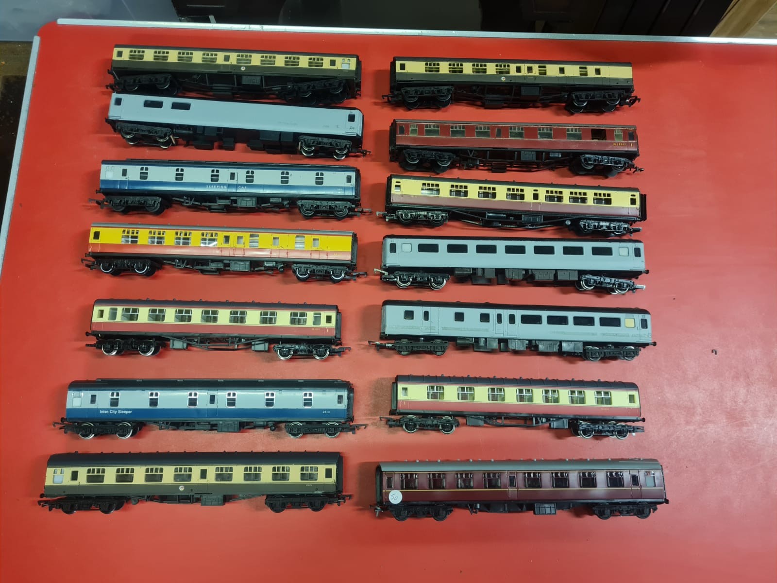 14 railway carriages to include mainly Hornby.