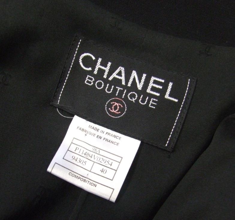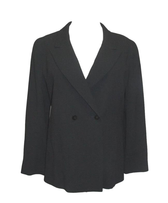 Ladies Chanel Boutique Black Wool Crepe Jacket with 95% silk lining, labelled size 40