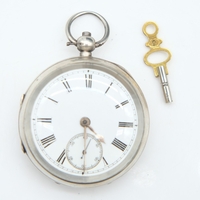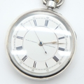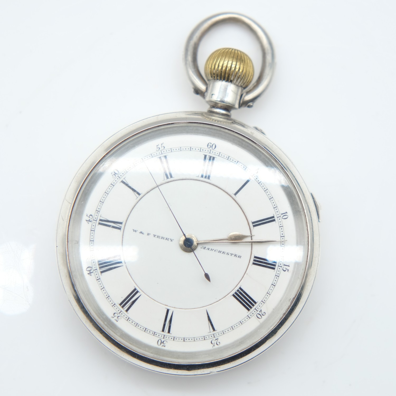 925 hallmarked silver crown-winding chronograph pocket watch with seconds hand, by W & F Terry of Manchester, working at lotting up, 162g gross weight. UK P&P Group 1 (£18+VAT for the first lot and £2+VAT for subsequent lots)