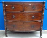 Unusual Low Mahogany C19th Bow Fronted Chest of 2 Short & 2 Long Graduated Cock Beaded Drawers with later oval brass plate handles on out-swept bracket supports, approx. 30' H x 40 1/2' W x 20' D