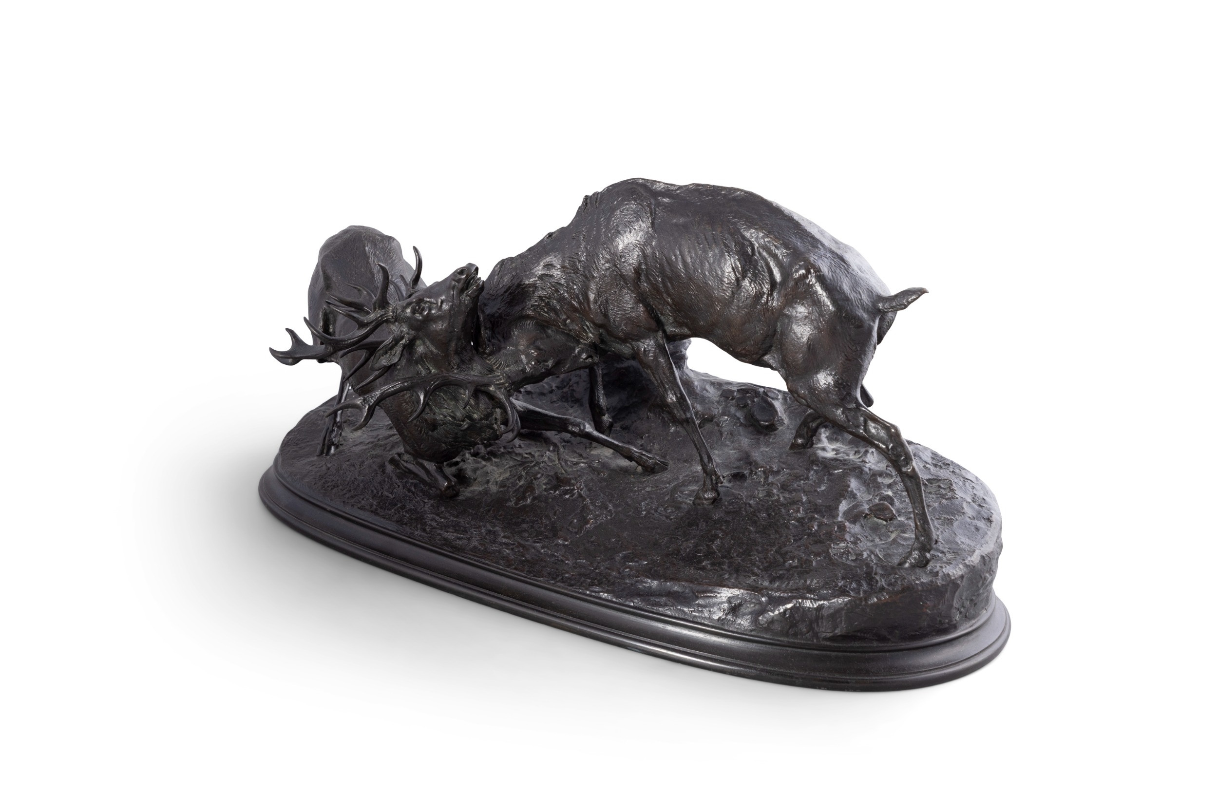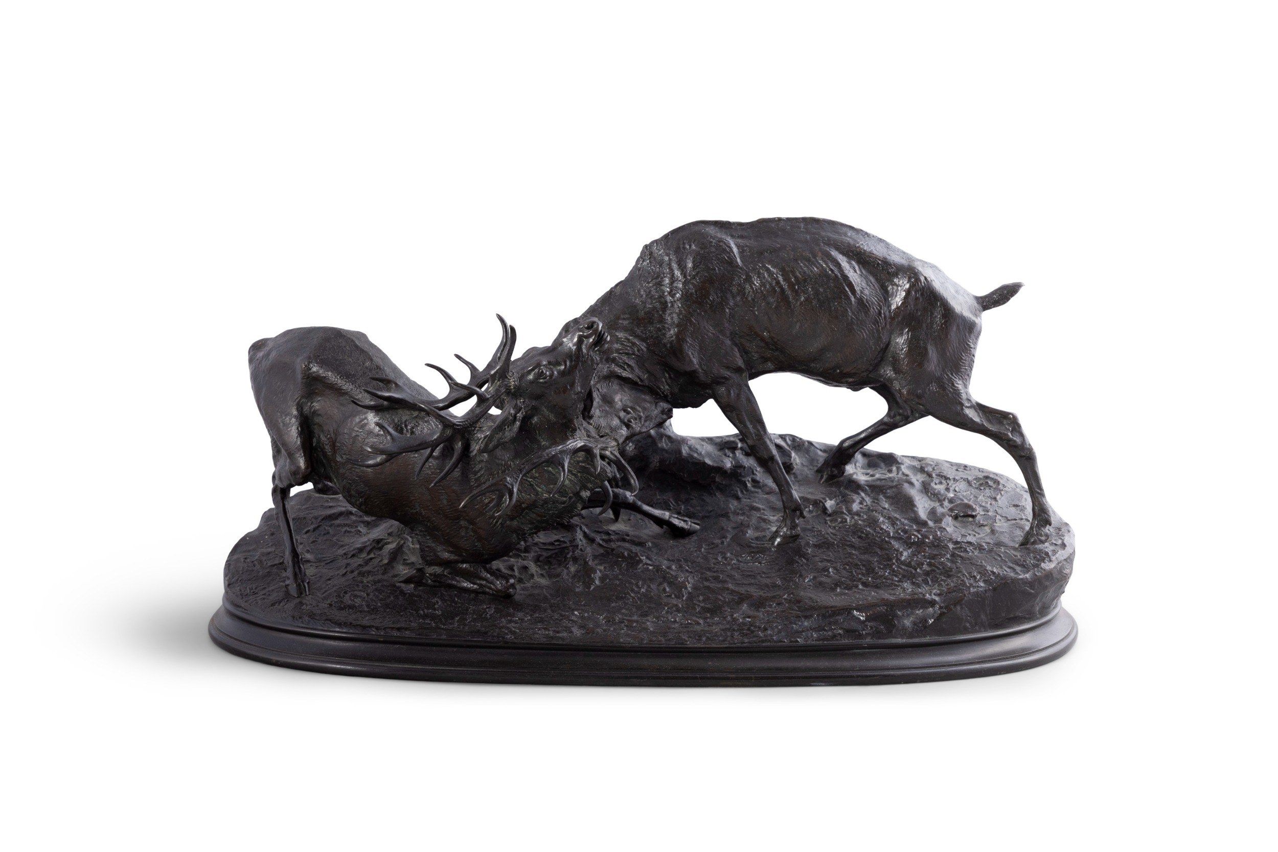 PIERRE-JULES MÊNE (1810-1879) Stags Rutting Bronze, 28 x 60cm Signed