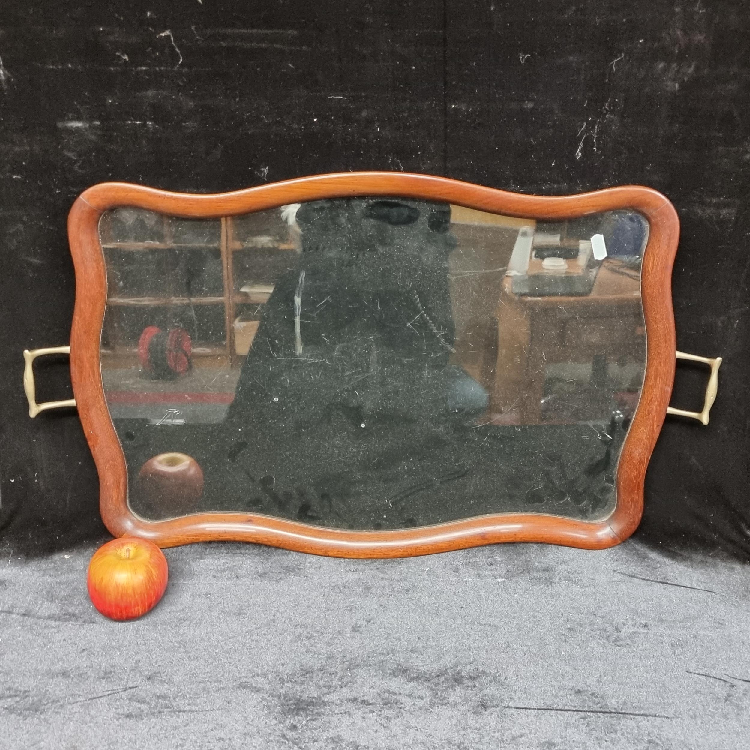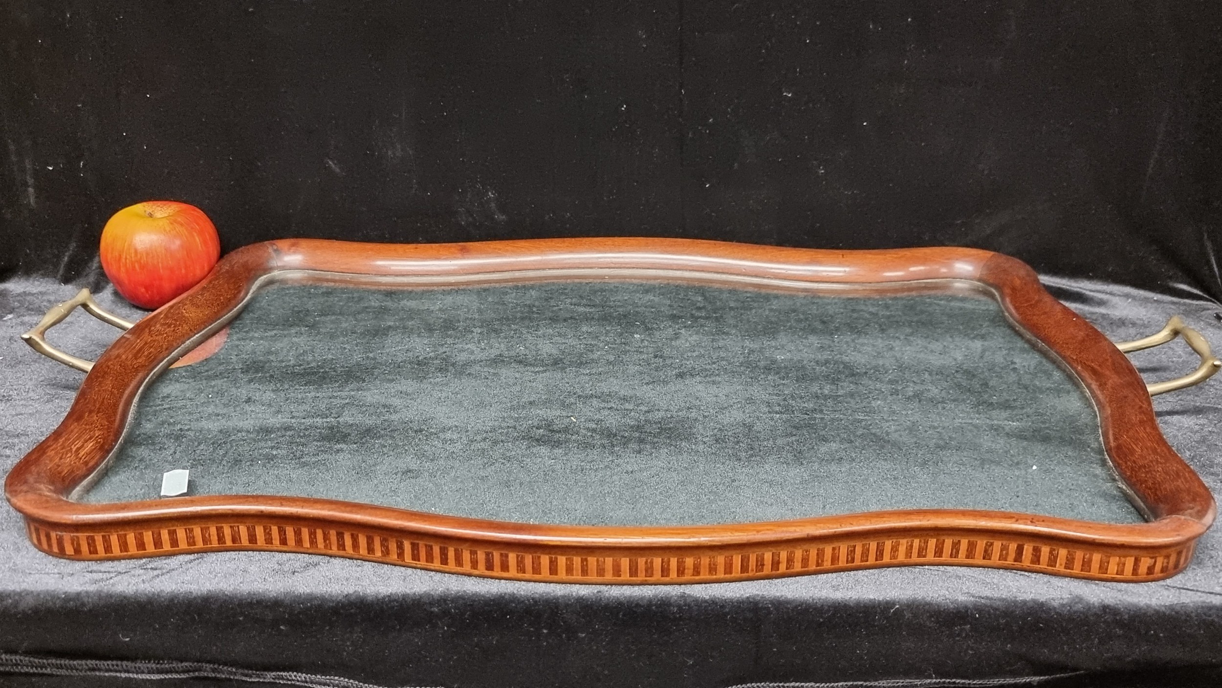 Star Lot : A large Victorian glass bottomed, mahogany framed tray, with inlaid banded, serpentine surround and two brass handles. Fabulous looking piece in lovely condition