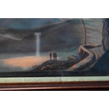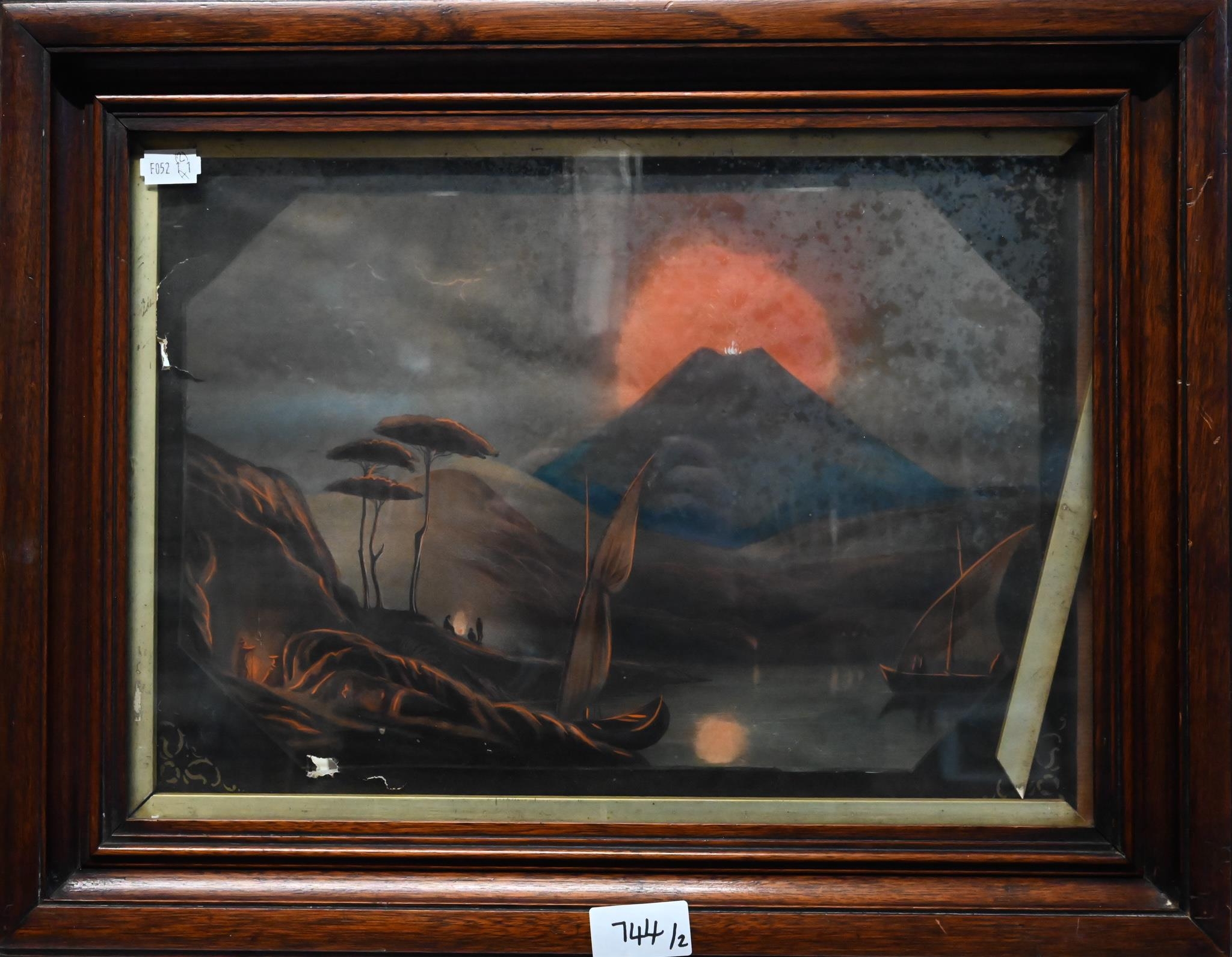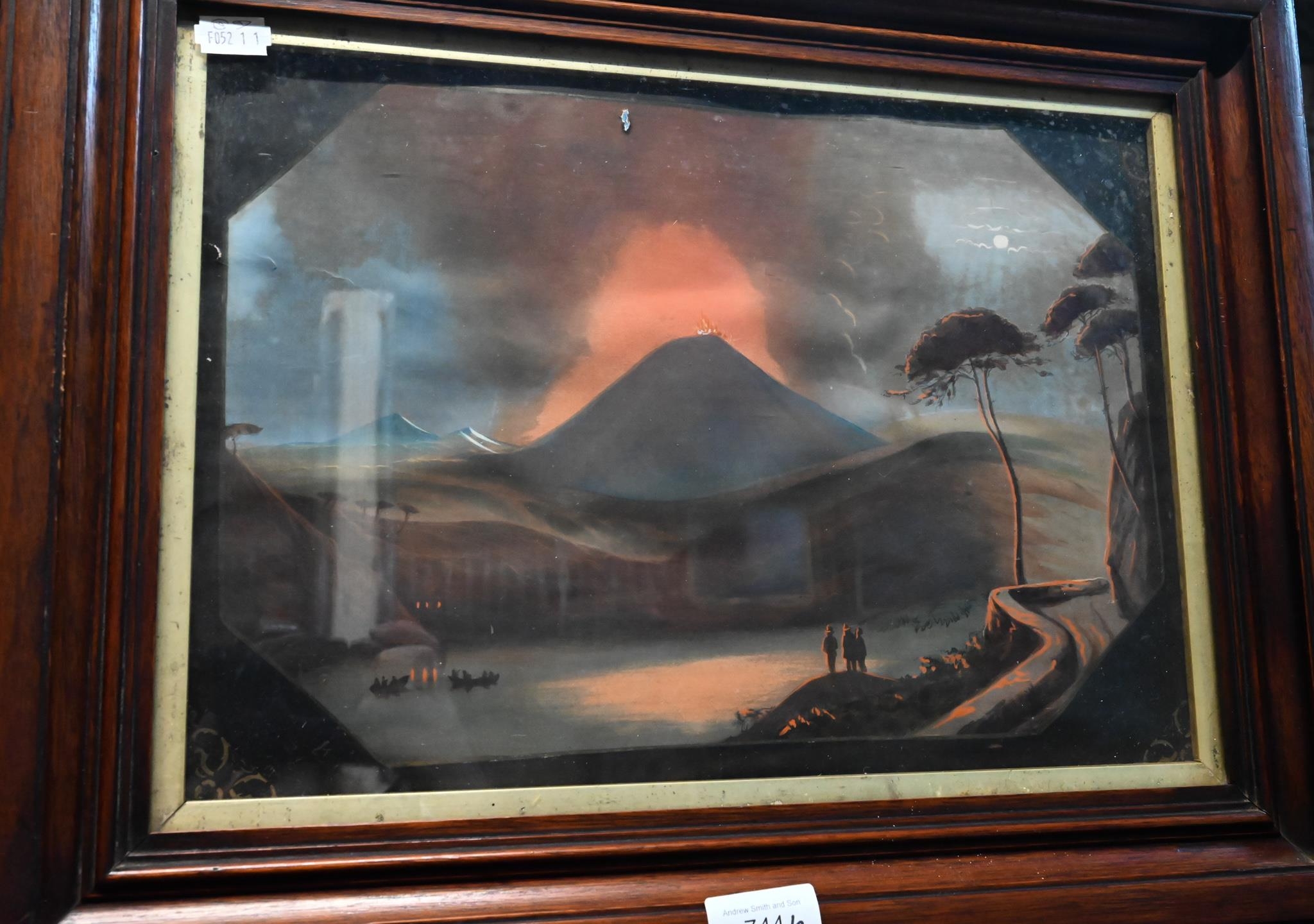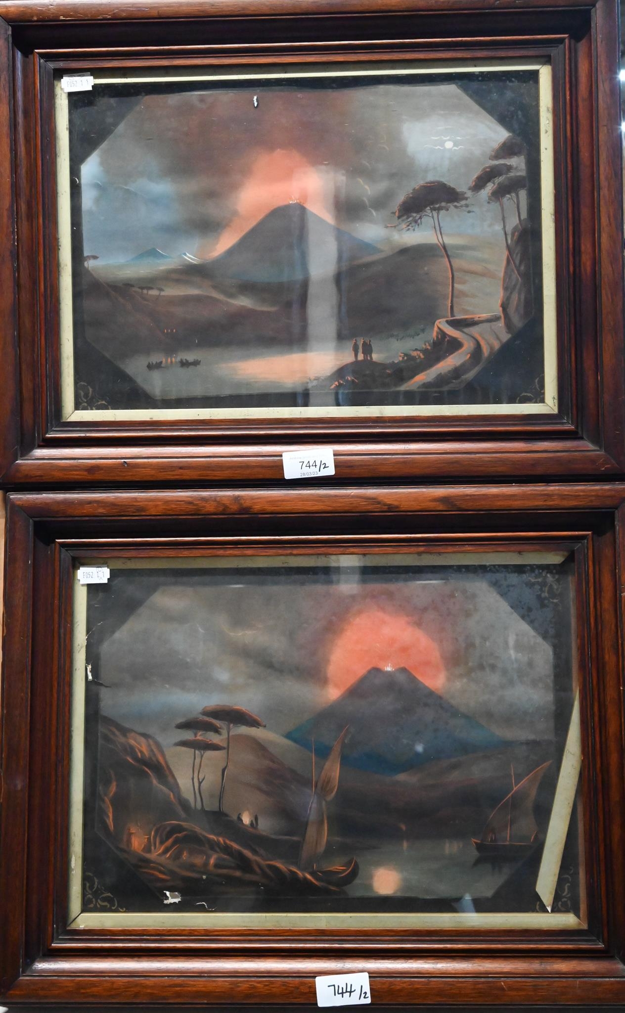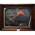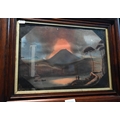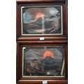 19th century Neapolitan school - A pair of studies of Vesuvius erupting at night, with figures watching, watercolour, 28 x 37 cm a/f