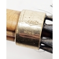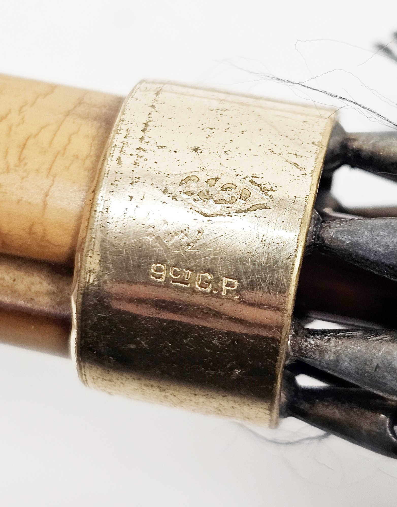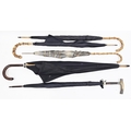 Collection of five mid-20th century umbrellas, one with 9ct gold ferrule and curved bamboo handle, another with a horn and silver mounted handle, a Lynkx Golphello umbrella and two others with bamboo handles (5)