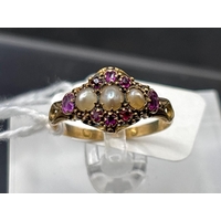 Antique Edwardian Ruby and diamond 18ct 5 stone ring, size M...