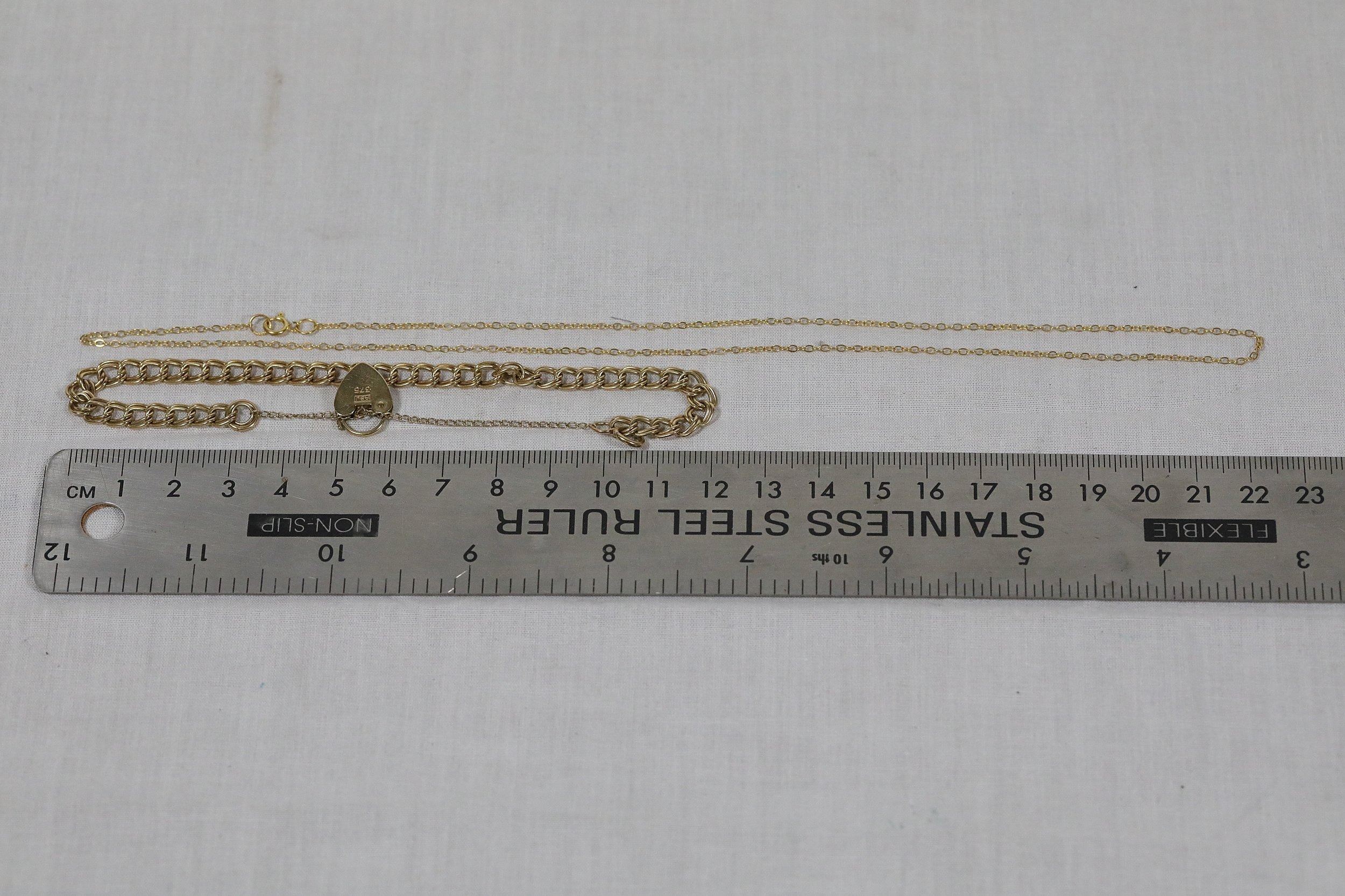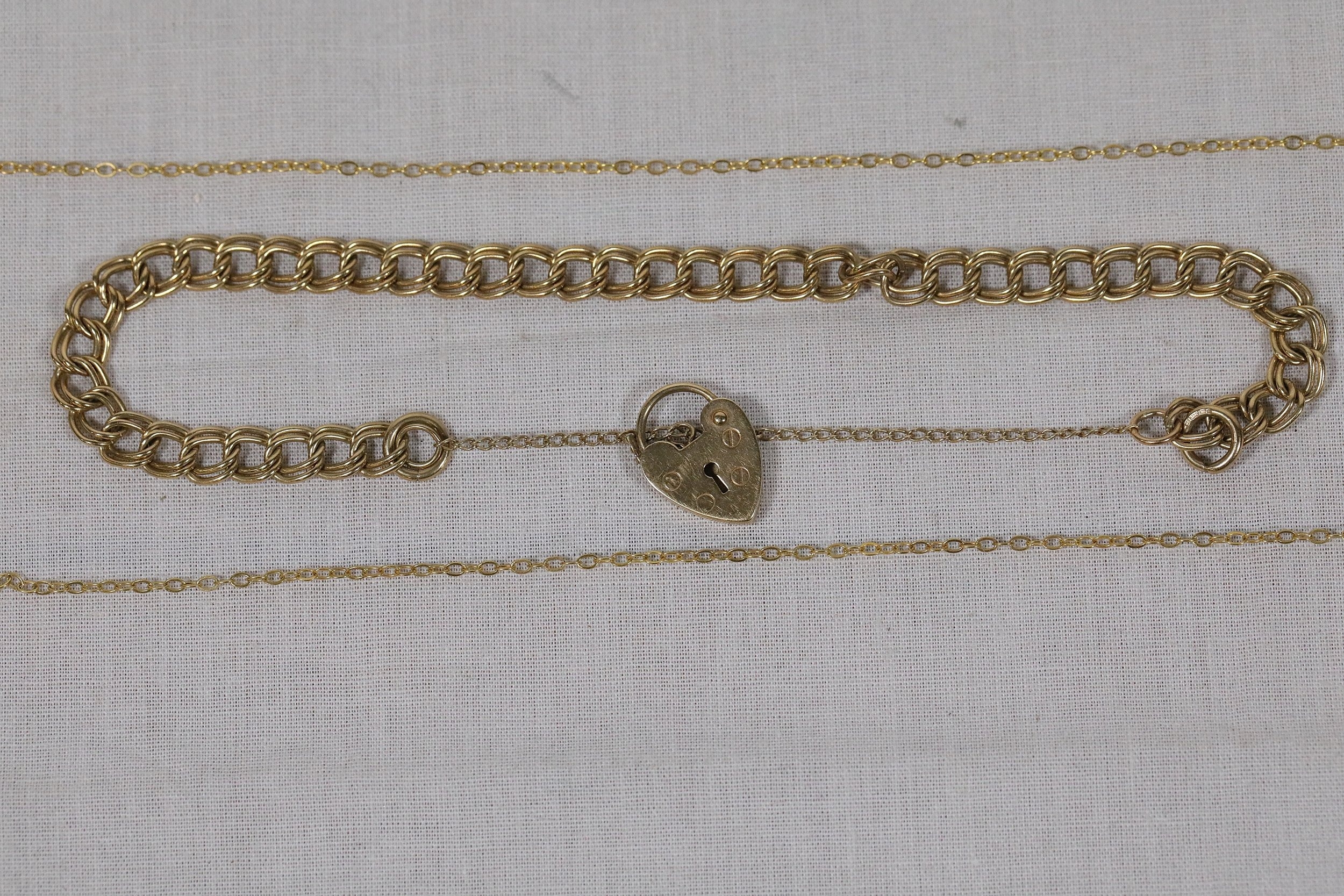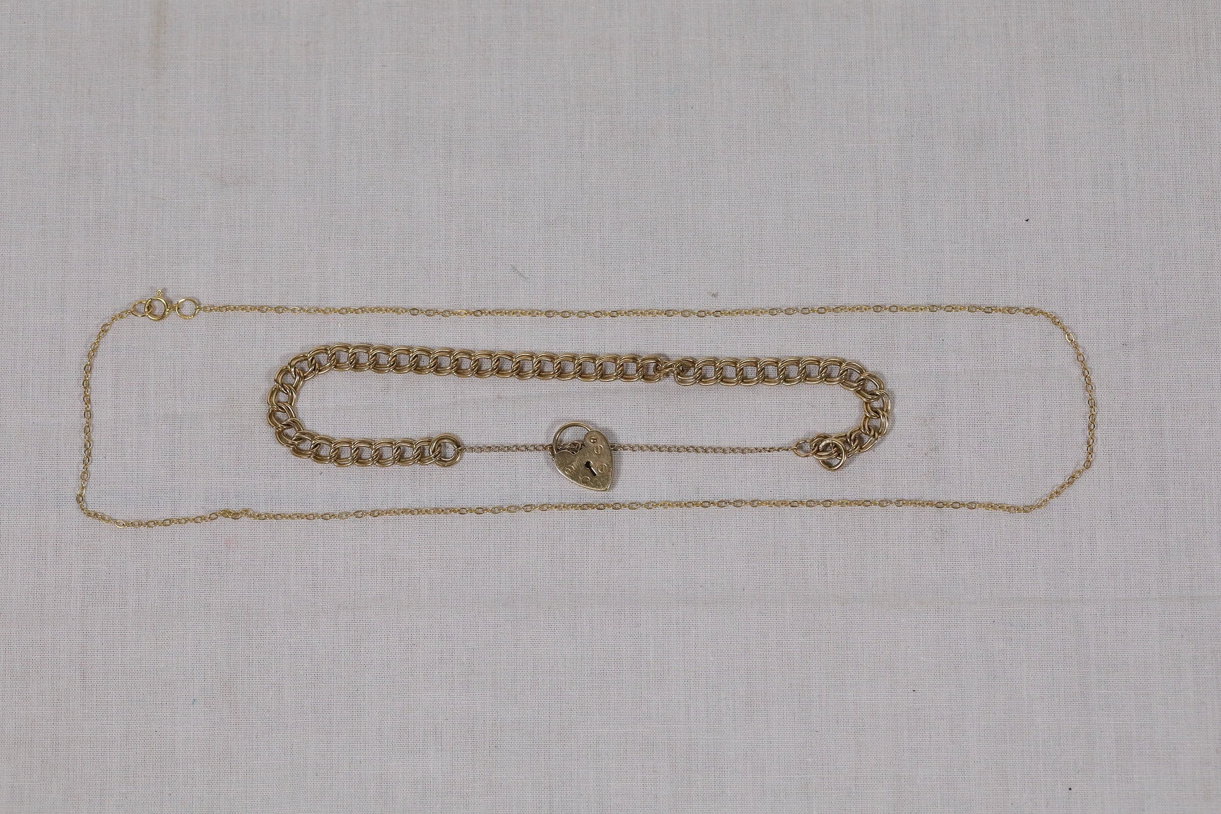9ct Gold Chain and Heart Padlock Bracelet, 8.5g total weight