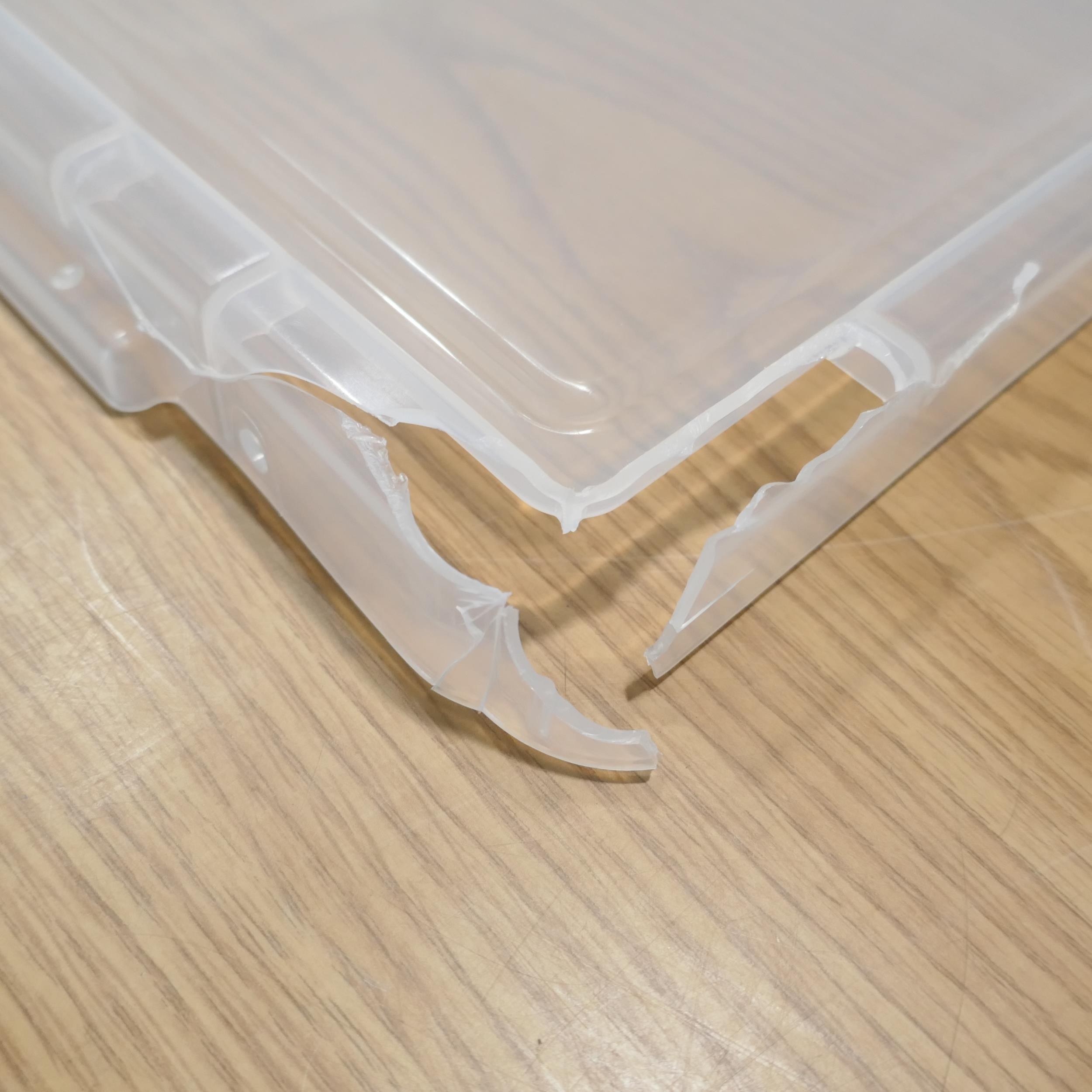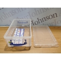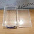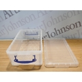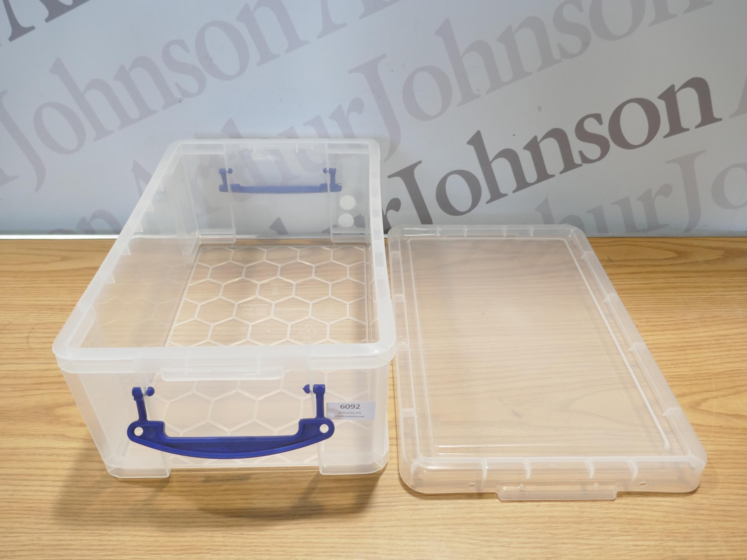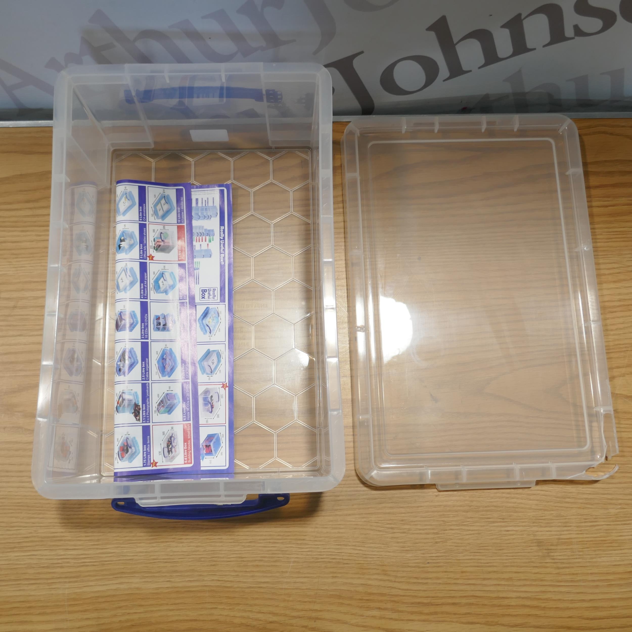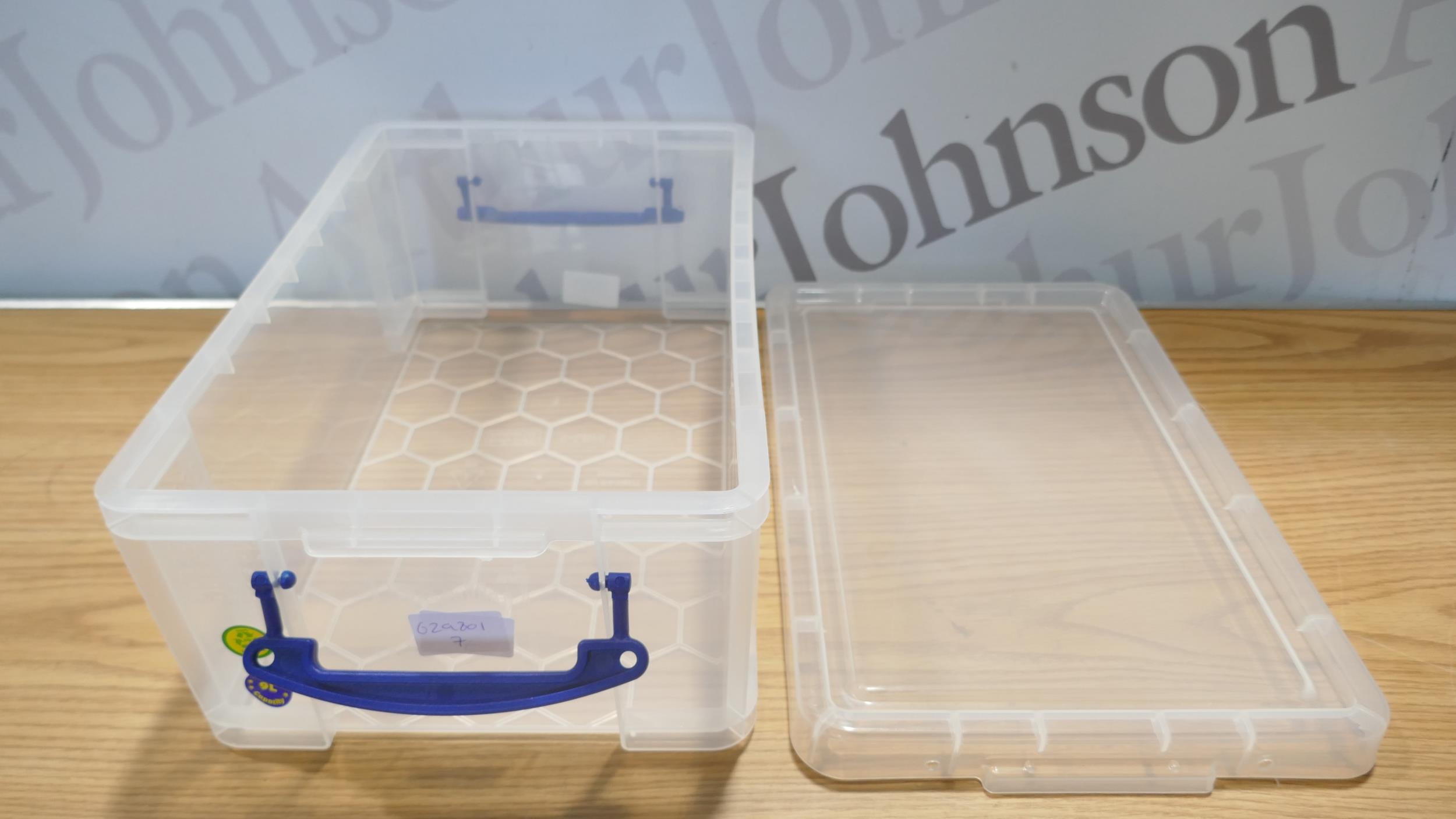 Four Really Useful 9 litre storage boxes with lids (damaged lid)