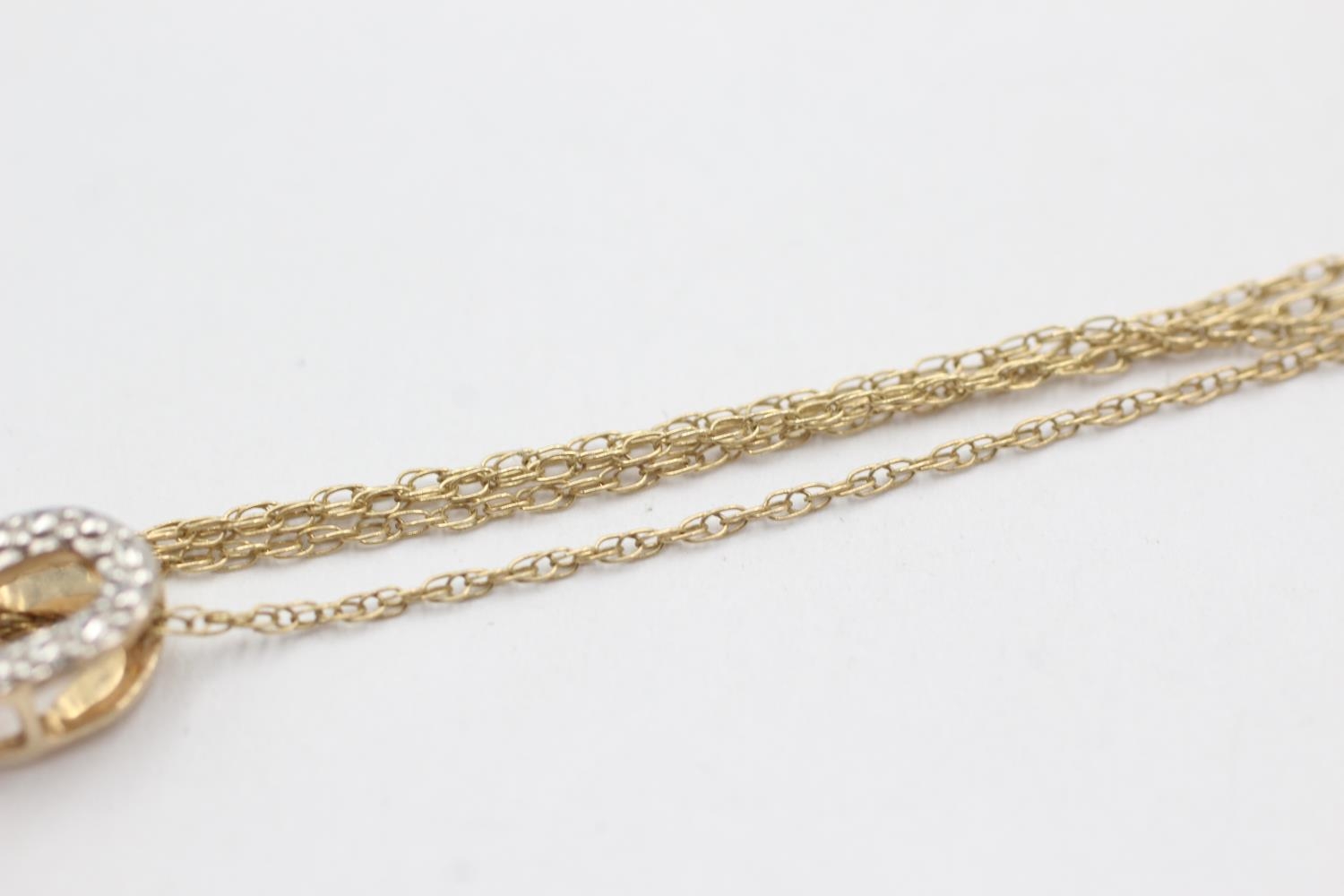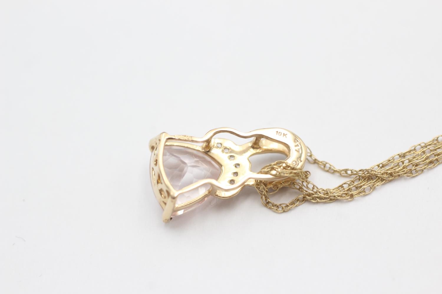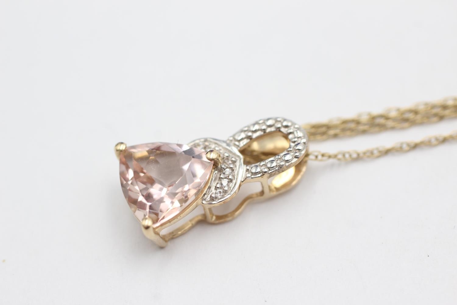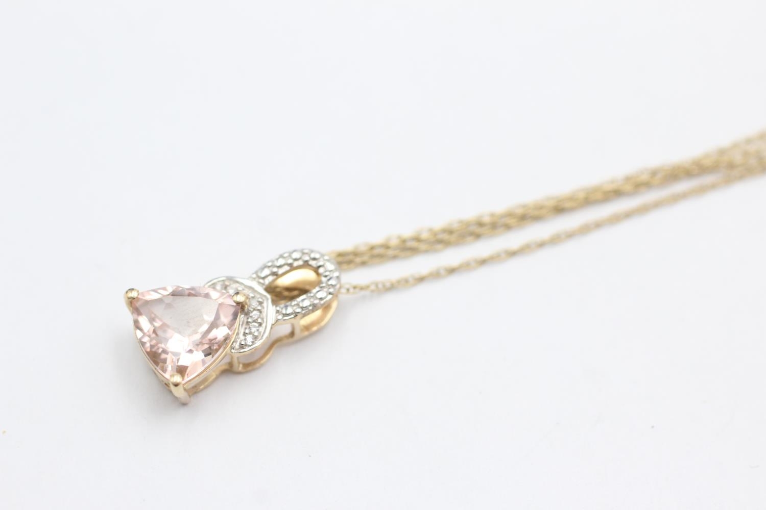 9ct gold brown gemstone & diamond pendant necklace (3.1g)