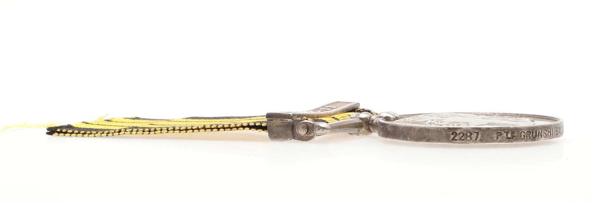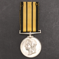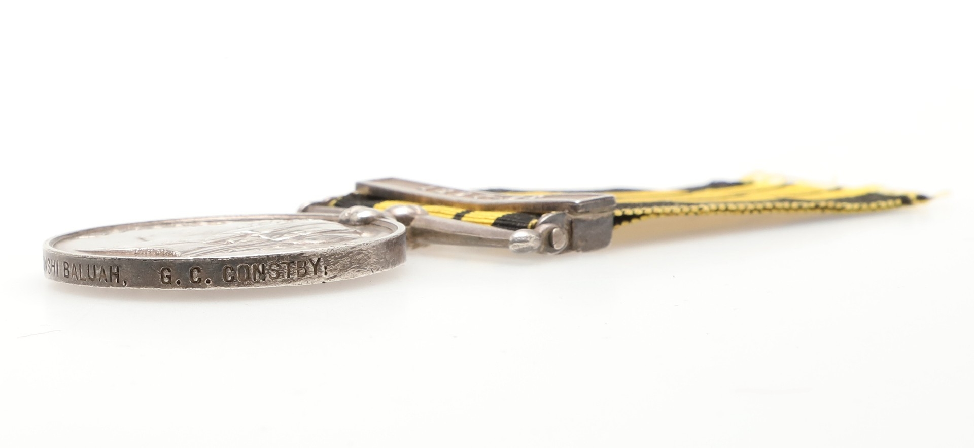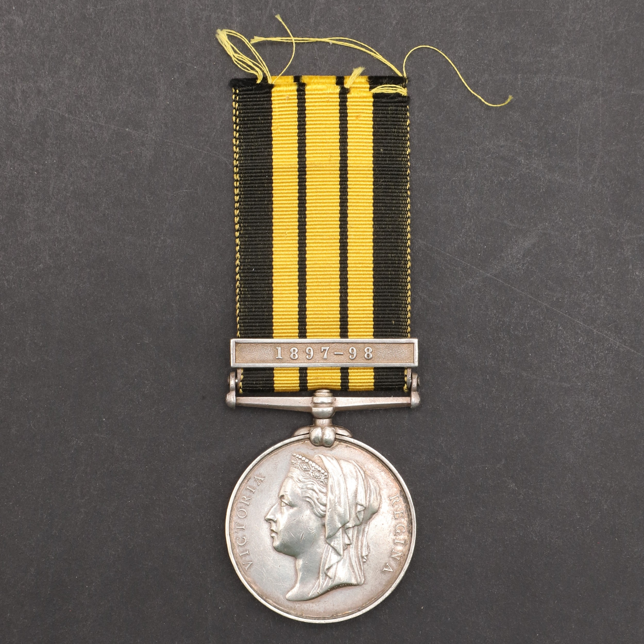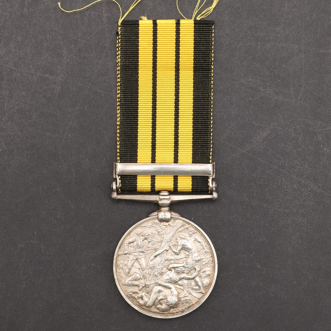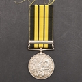 AN EAST AND WEST AFRICA MEDAL WITH 1897-98 CLASP TO THE GOLD COAST CONSTABULARY. An East and West Africa medal with 1897-98 clasp named to 2287 Pte Grunshi Baluah G.C. Constby . With roll extract confirming the award. Provenance Dixon's Gazette Autumn 2020. The Gold Coast Constabulary being the largest contingent in the expeditions in the hinterland of Lagos and the Northern territories of the Gold Coast between Sept 1897 and June 1898.
