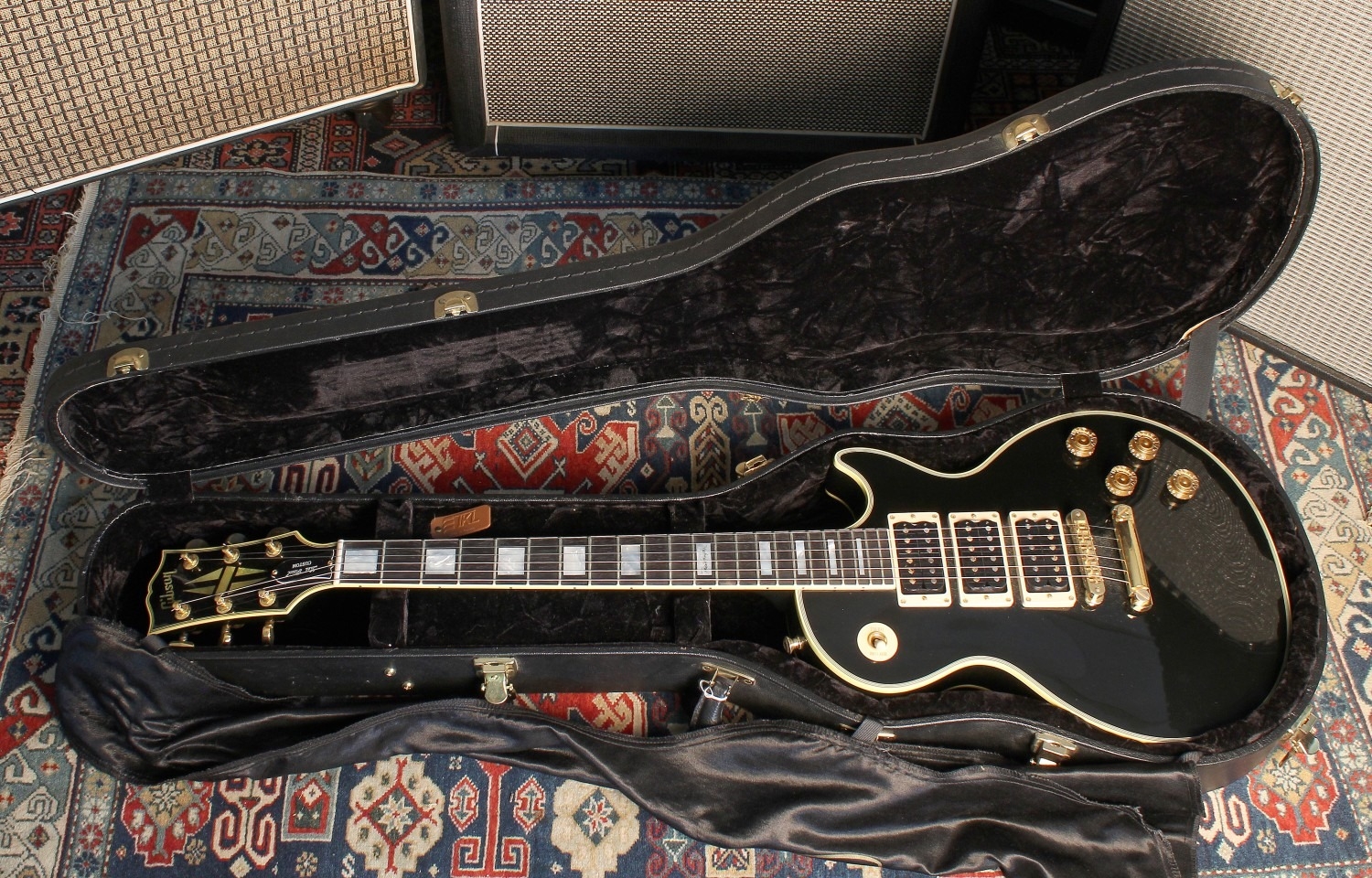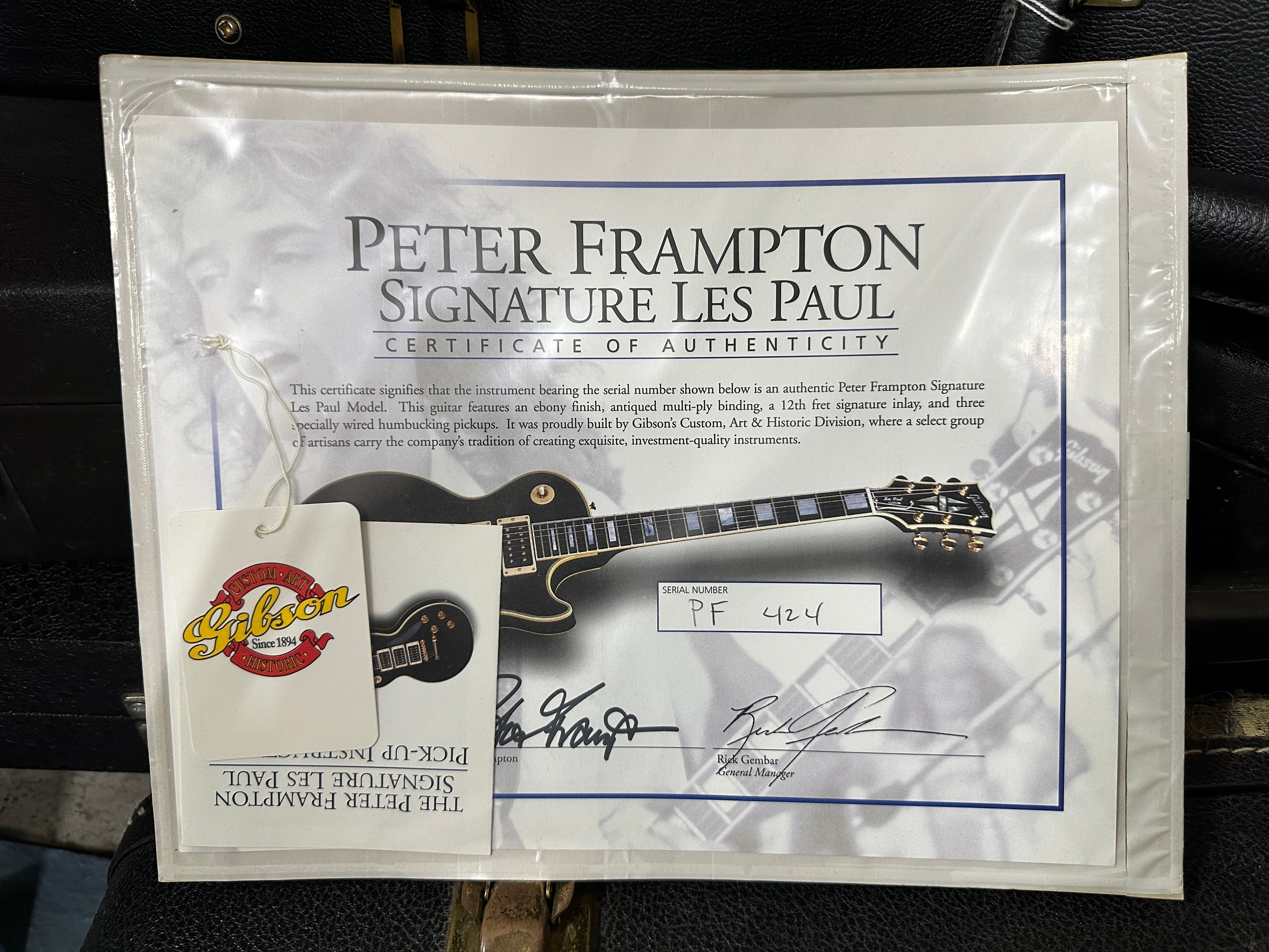 2008 Gibson Custom Shop Peter Frampton Signature Les Paul Custom Limited Edition electric guitar, made in USA; Body: ebony finish; Neck: good; Fretboard: ebony; Frets: good; Electrics: working; Hardware: good; Case: original hard case with warranty and other papers; Weight: 3.90kg; Overall condition: very good
