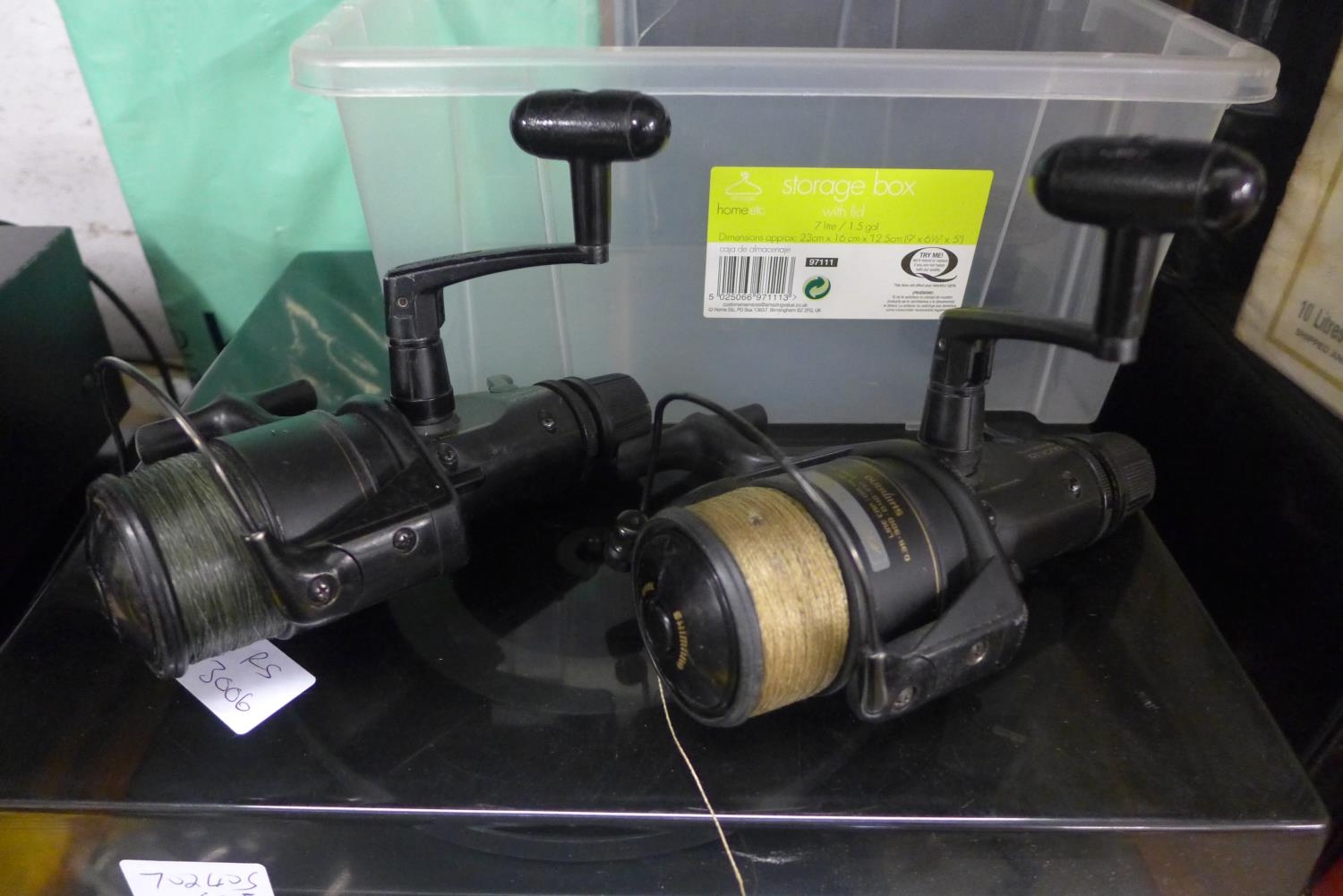E-50X 12ft Power Pikeflex pike fishing rod with 2 Shimano EH4500 bait running reels and spare spool