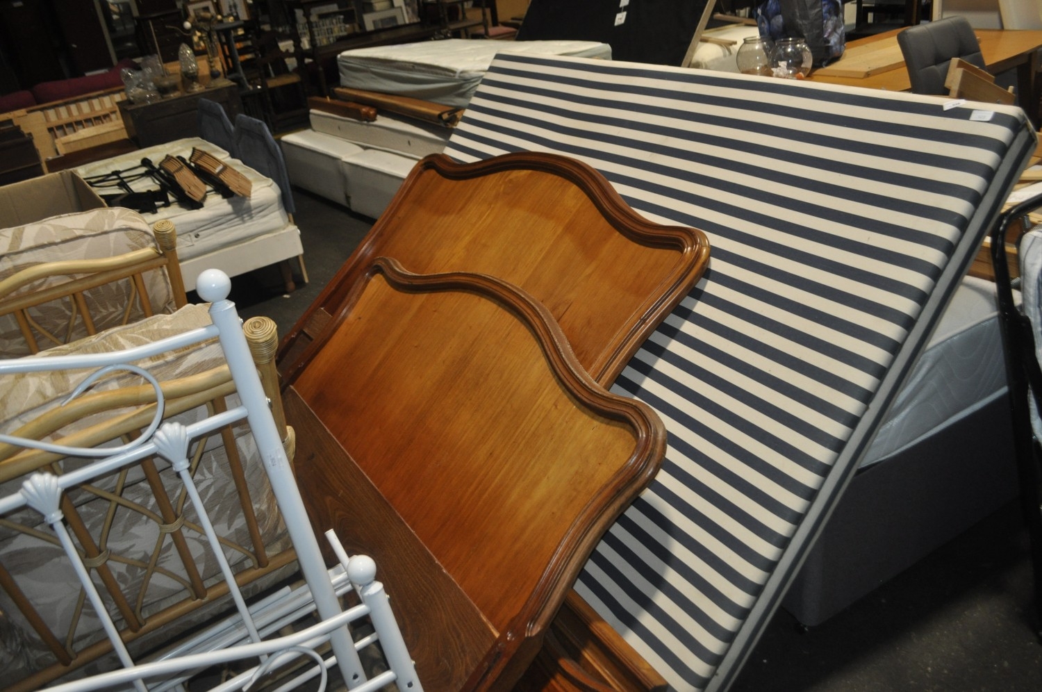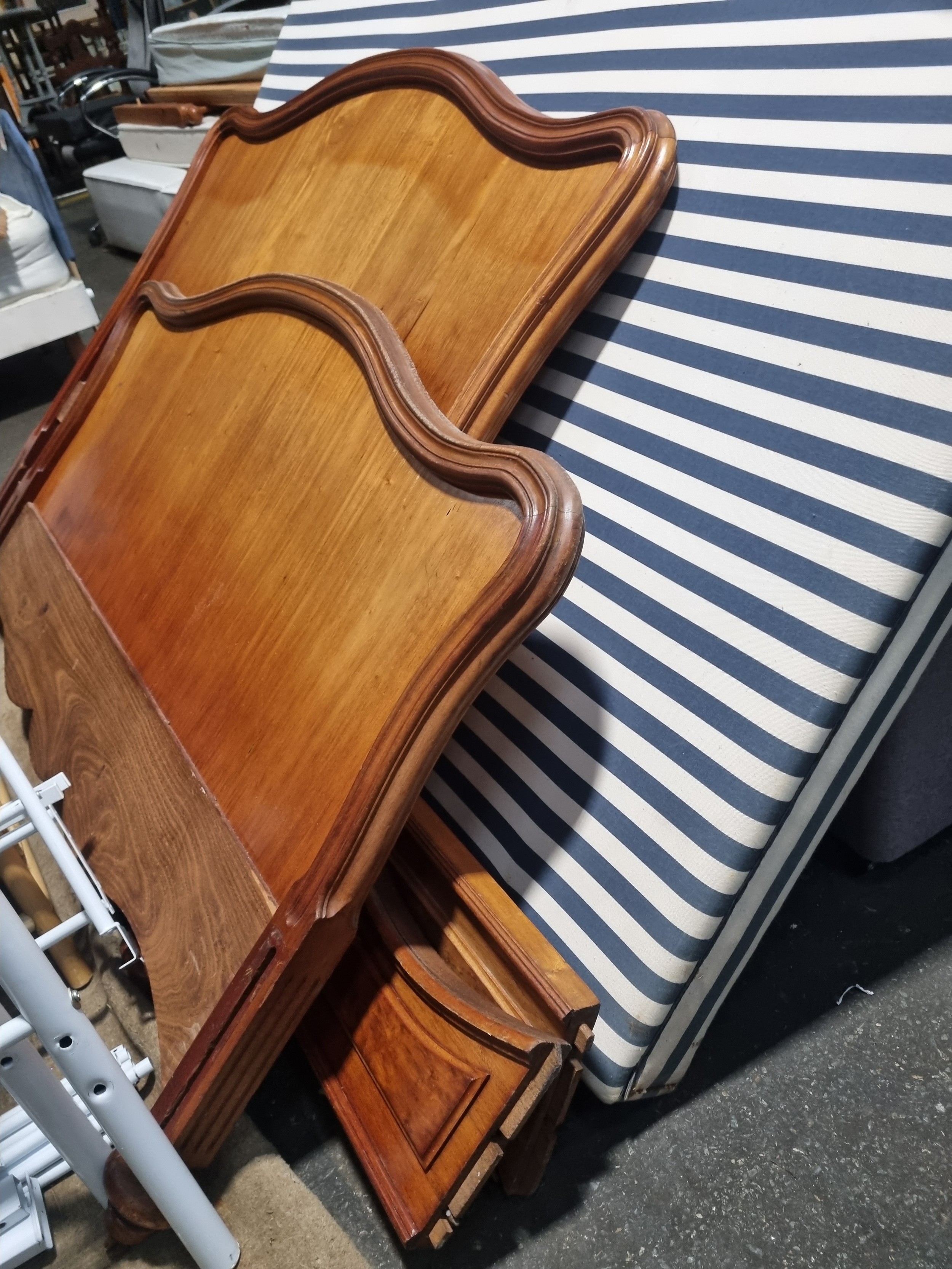 EXCELLENT QUALITY ANTIQUE FRENCH CARVED MAHOGANY SMALL DOUBLE BED CIRCA LATE 1800'S WITH UPHOLSTERED BASE