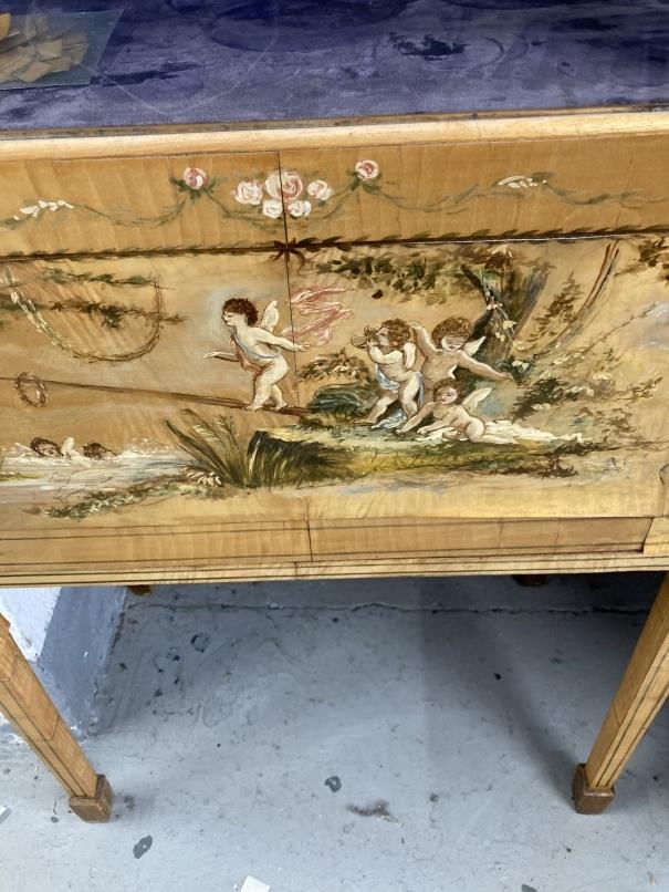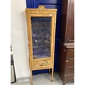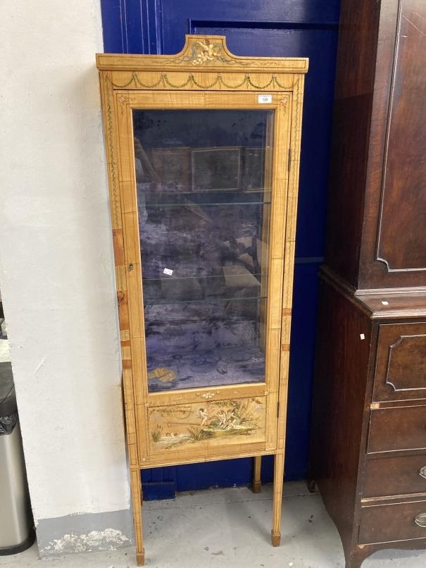 Early 20th cent. Satinwood painted display cabinet glass door and shelves on square tapering legs and spade feet. 7½ins. x 23ins. x 13ins.