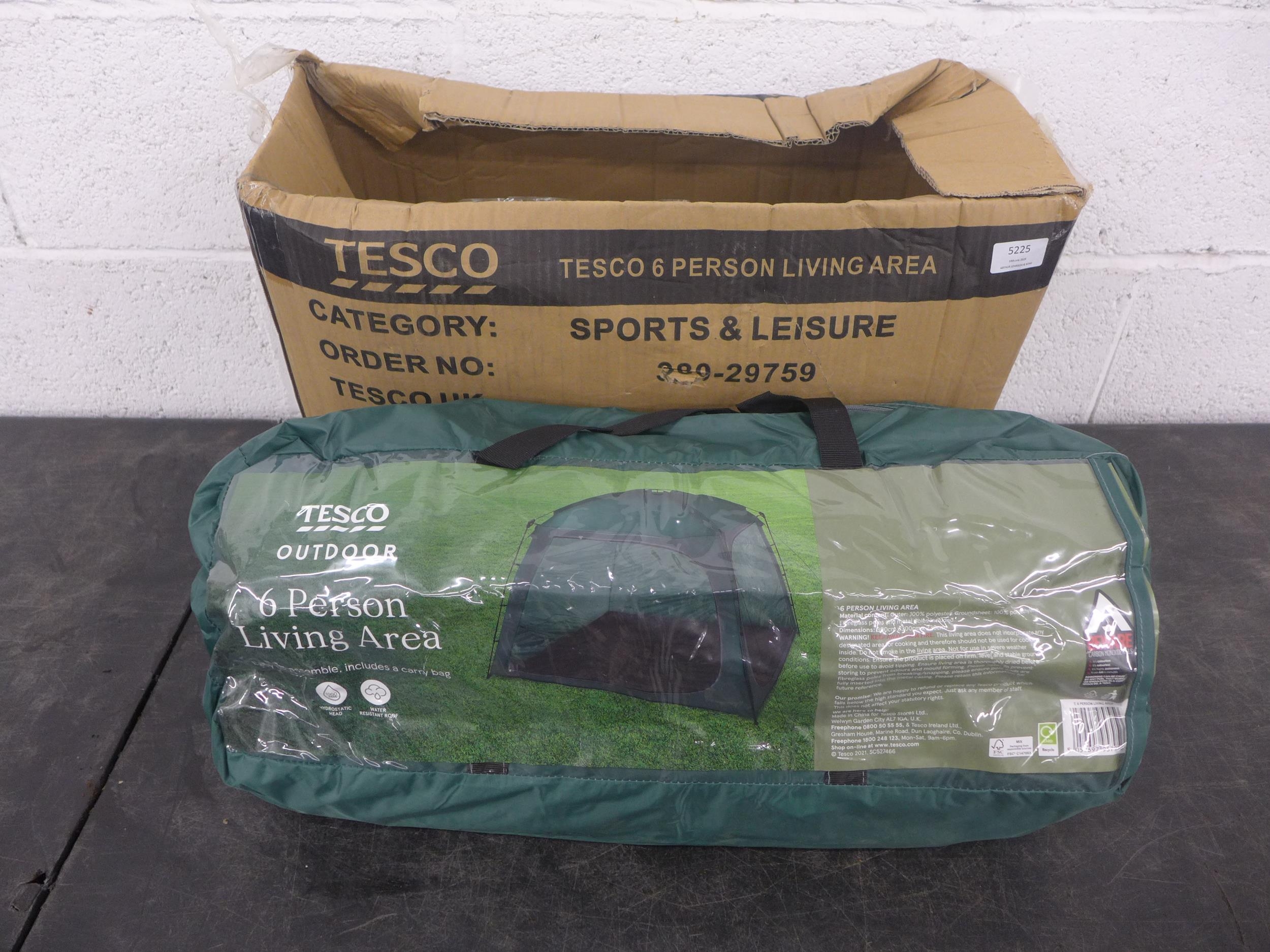 Two Tesco 6 person living area tents *This lot is subject to VAT