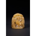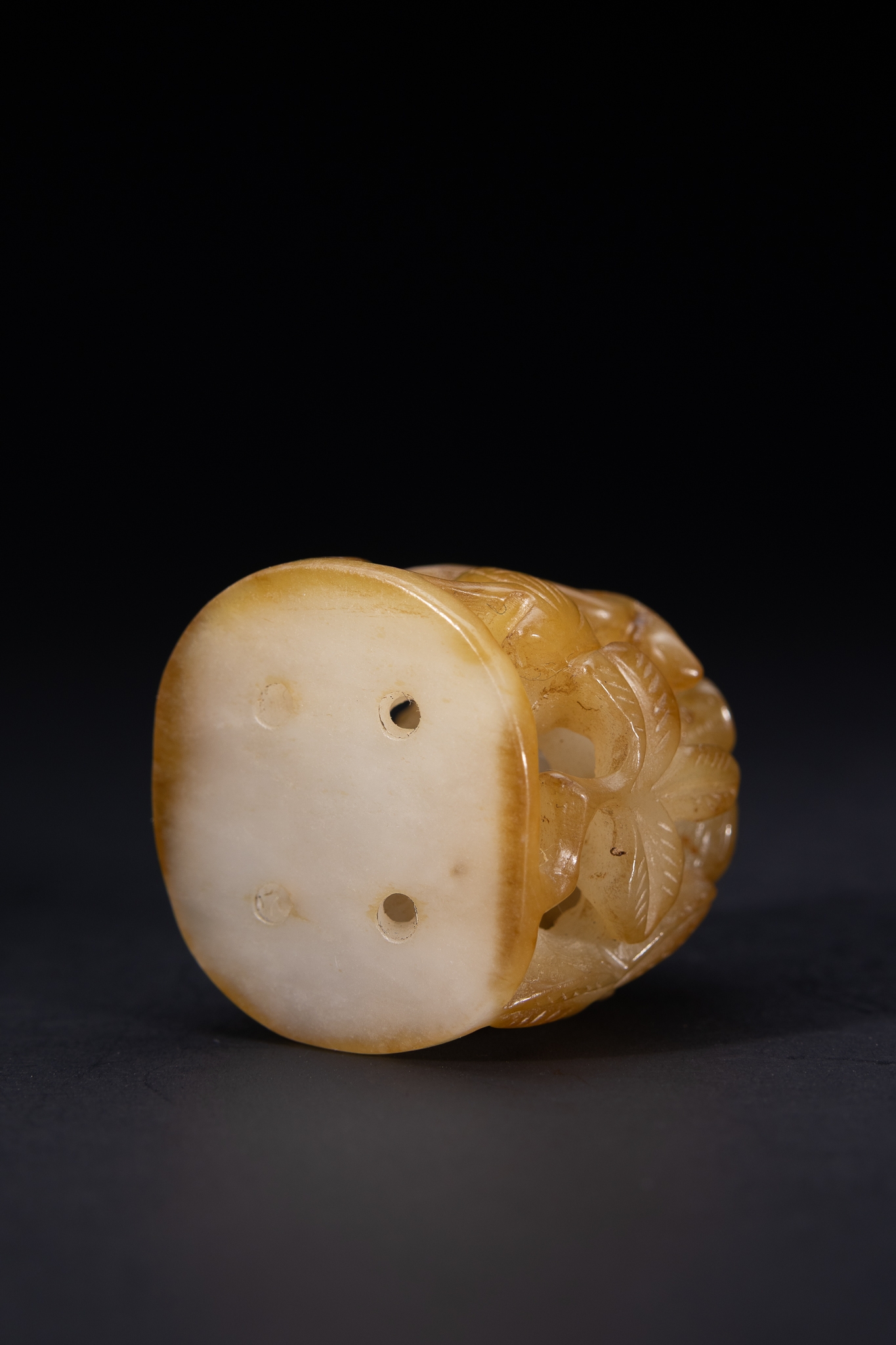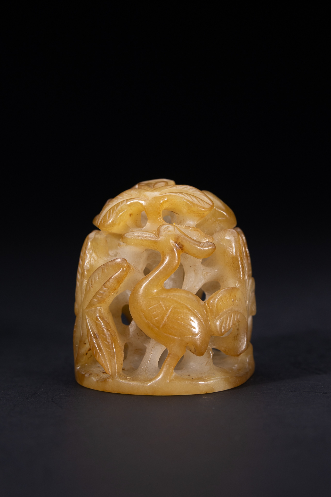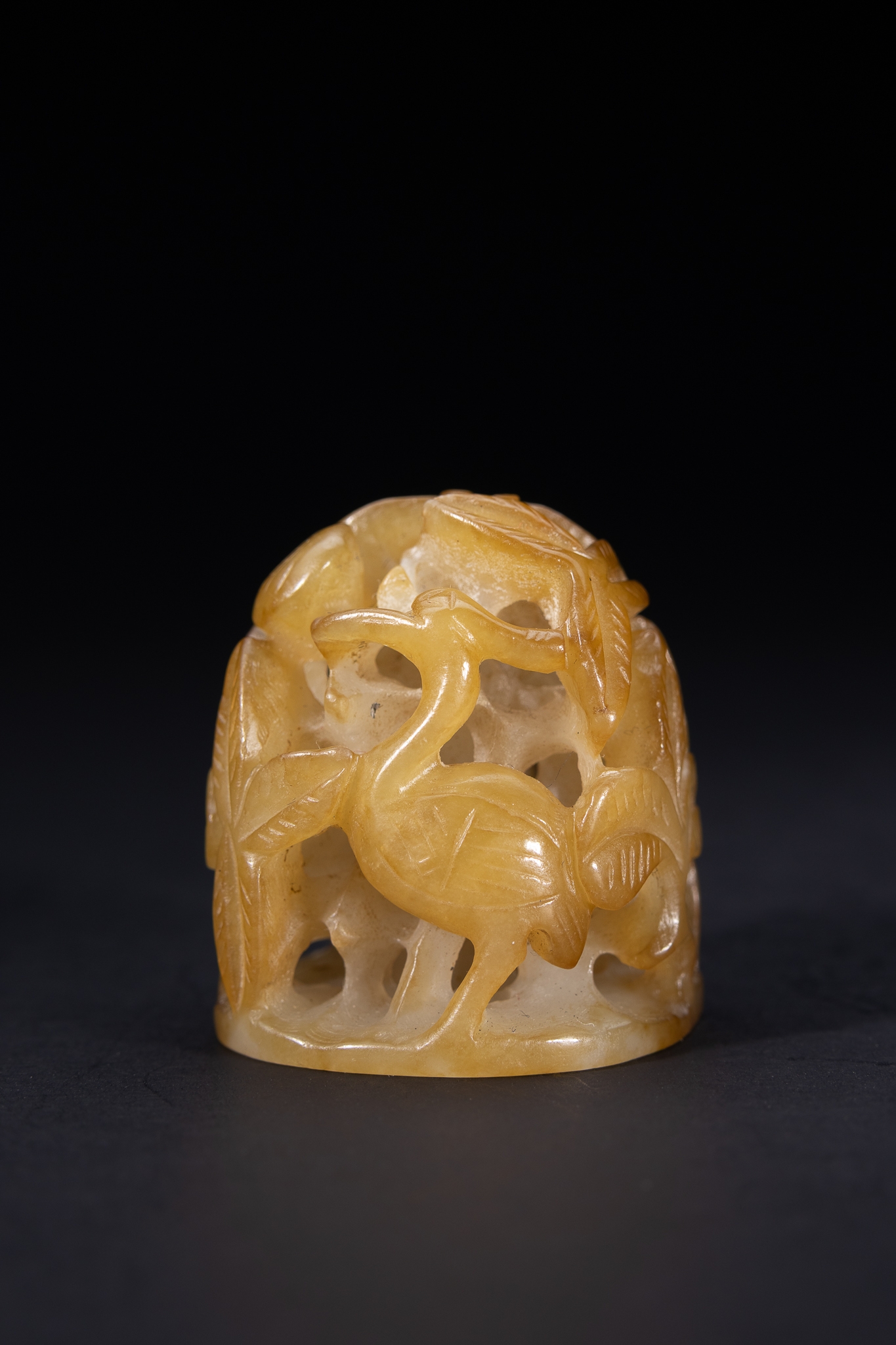 A Chinese Openwork Yellow Jade Carving with Bird and Foliage Motifs.