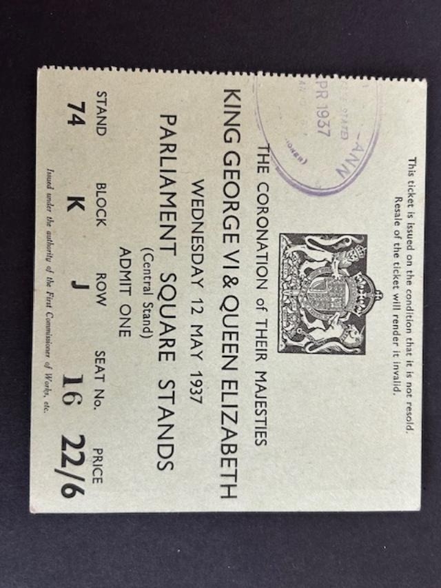 Ephemera 1937 Coronation Ticket Parliament Square Stands 22/6 ! (1) (S)