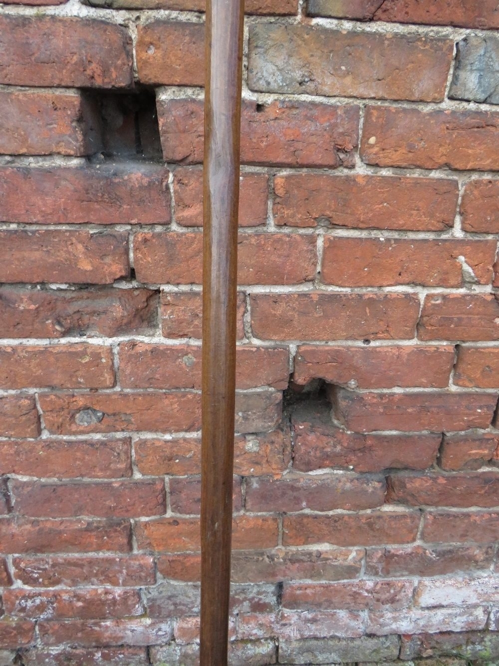 AN ANTIQUE 19TH CENTURY ANGOLA CHOKWE TRIBAL ART PADDLE CLUB / STAFF, with studded decoration. (Provenance: Ex Guy Dubois Collection - Rouen, France)