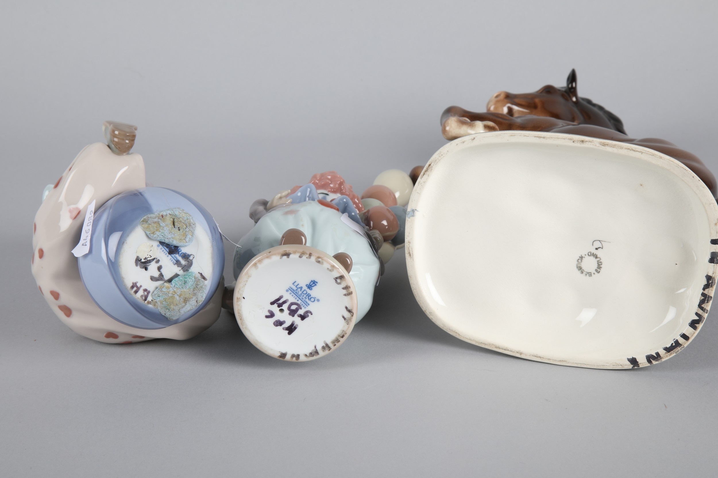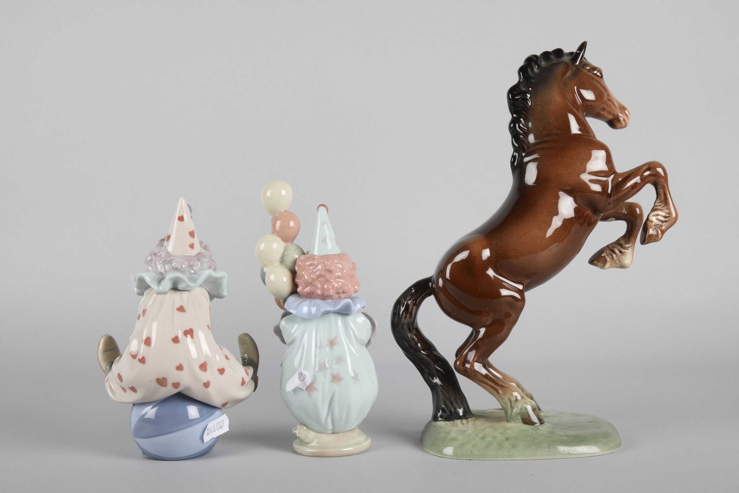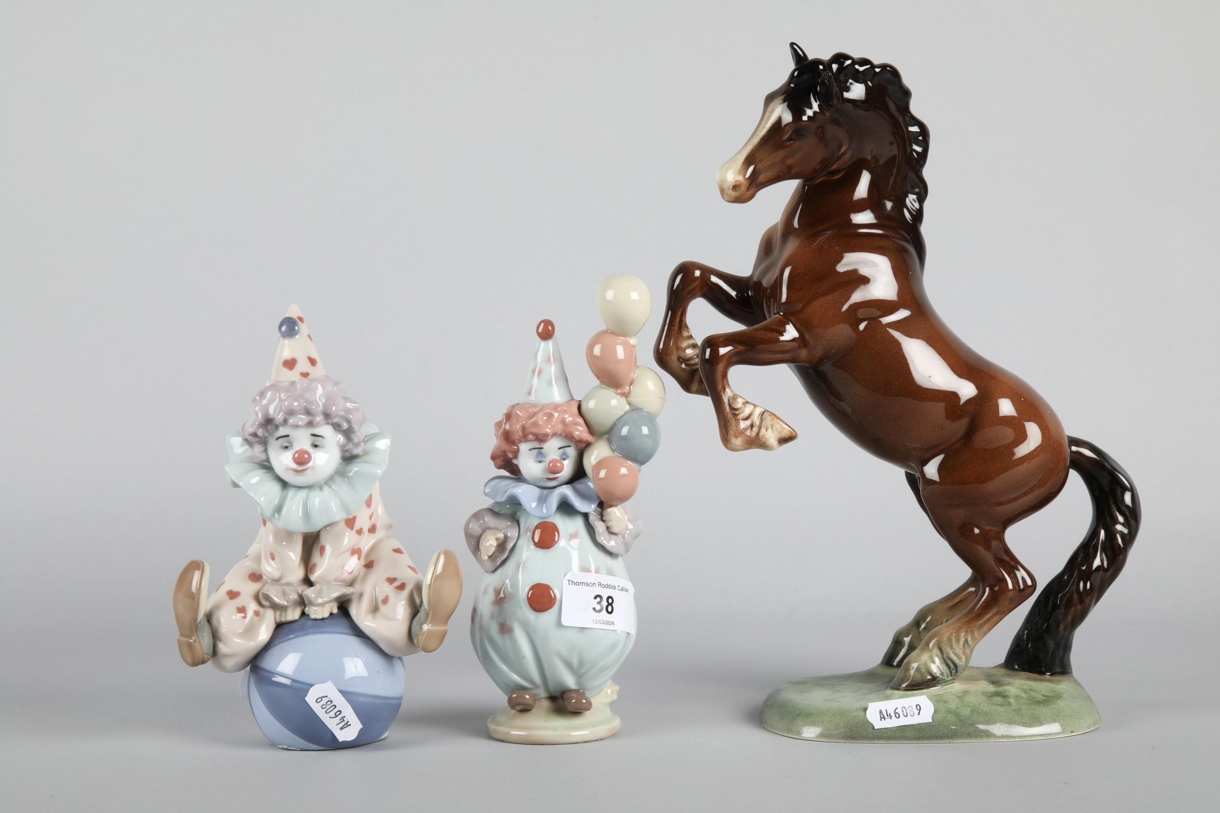 Two Lladro figures to include Littlest Clown' 5811 and 'Having a Ball' 5813, with Beswick 'Rearing Welsh Cob' figure 26cm h. (3).