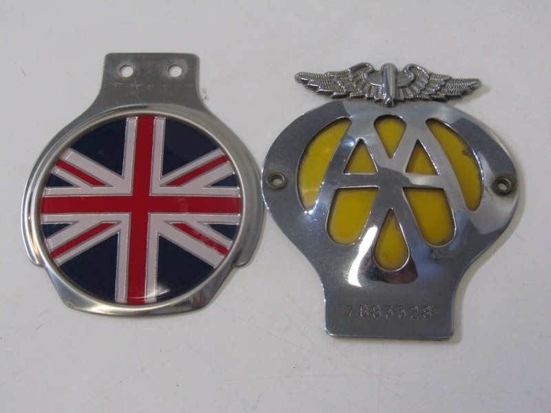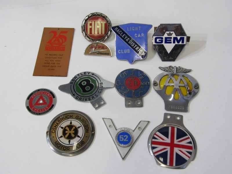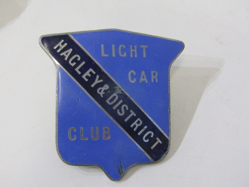 ENAMEL CAR BADGES ETC. a selection of car badges etc. including Bentley Drivers Club, AA badge, The Hagley District Light Car Club etc.
