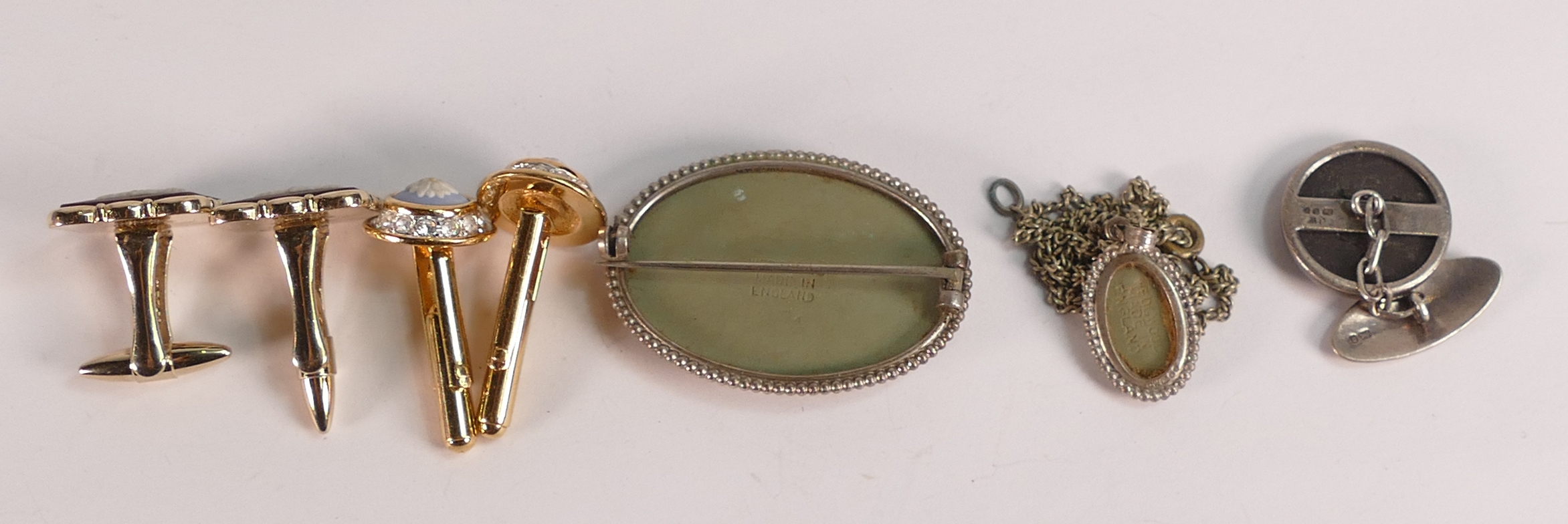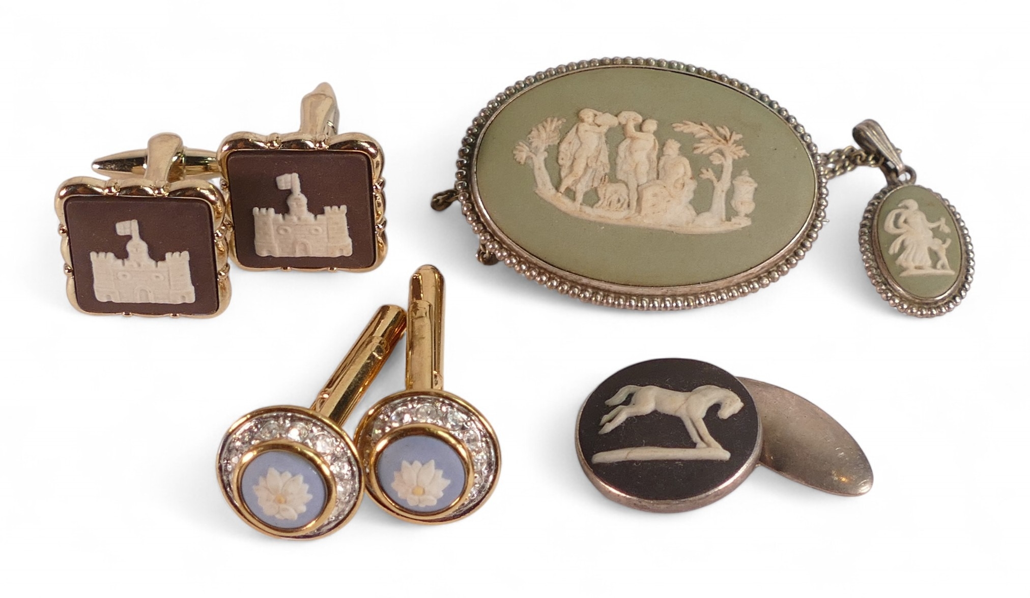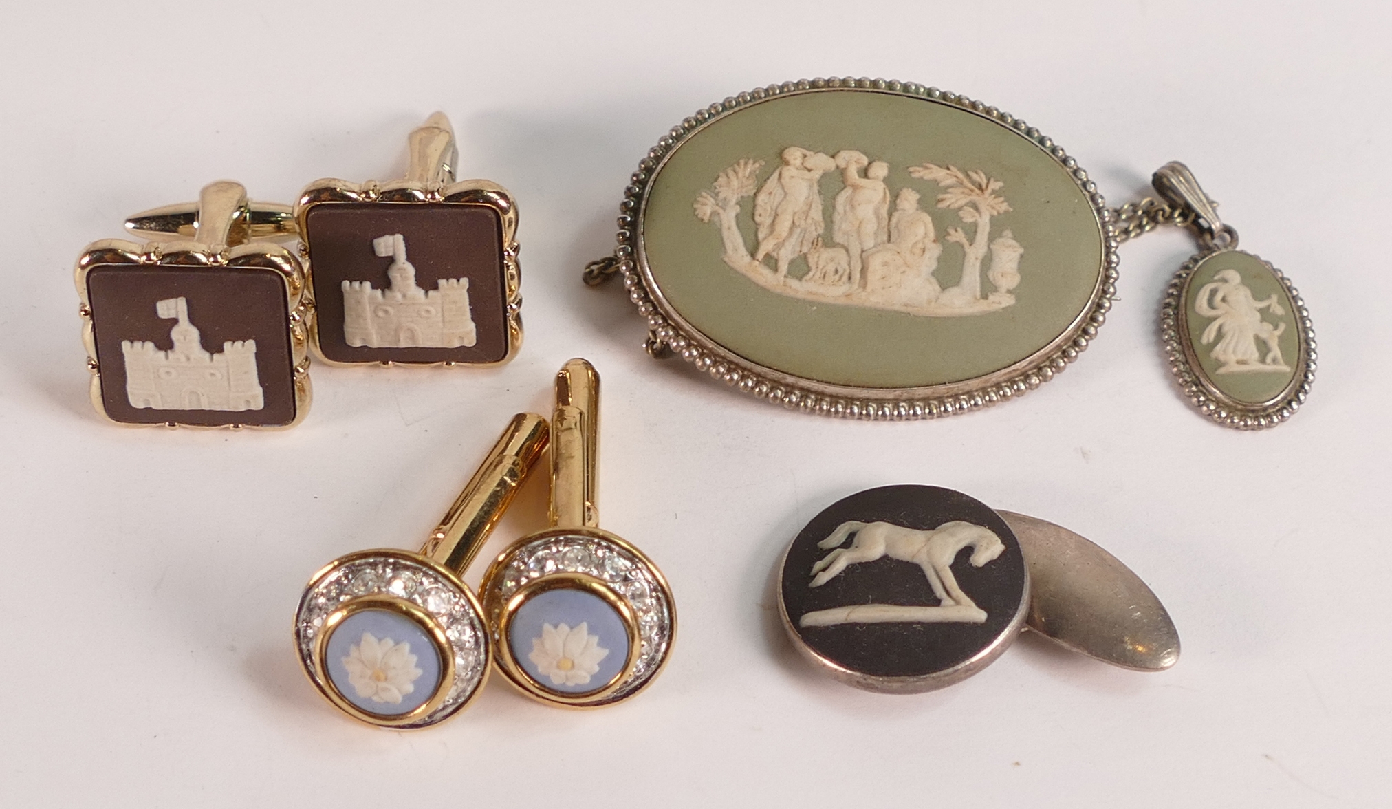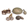 A collection of Wedgwood Jasperware jewellery including silver mounted cufflinks, brooches, pendants etc