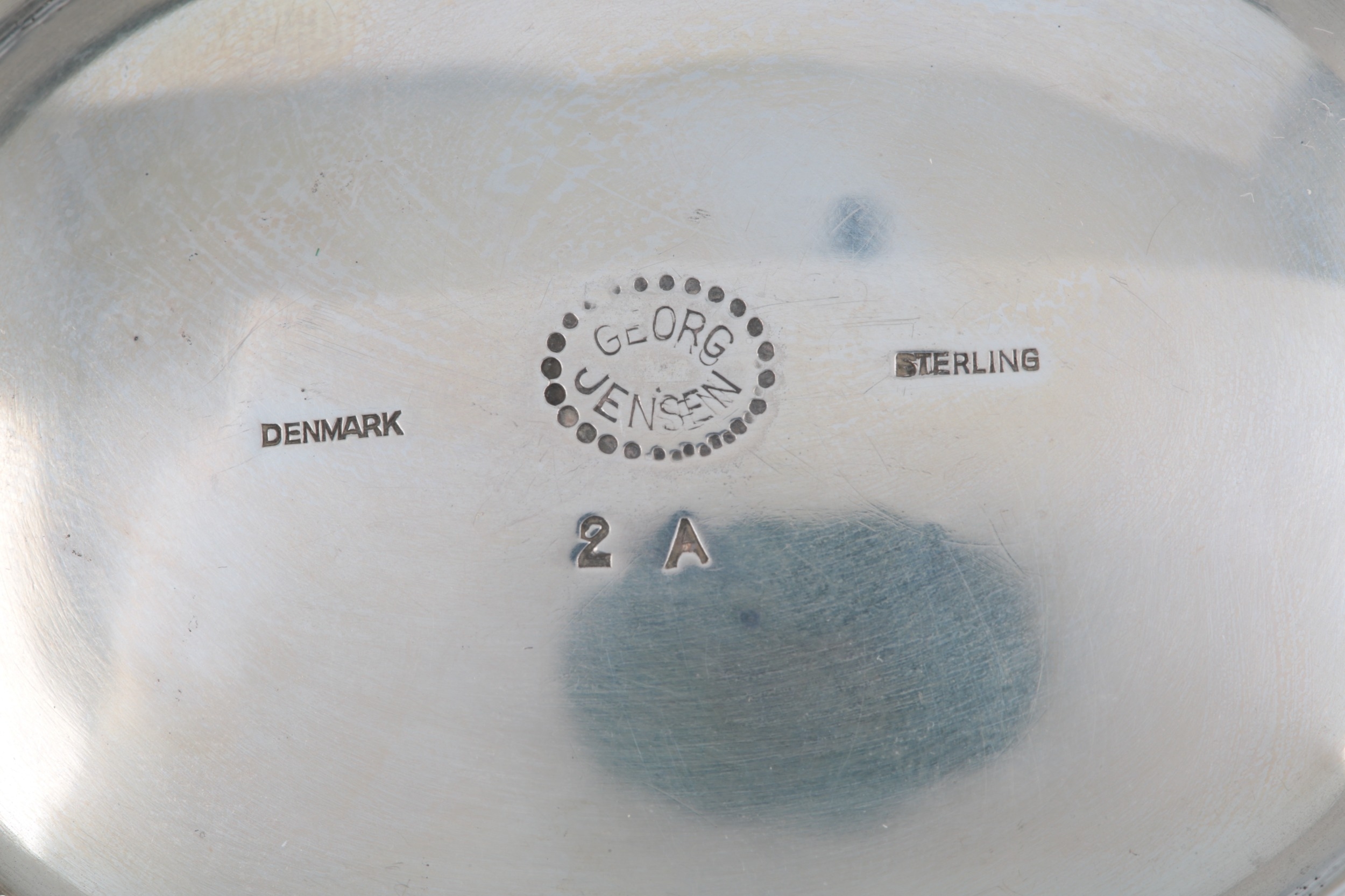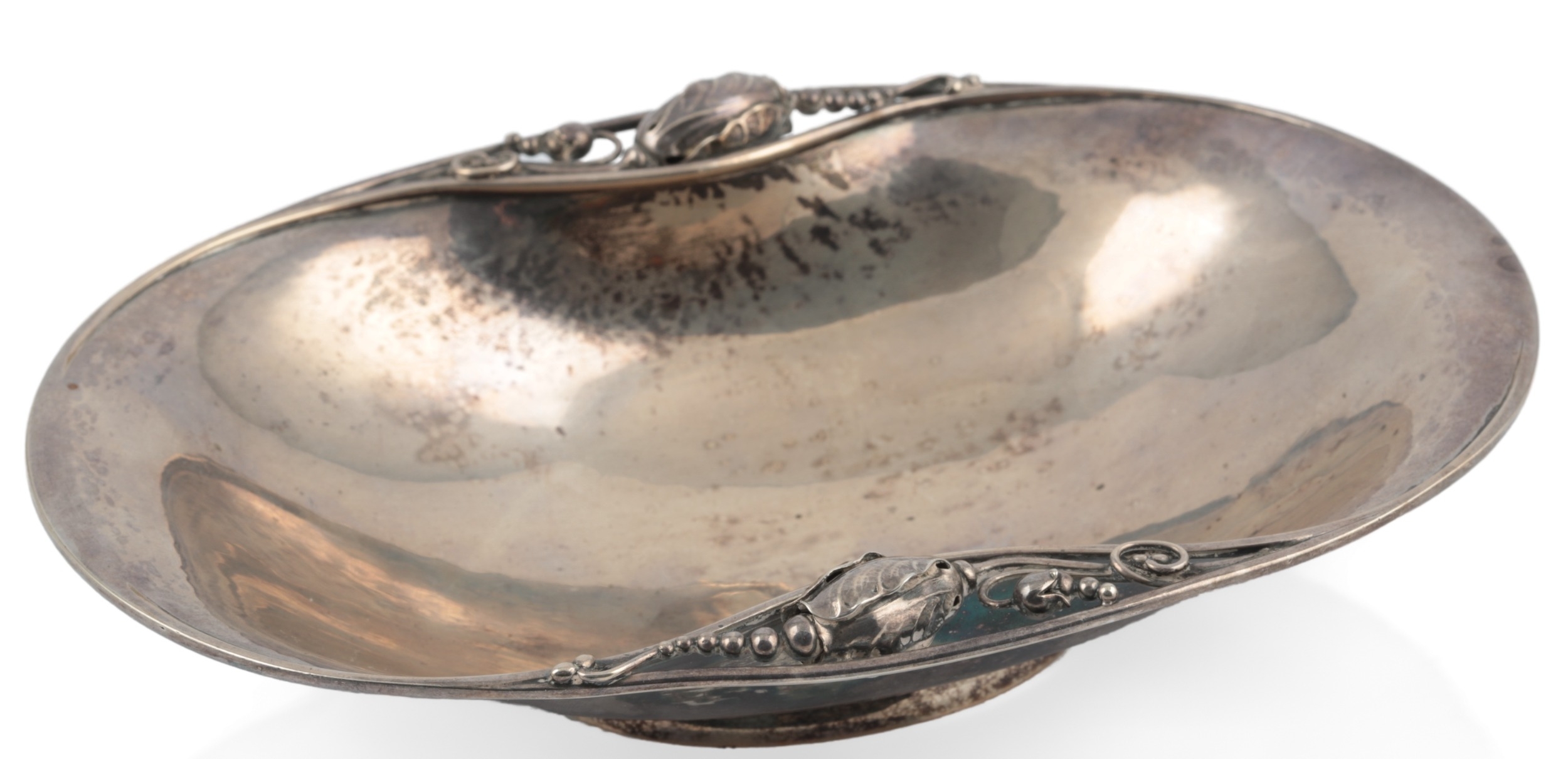 A mid 20th century Georg Jensen silver blossom pattern oval bowl, design number 2A, on an oval foot, import marks for Georg Jensen Ltd, London, 1959, length 20cm, 8.2oz.