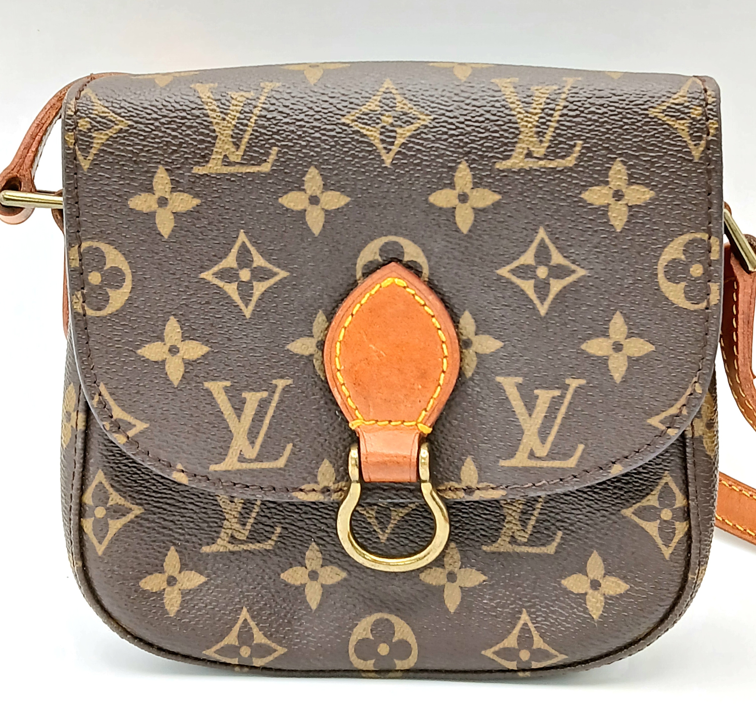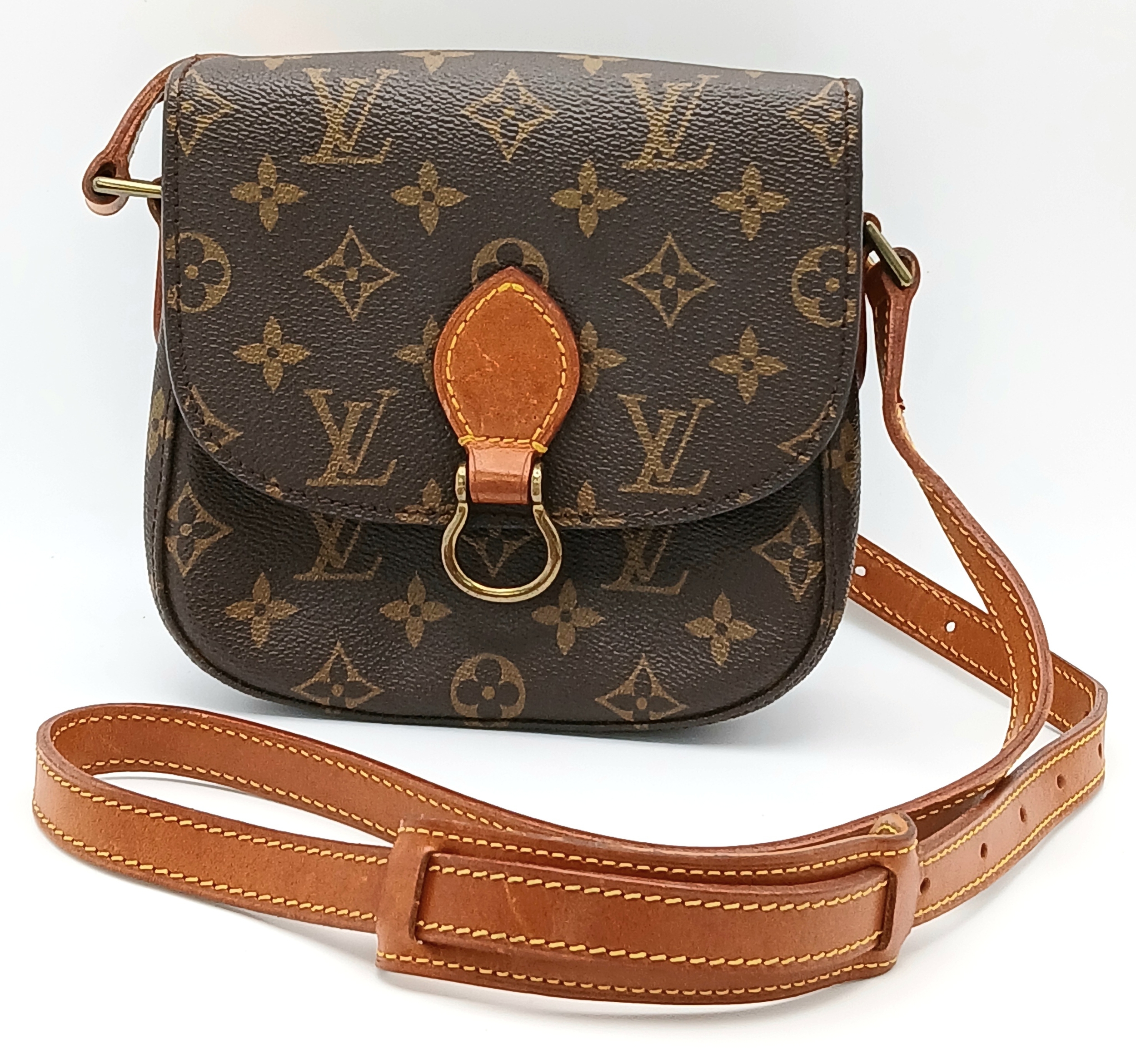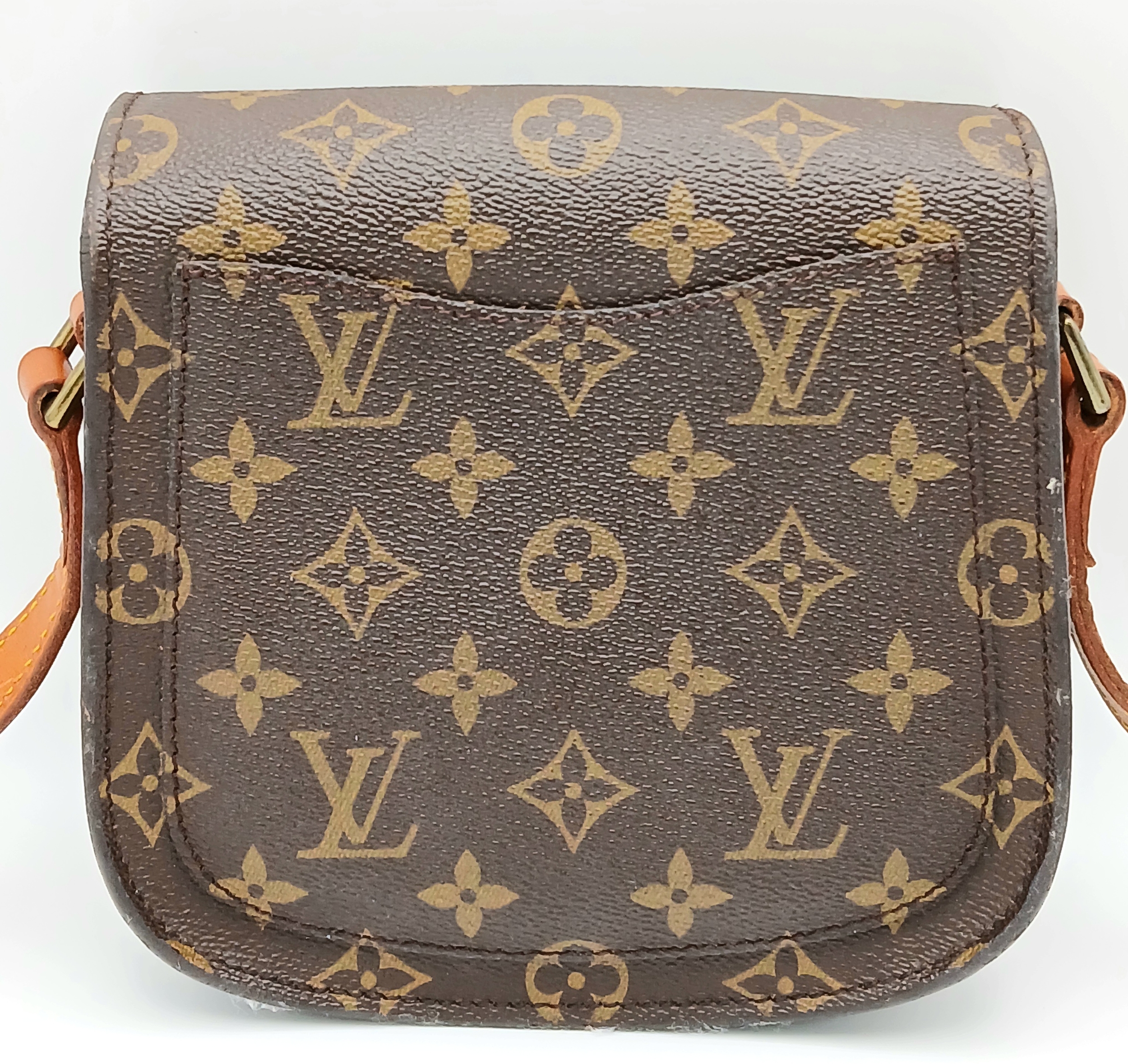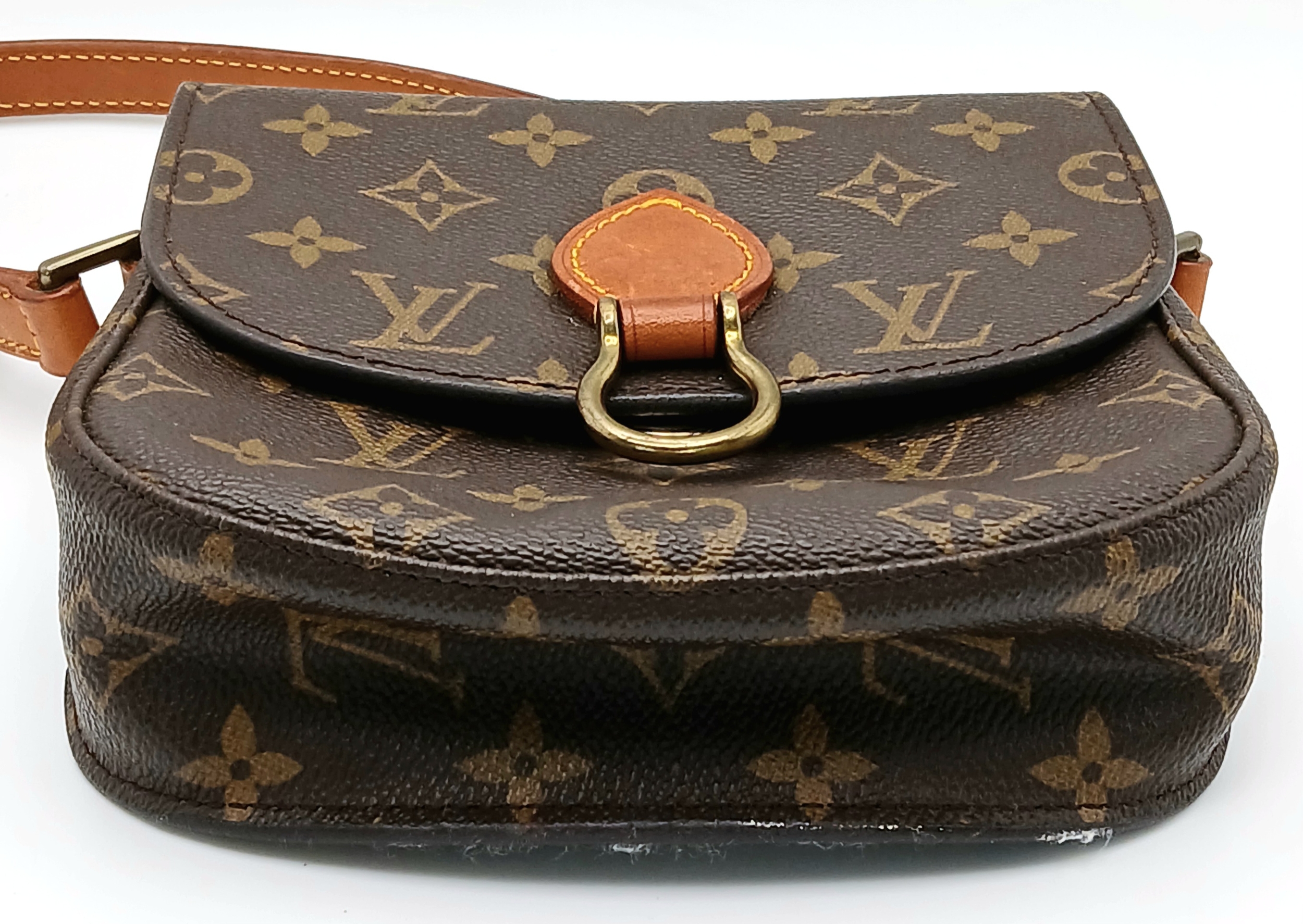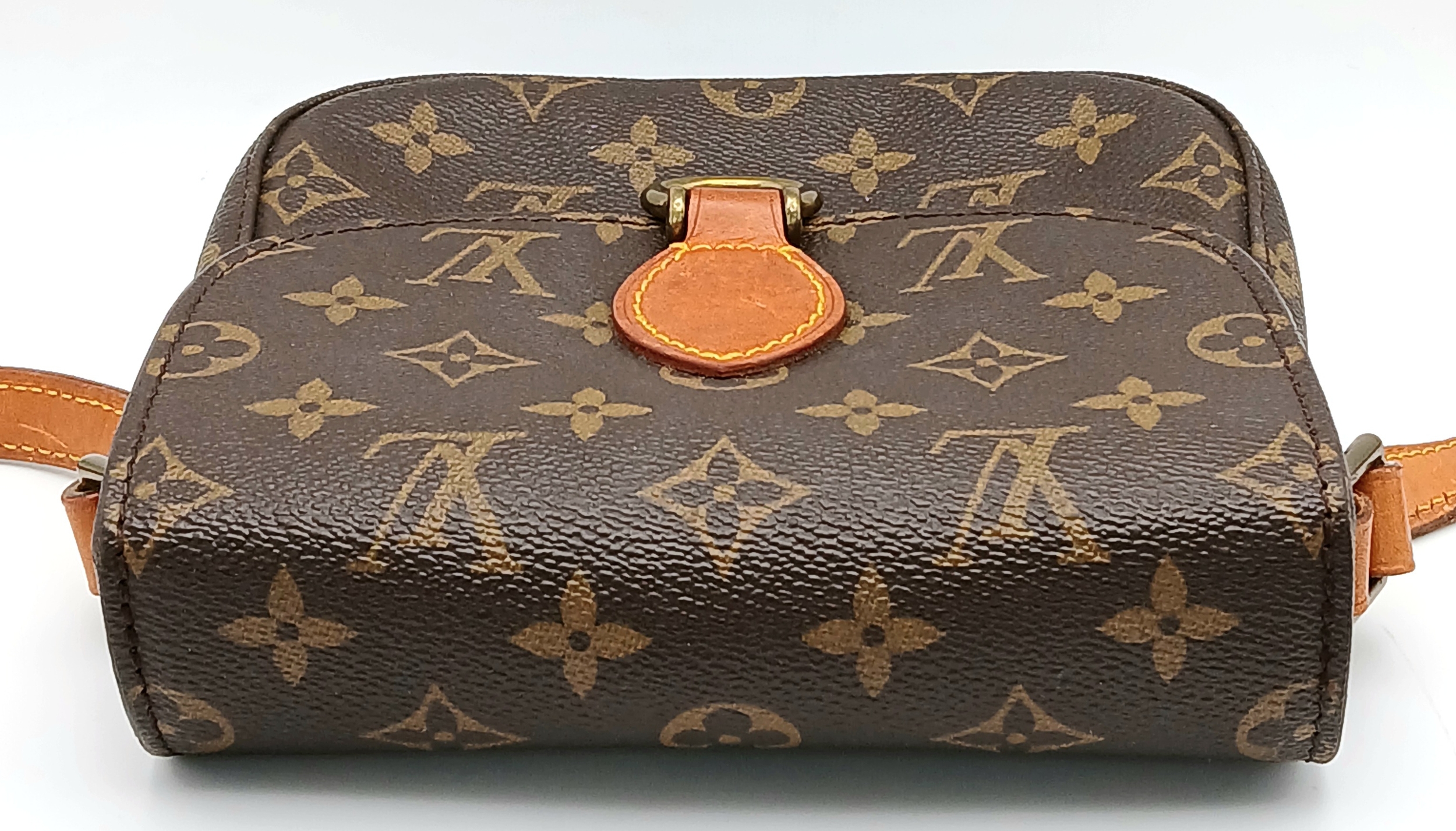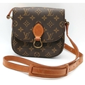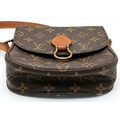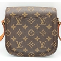 A Louis Vuitton Monogram Saint Cloud Crossbody Bag. Coated canvas exterior with leather features, adjustable leather strap, gold-toned hardware, open compartment to back and press stud closure. Brown leather interior with an open side pocket. Approximately 18cm length x 16cm height. Some discolouration to leather, stains and scuffs to interior - please see photos for conditions or request a condition report. Ref: STK023710