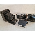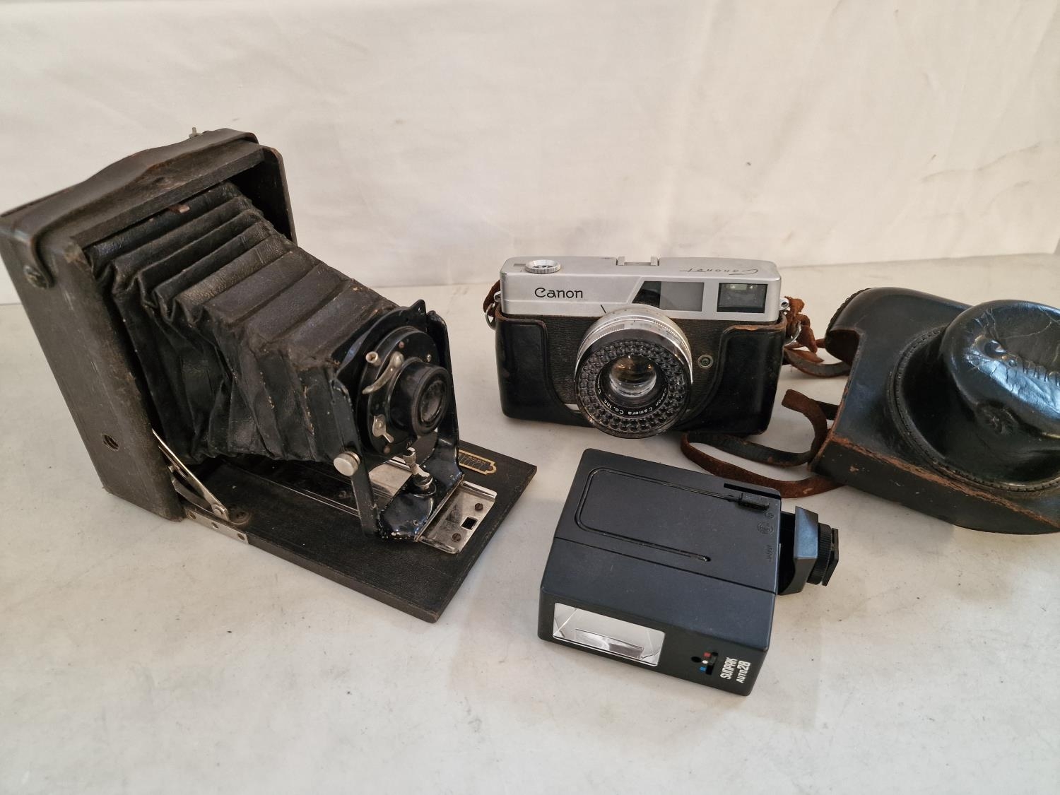 Vintage Folding / Bellows Camera, Together with Vintage Canon 'Canonet' Camera and a Flash Unit, (Untested or a/f), (3)