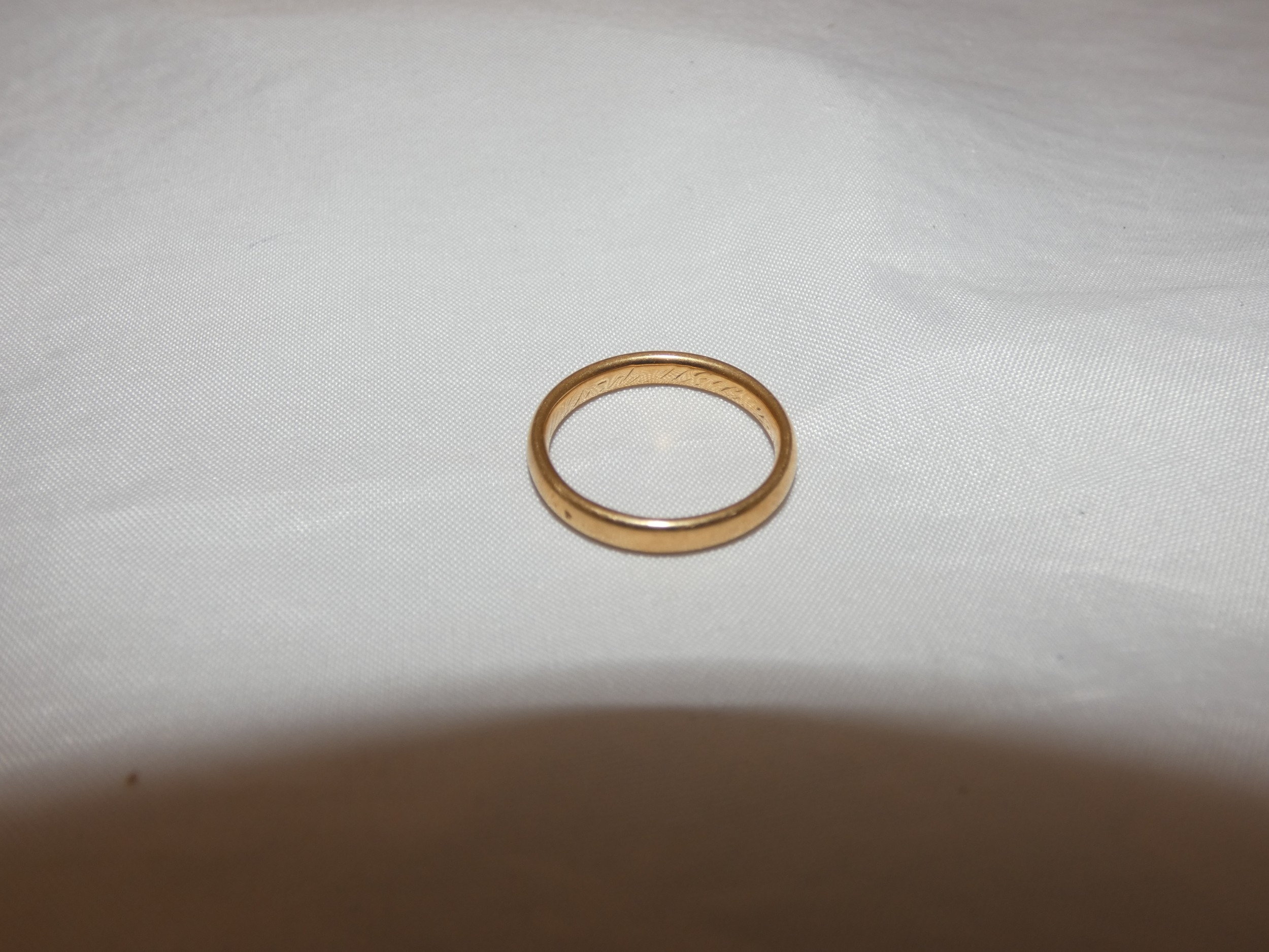 Antique 18ct gold band ring, Birmingham, engraved to the inner, size N, 3.5g.
