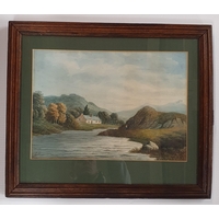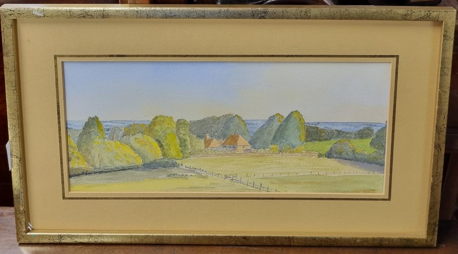 A 20th Century Watercolour of a country scene.16 x 36 cms approx.