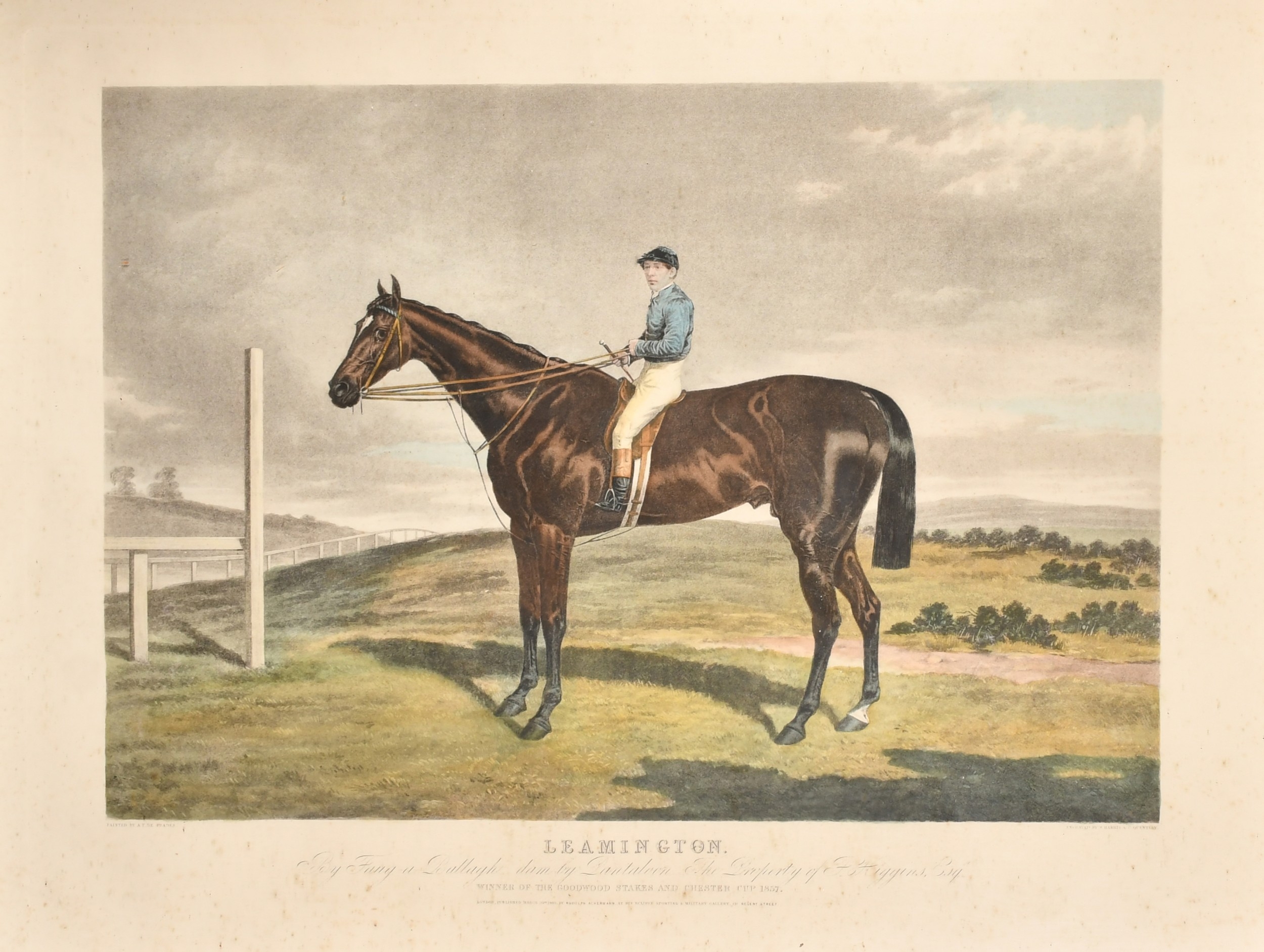 After Alfred Frank de Prades (1825-1895) French. "Leamington", Engraved by J Harris & Quentery, 18.5" x 25.5" (47 x 64.8cm), together with a print "Race for The Gold Cup at Ascot, 1852", 12.5" x 17.5" (31.8 x 44.5cm) (2)