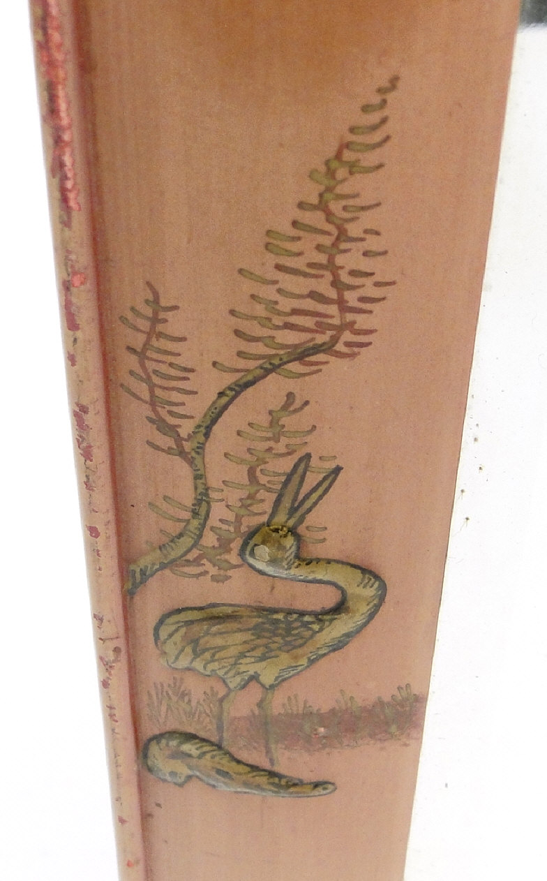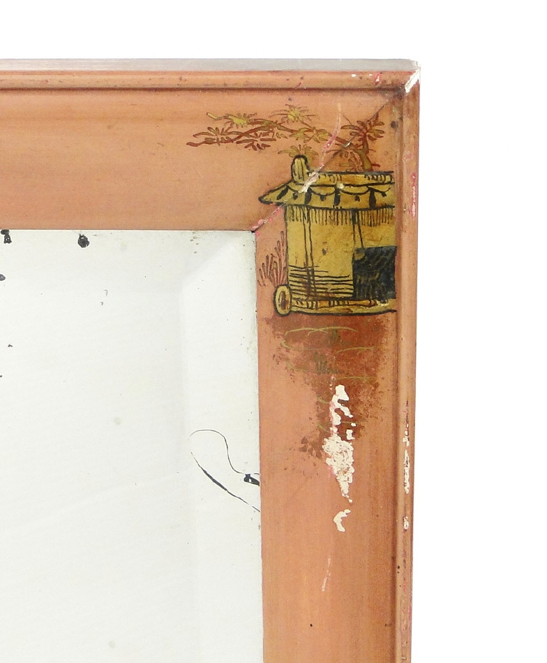 1920s oriental rectangular lacquer framed mirror with bevel edged plate and chinoiserie decoration, 52cm x 41cm