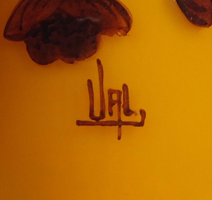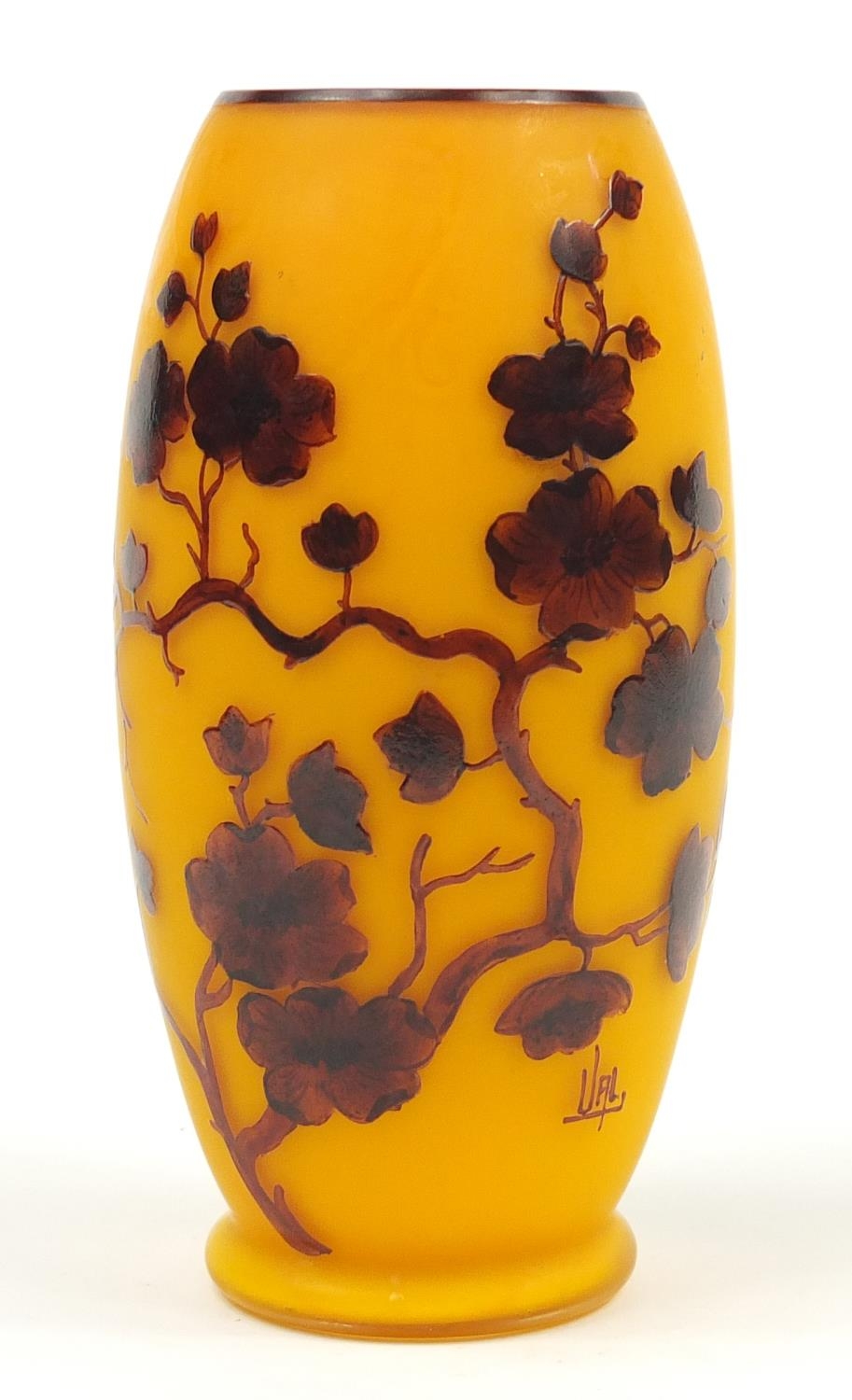 Val St Lambert, Art Nouveau orange cameo glass vase, signed Val, 19.5cm high