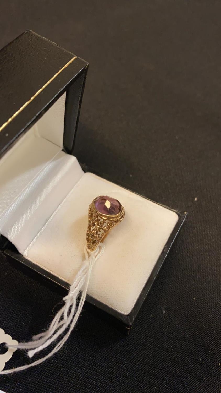 9CT GOLD Amethyst RING SIZE J/K WEIGHT 3.5G.