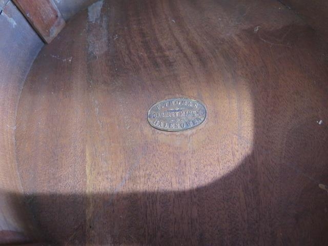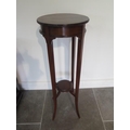 A circa 1900's mahogany plant stand, bares a label for F Thomas, Cabinet maker 'Halesowen', 93cm tall x 33cm diameter in polished condition