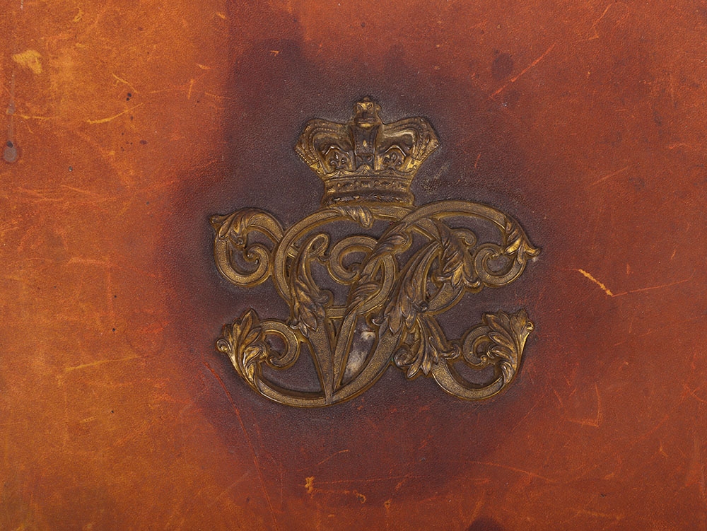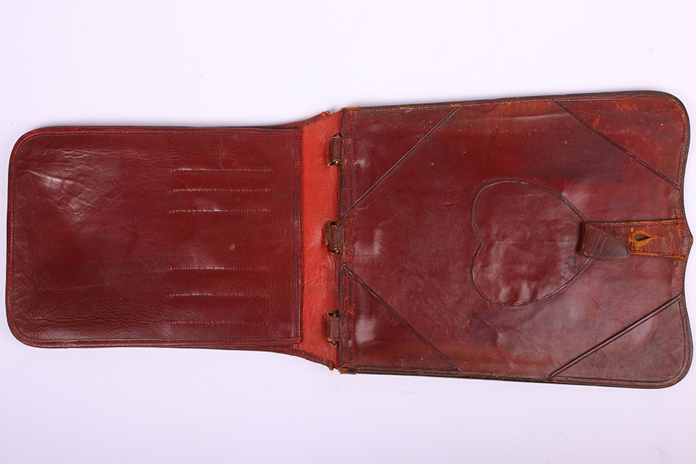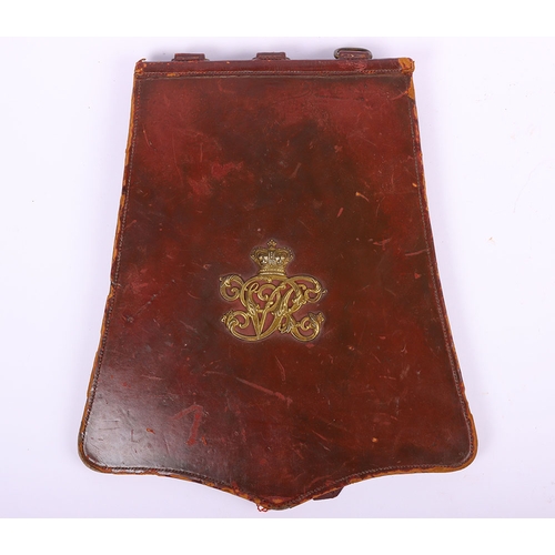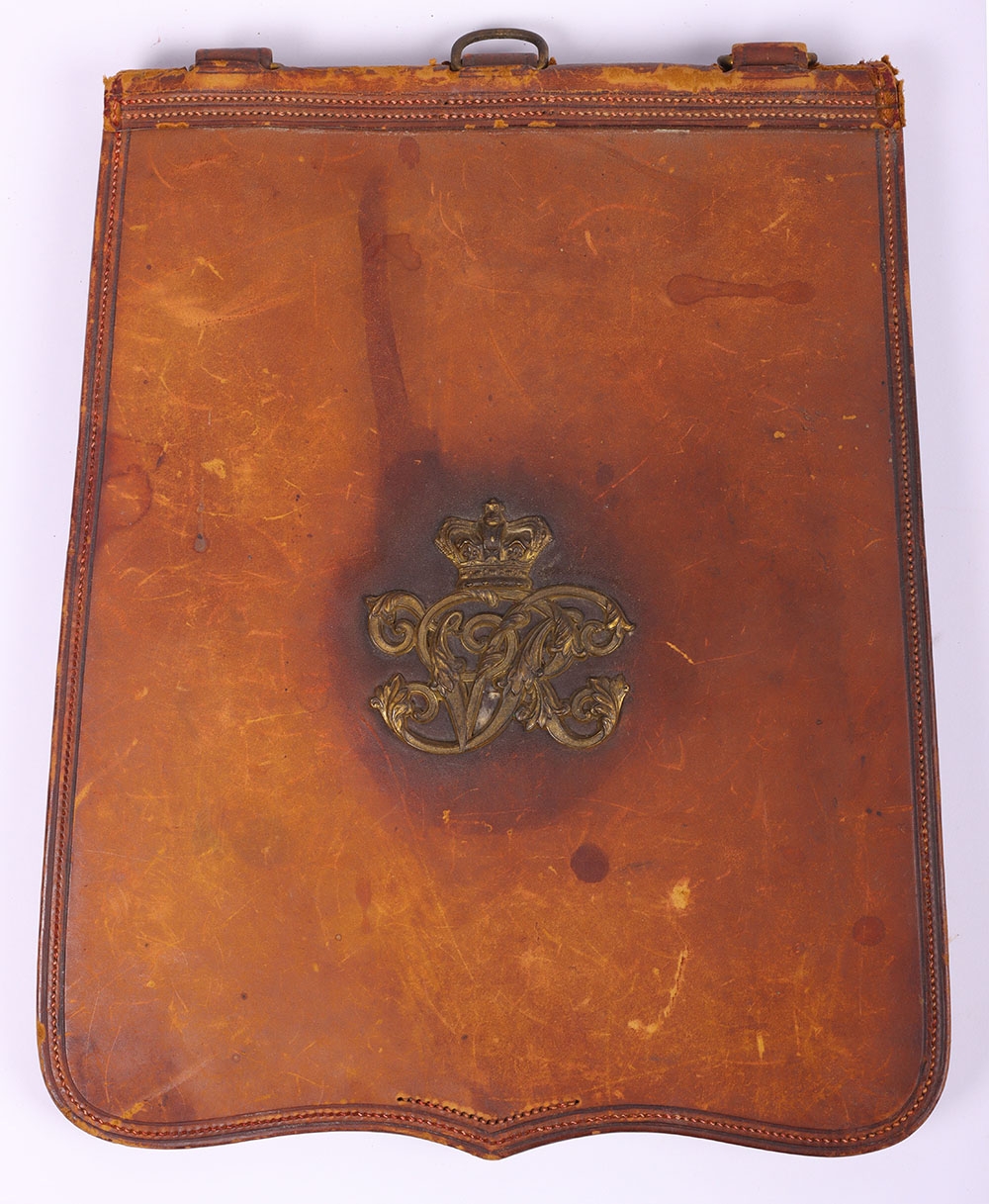 Victorian Headquarters Staff Officers Undress Sabretache, Russian leather example with gilt brass crowned VR cipher to the centre. Three brass ‘D’ rings to the top. Complete with rear back pouch.