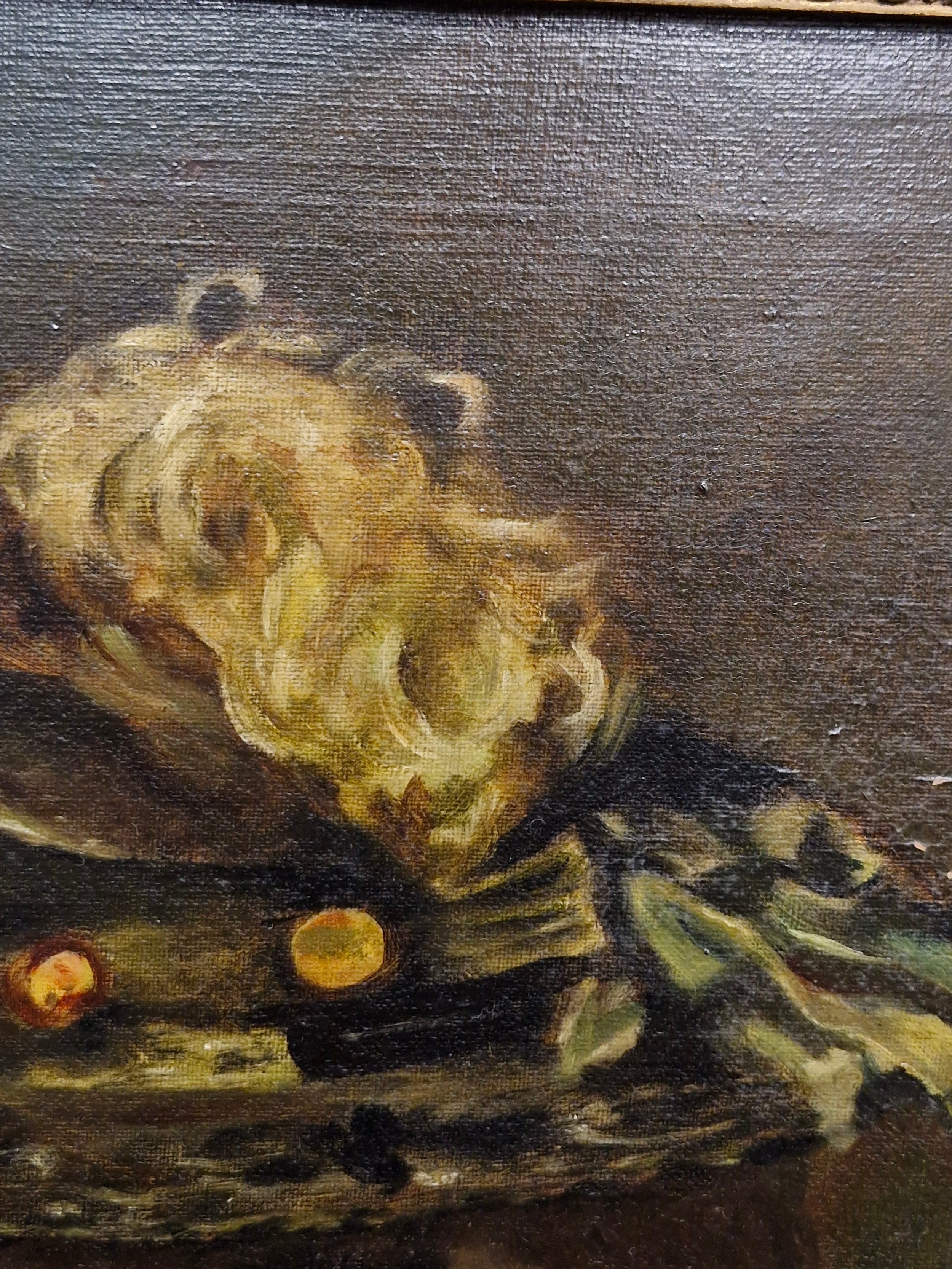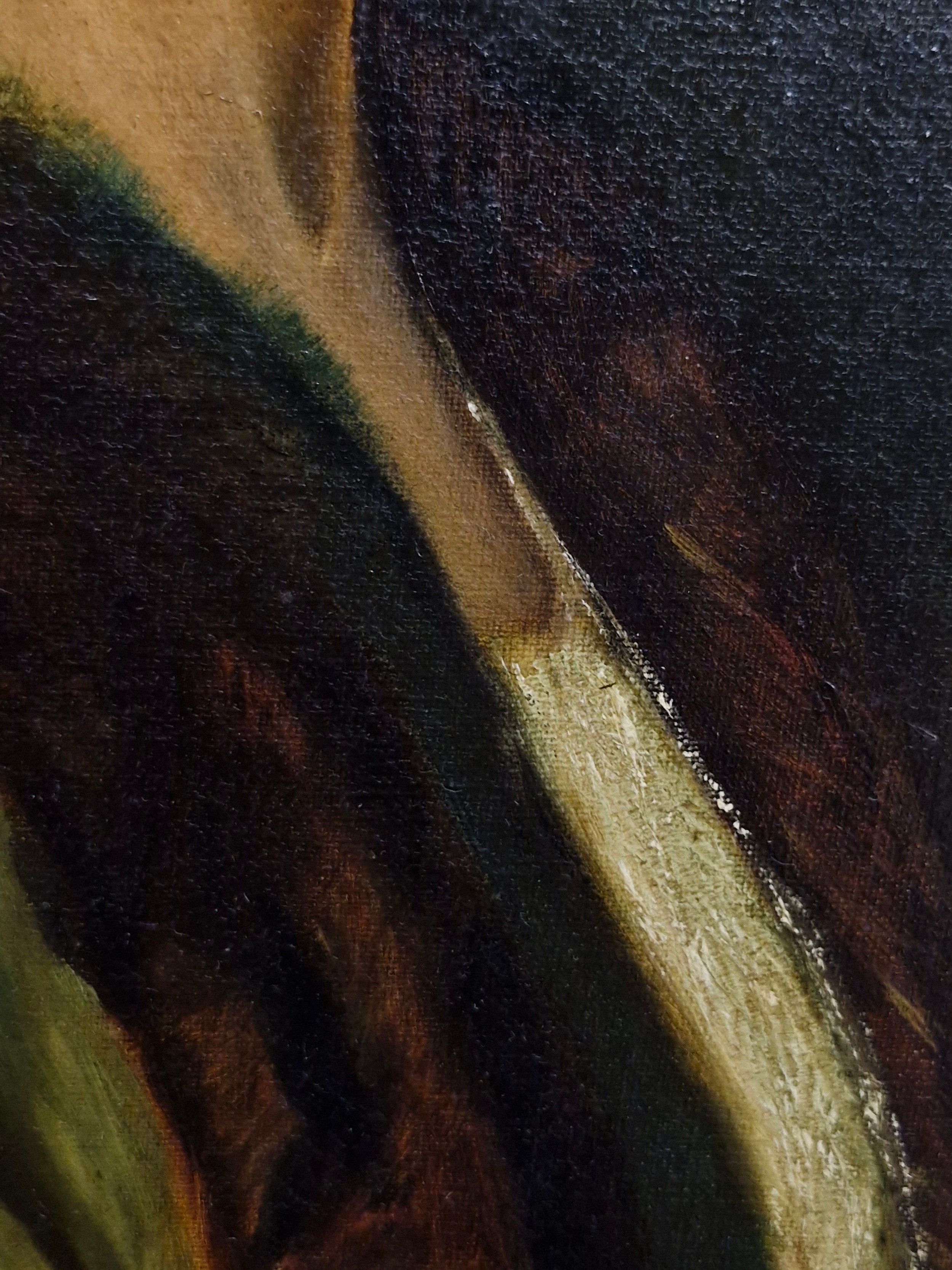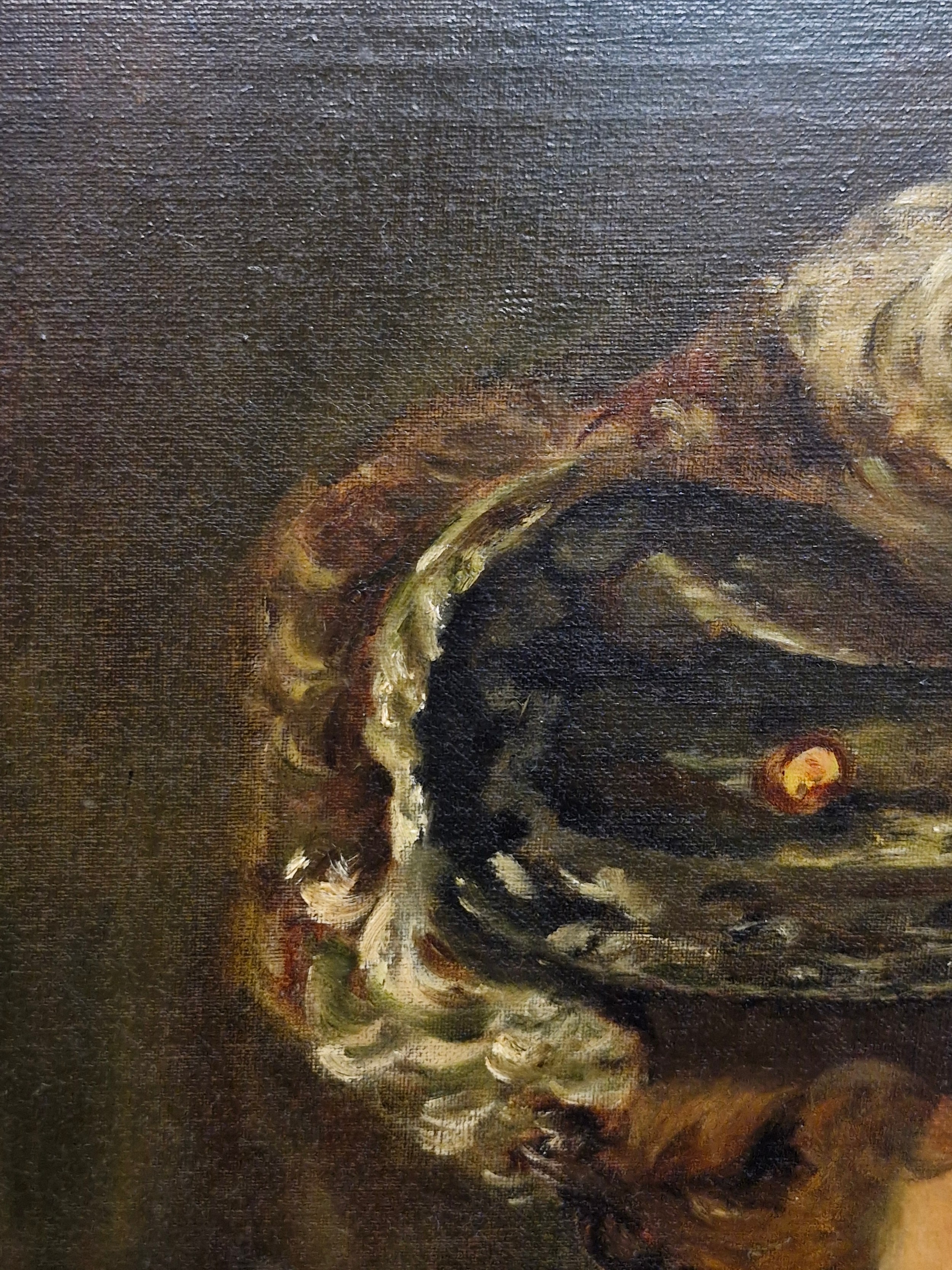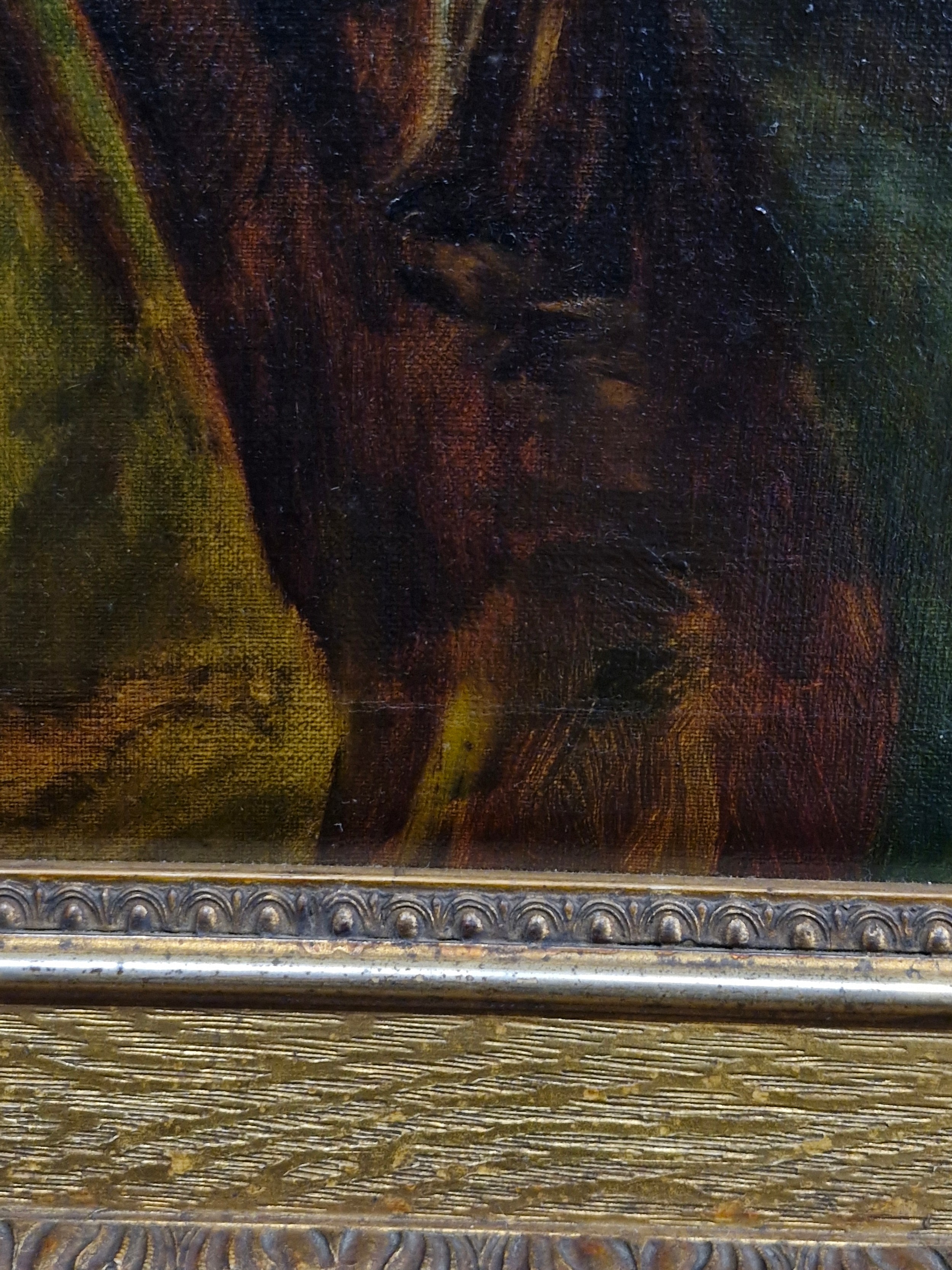 Super Star Lot: A fine and beautiful 19th century oil on canvas painting after an Alfred Schwartz (German b.1833) portrait titled 'Nathalie'. Features the well observed 'Portrait of a Lady' with elaborate ostrich feathered hat and fur stole. Titled to verso and housed in a molded agapanthus leaf gilt frame. Small repair to canvas but not noticeable from front. Beautiful Work.