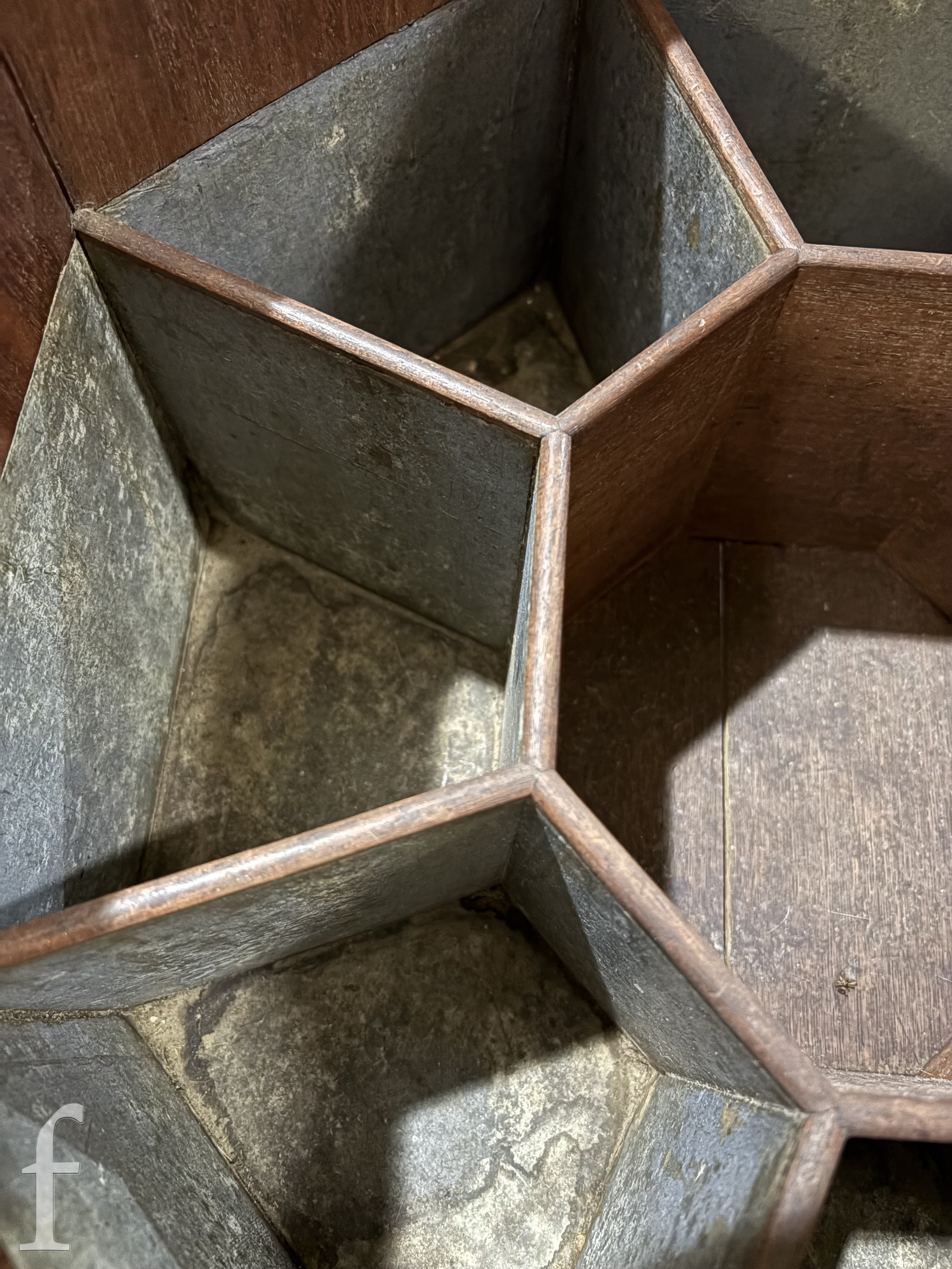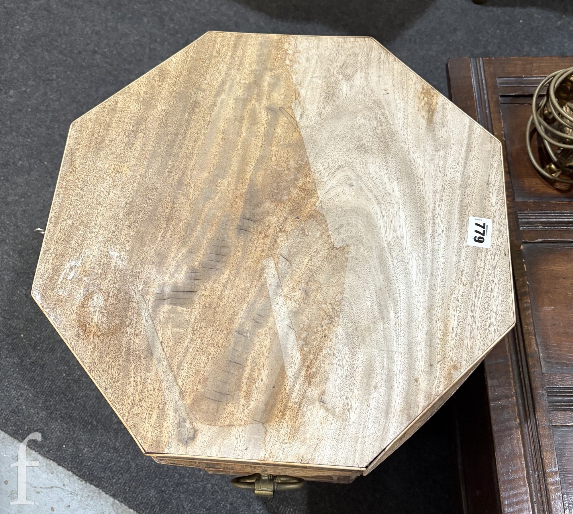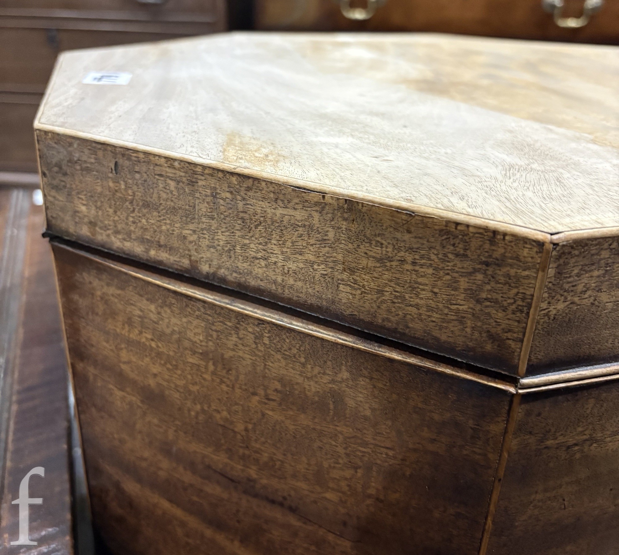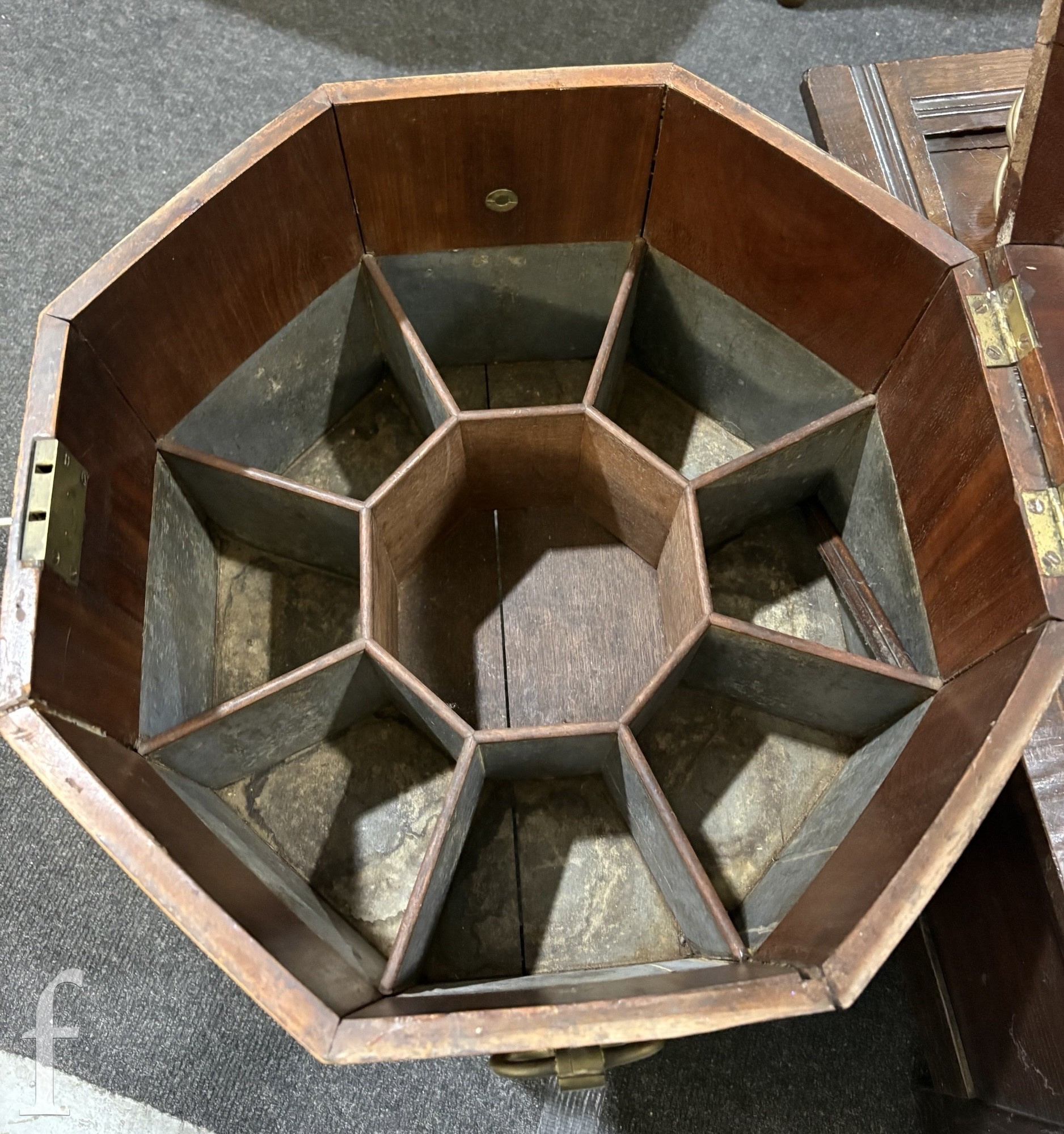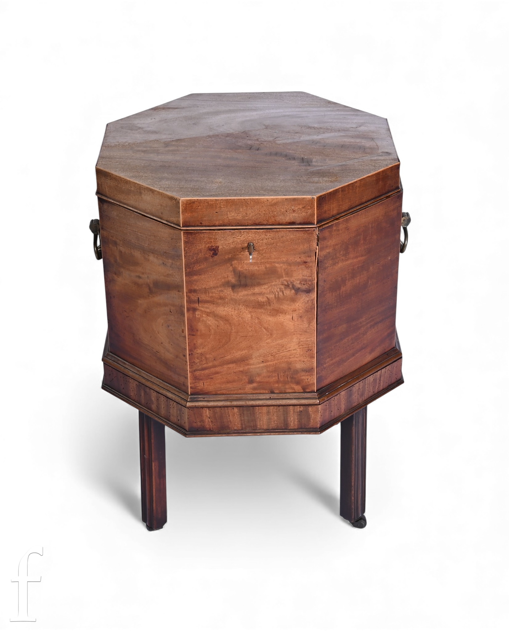 A 19th Century mahogany octagonal cellarette fitted with a divisioned interior on moulded block legs, sun bleached, width 46cm.