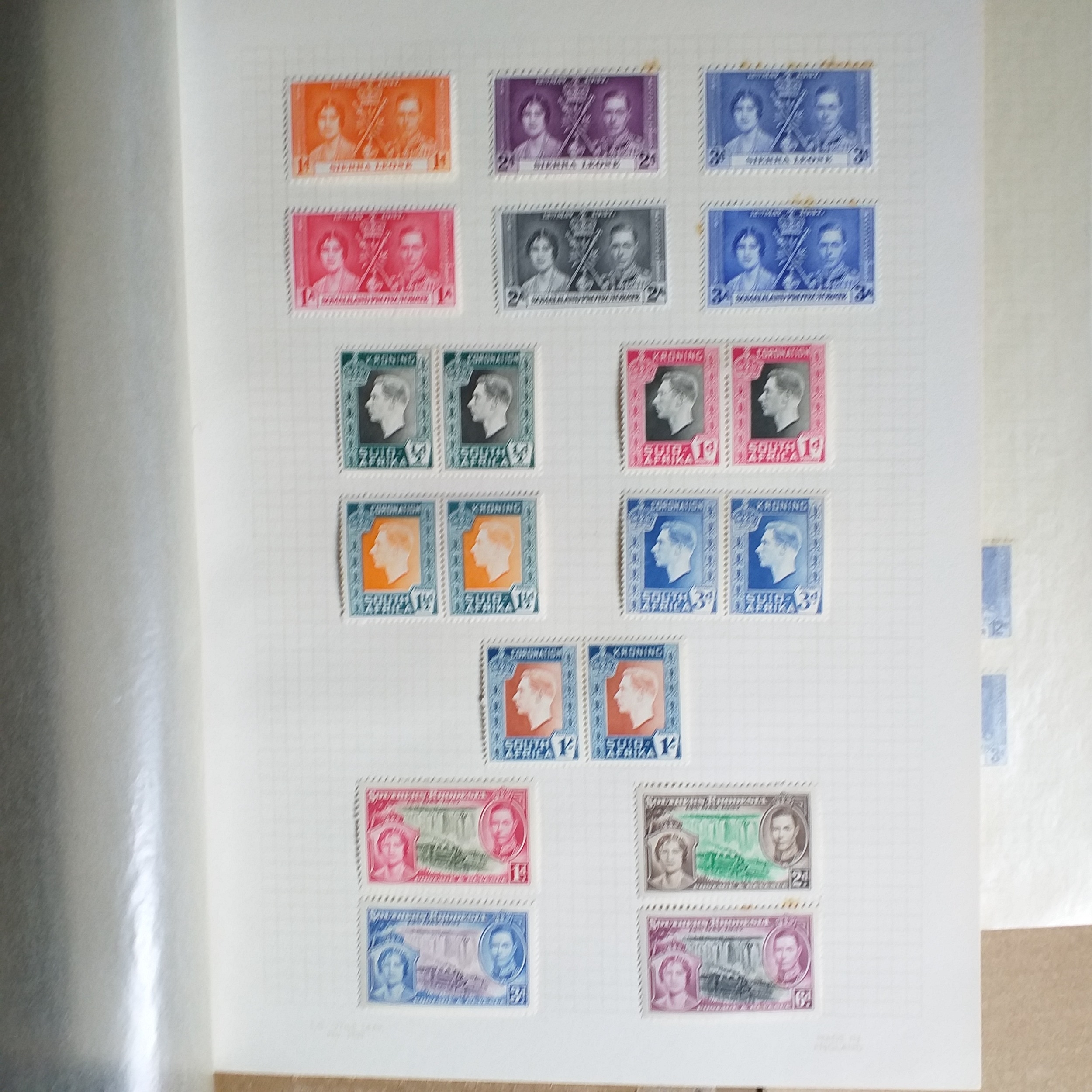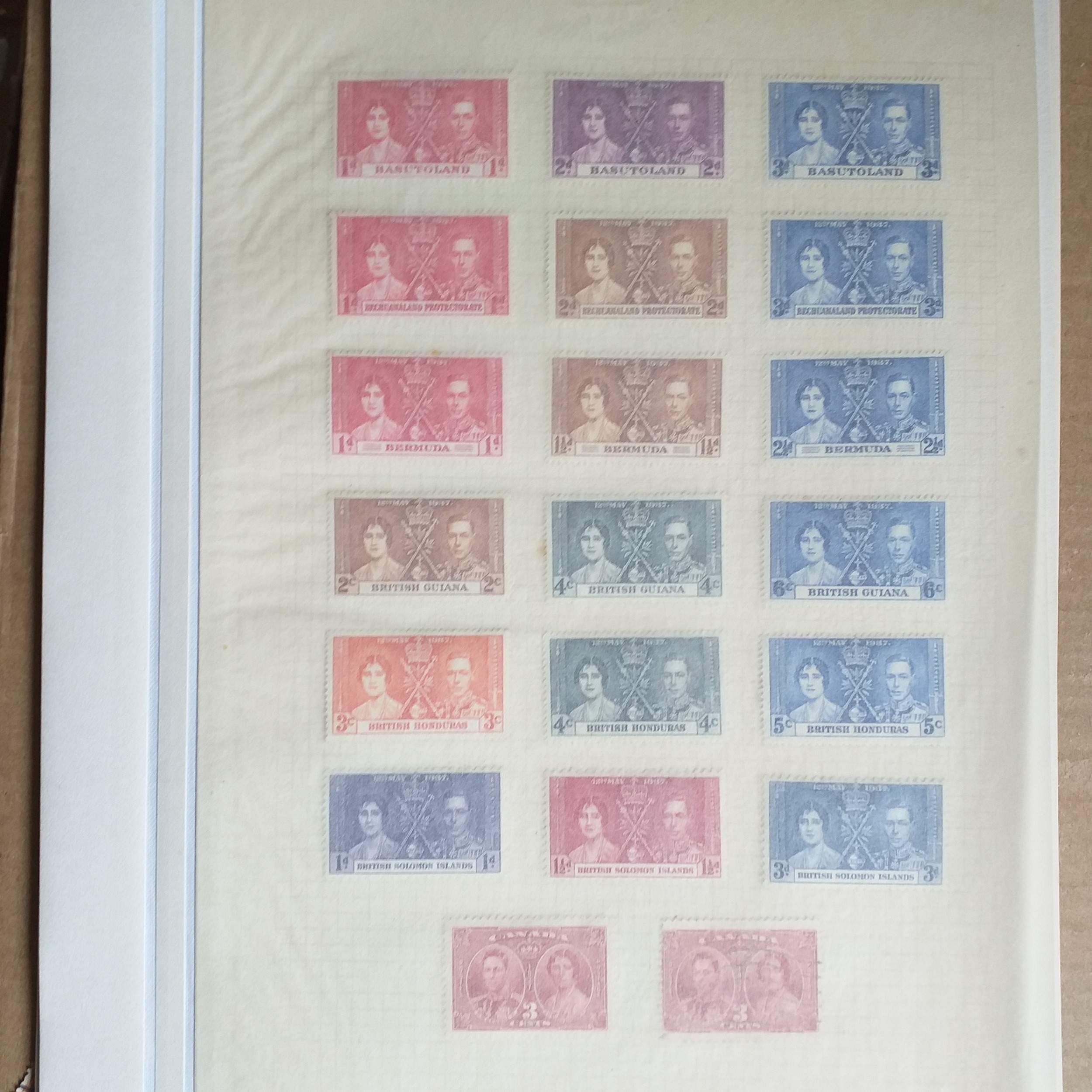 Omnibus - 1937 Coronation - Mint collection on 10 album pages,apart from the Newfoundland set (14) looks to be complete, Cat Val 150+