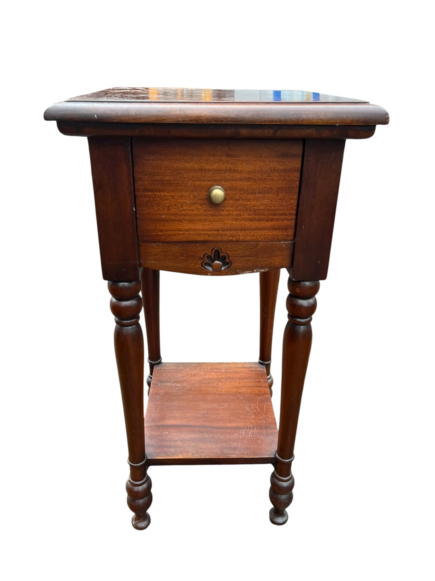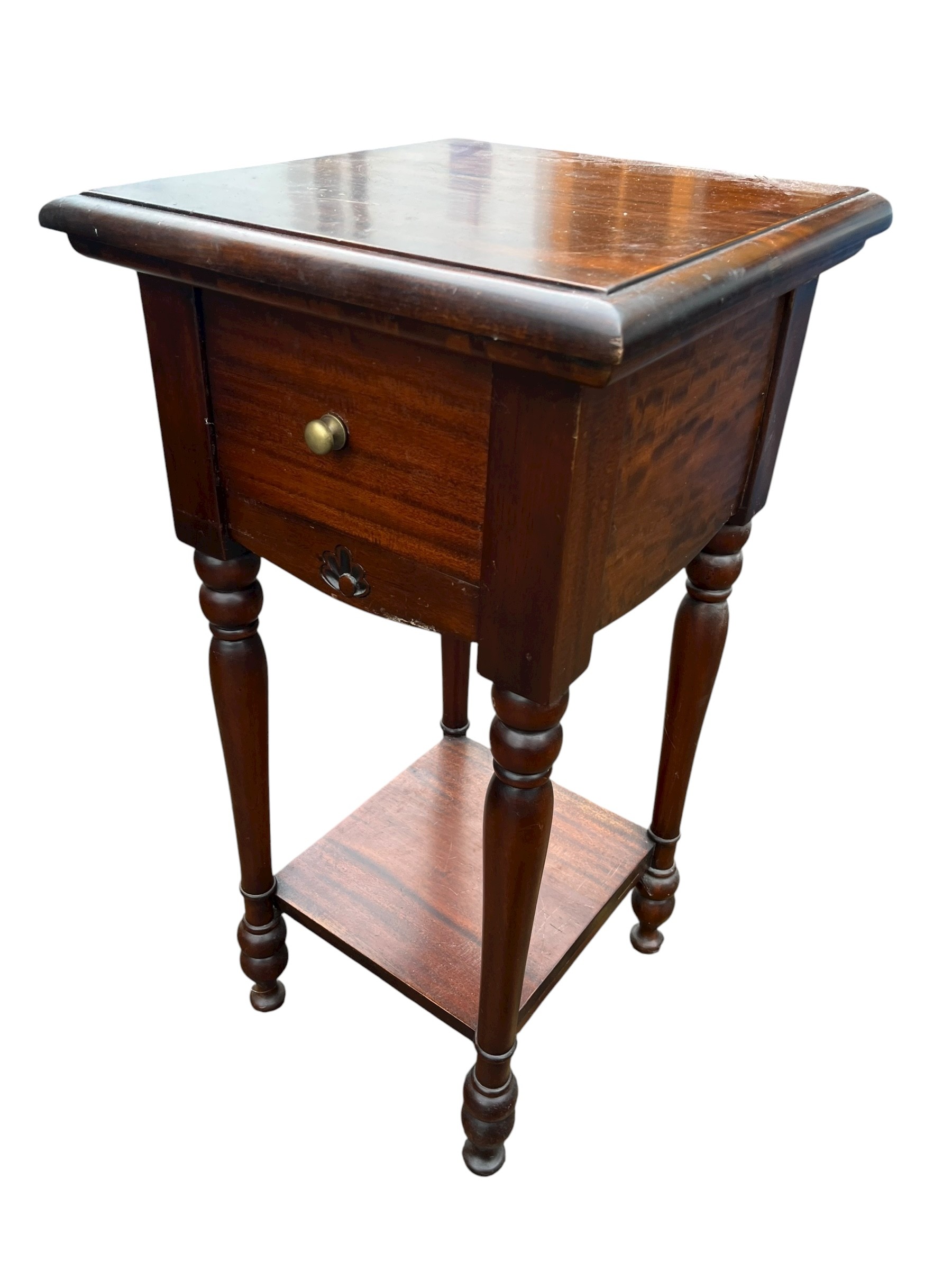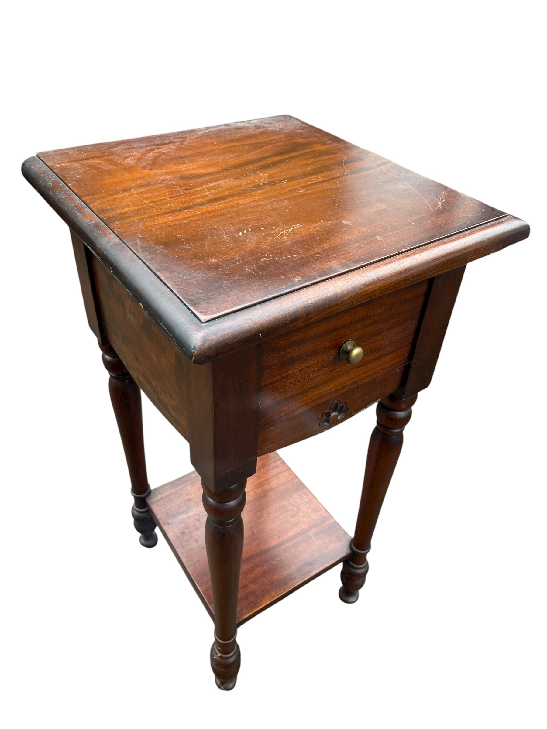 A MAHOGANY SINGLE DRAWERRED LAMP STAND 16"sq 31"tall