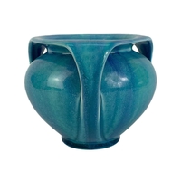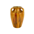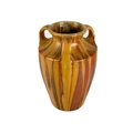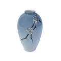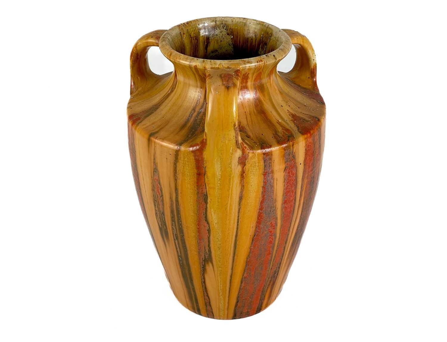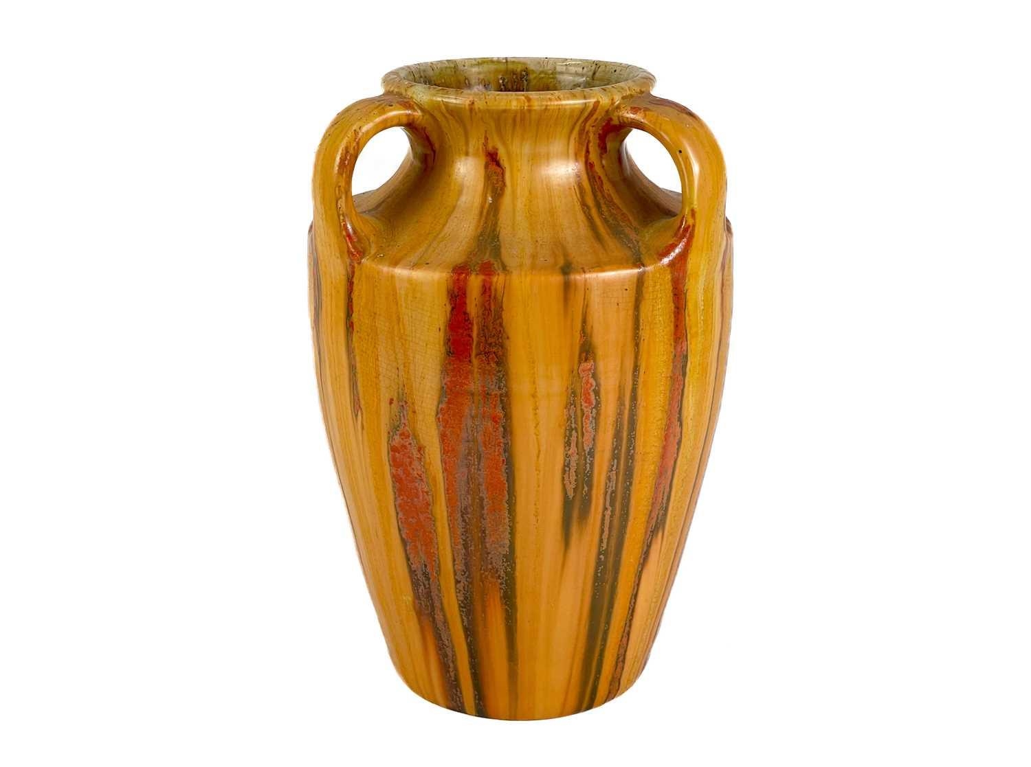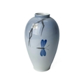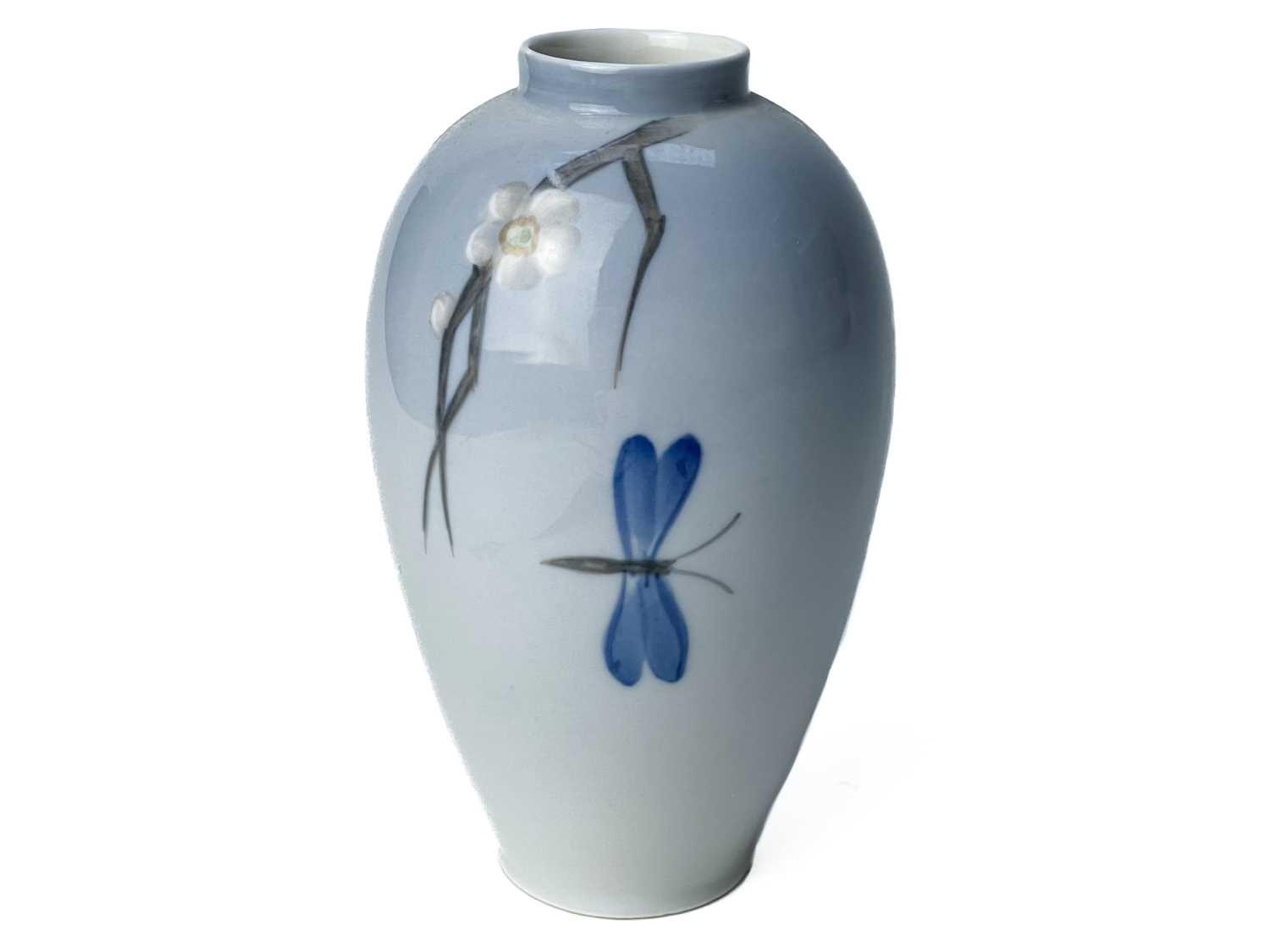 A Royal Copenhagen vase. With flower and dragonfly painted decoration, height 14cm; together with a Candy ware triple handled vase, height 27cm.