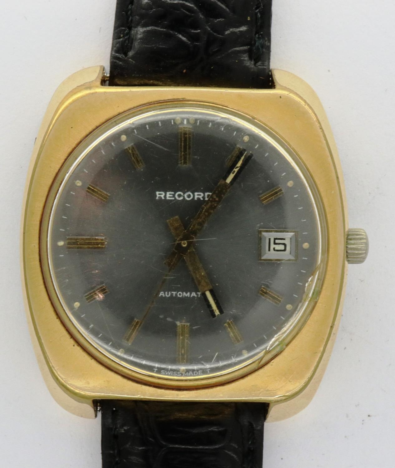 Record: gents vintage automatic wristwatch, dial D: 30 mm, working at lotting. P&P Group 1 (£14+VAT for the first lot and £1+VAT for subsequent lots)