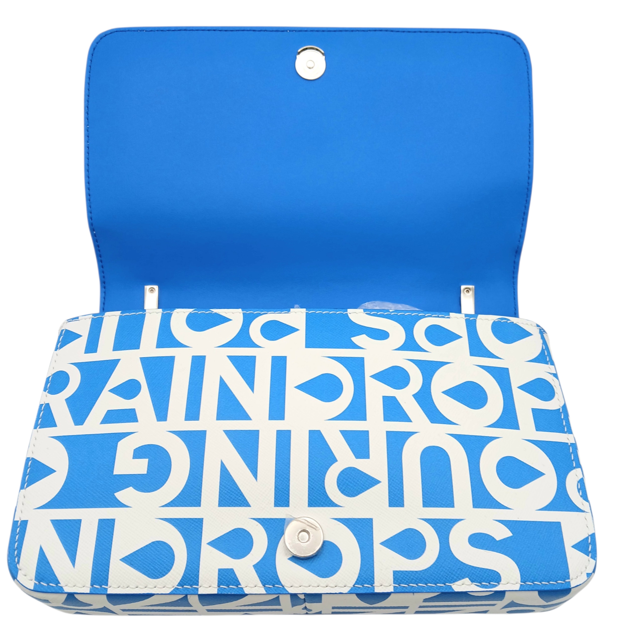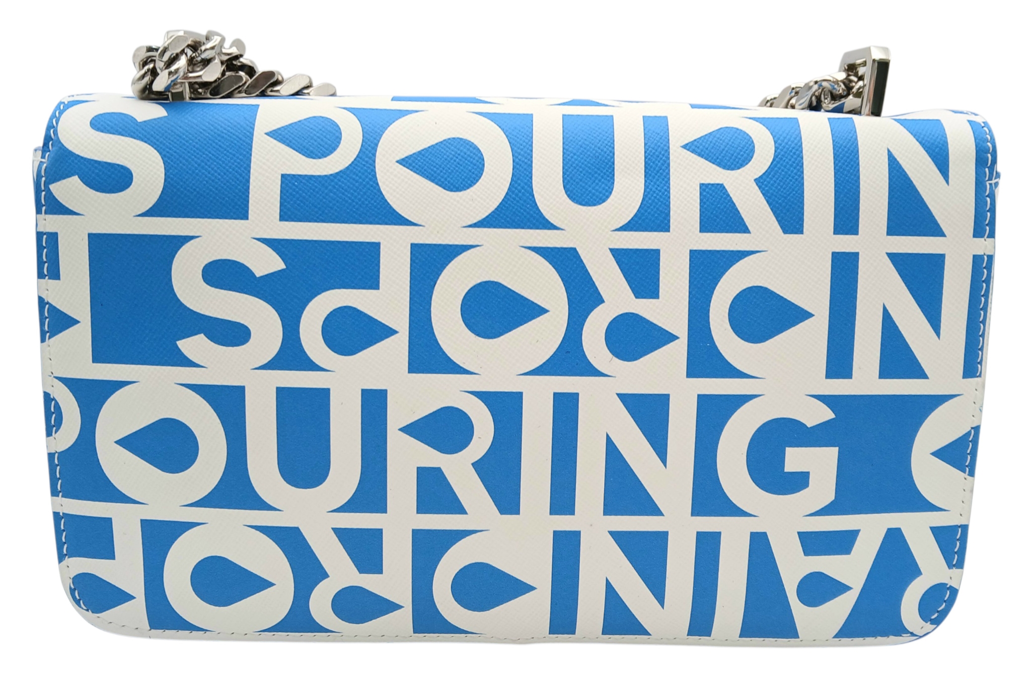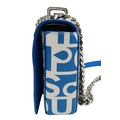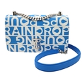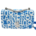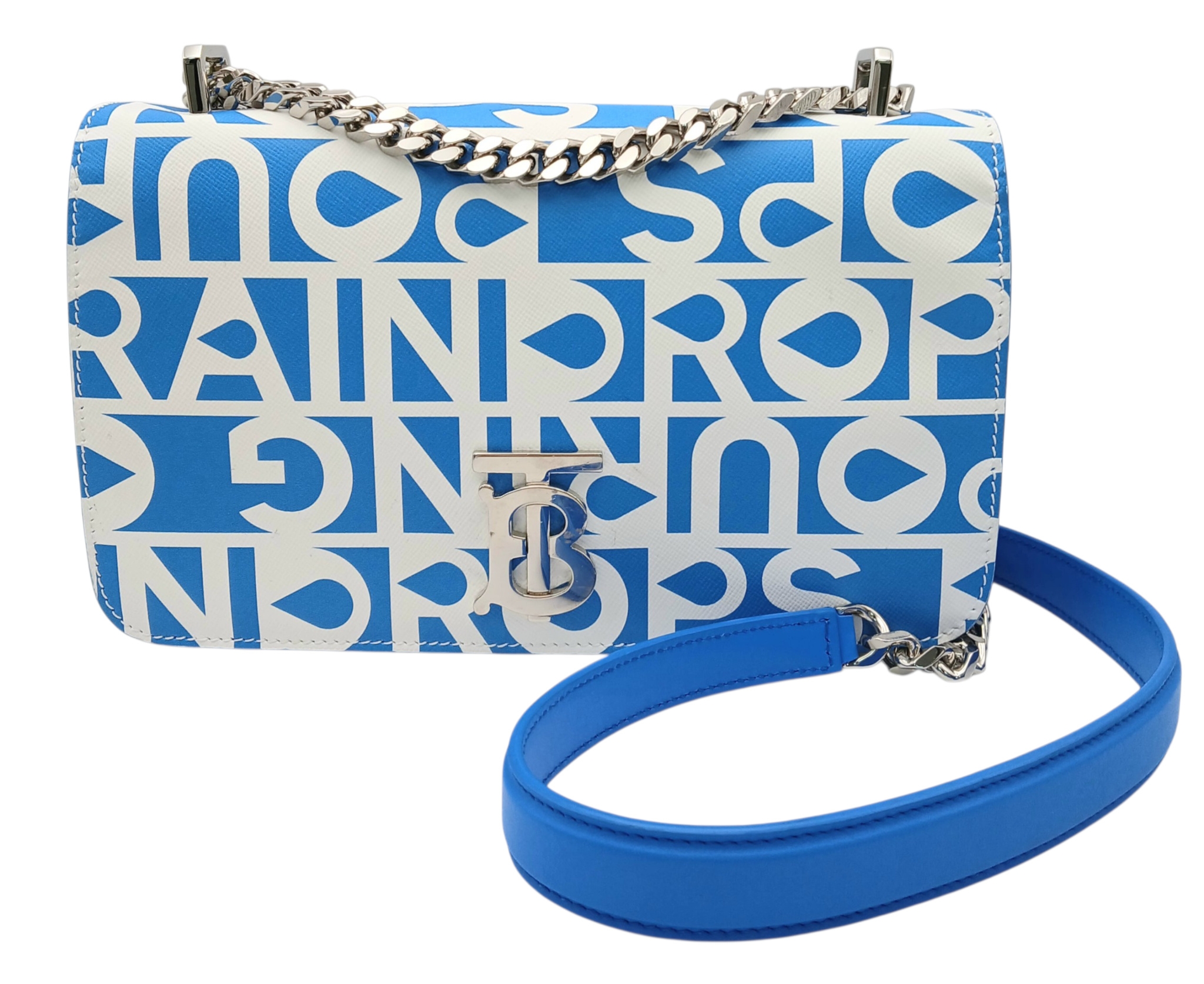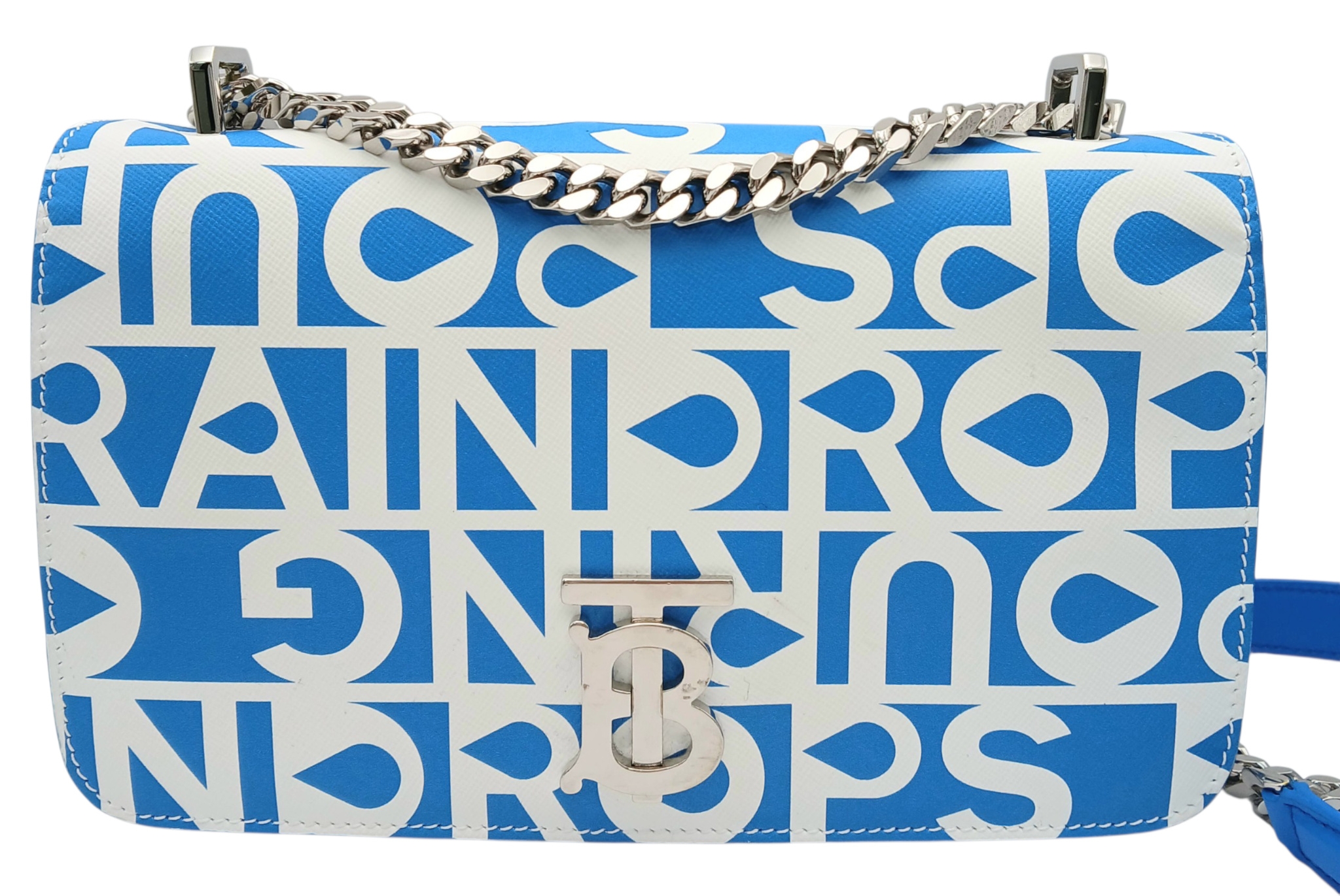 A Burberry Blue Lola Raindrop Pouring Shoulder Bag. Leather exterior with silver-toned hardware, chain and leather strap, and magnetic closure. Beige textile interior with a an open side pocket. Comes with dust cover. Approximately 23cm length x 14cm height. A few light stains to exterior otherwise in good condition overall - please see photos or request a condition report. Ref: 14388
