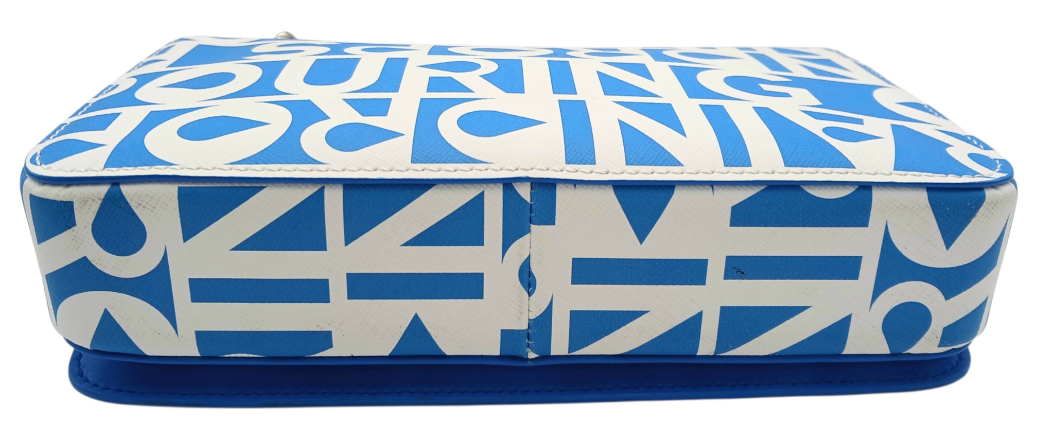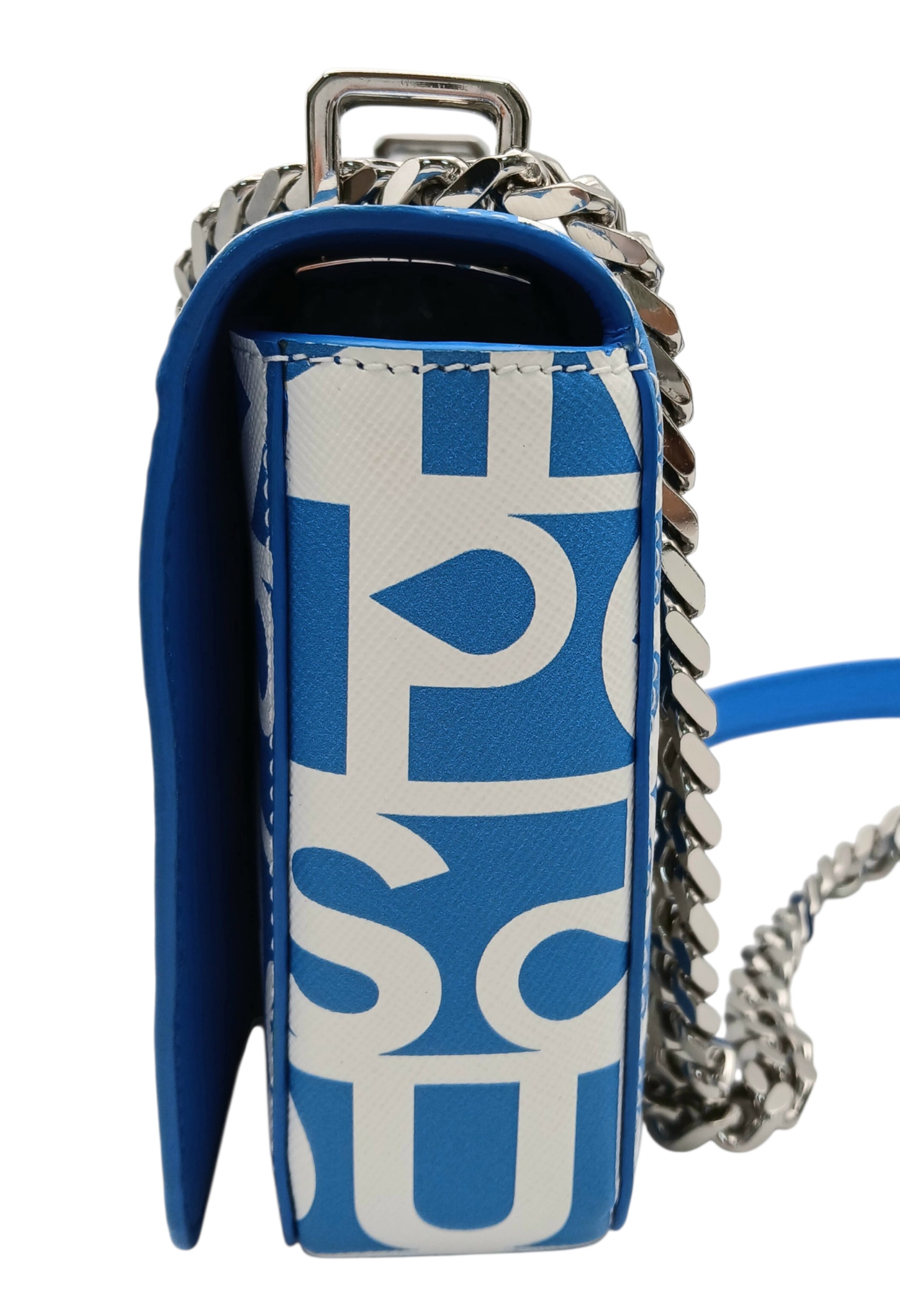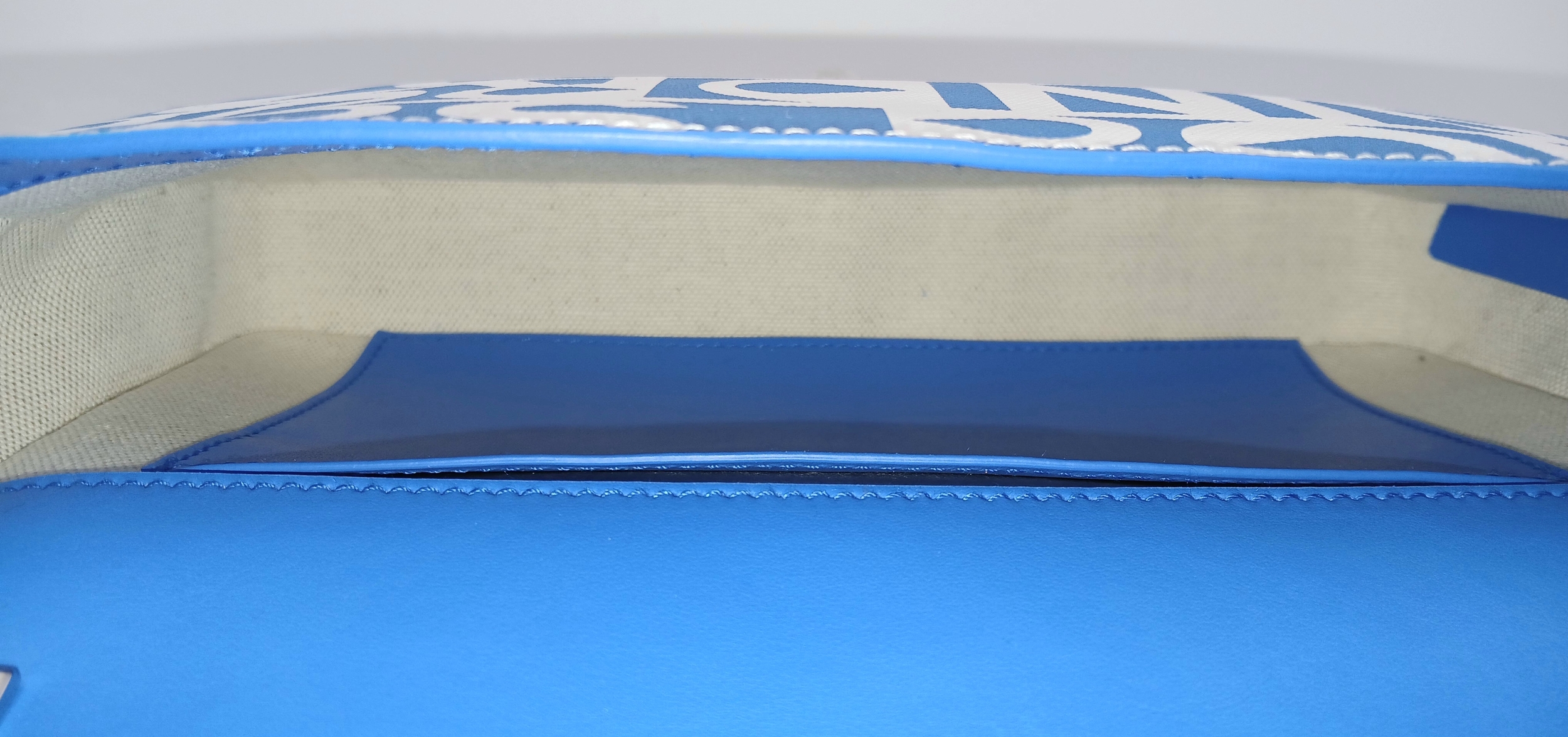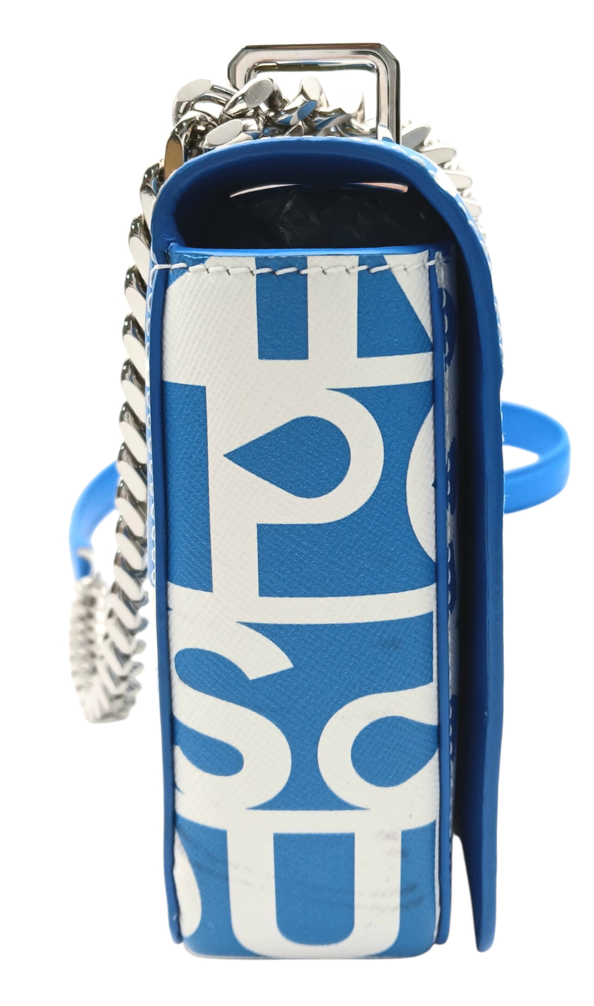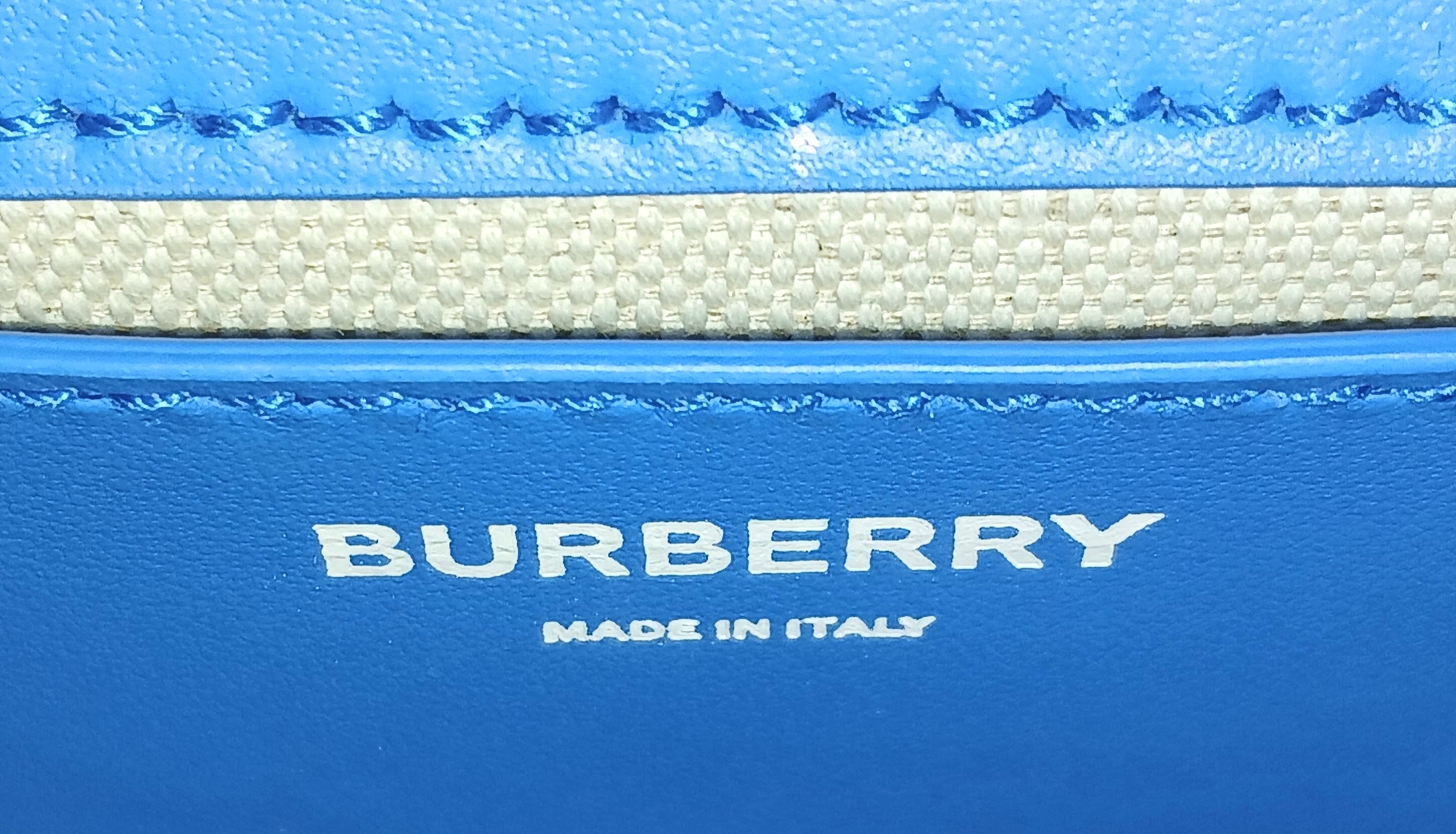 A Burberry Blue Lola Raindrop Pouring Shoulder Bag. Leather exterior with silver-toned hardware, chain and leather strap, and magnetic closure. Beige textile interior with a an open side pocket. Comes with dust cover. Approximately 23cm length x 14cm height. A few light stains to exterior otherwise in good condition overall - please see photos or request a condition report. Ref: 14388