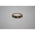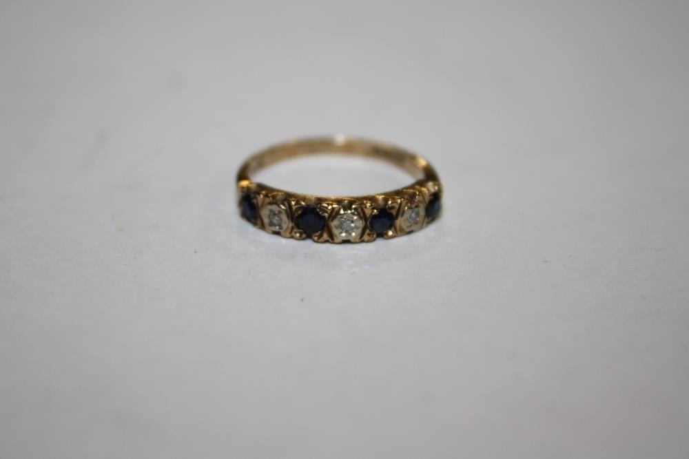 A HALLMARKED 9 CARAT GOLD SEVEN STONE DRESS RING SET WITH BLUE AND CLEAR STONE