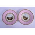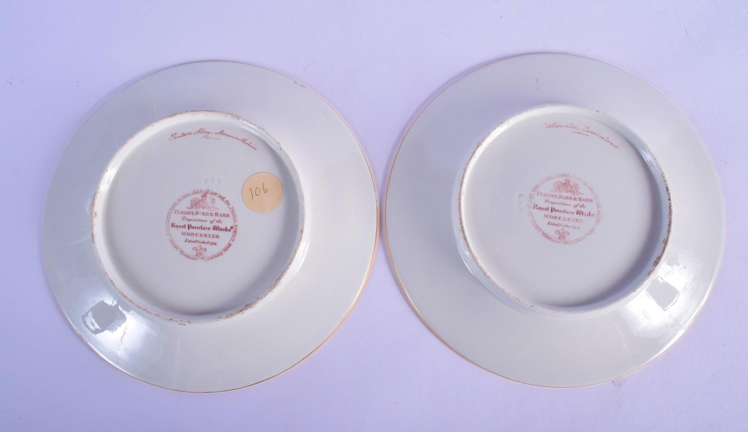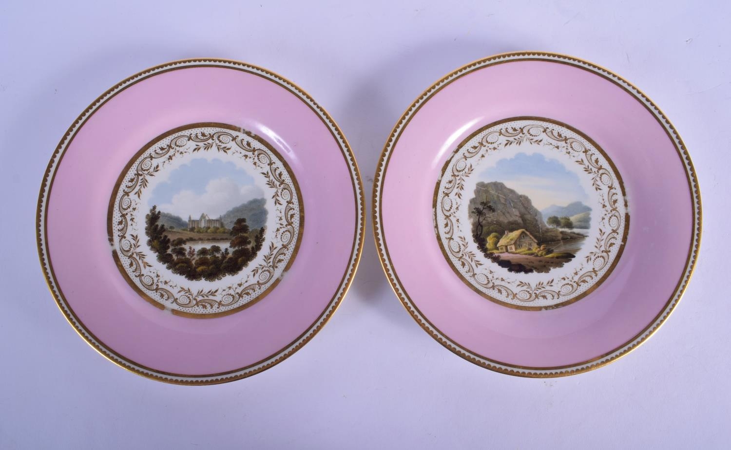 Flight Barr and Barr plate painted with Tintern Abbey, Monmouthshire, titled, under a pink border andanother similar with Ullswater, Cumberland, titled. 21cm Diameter (2)