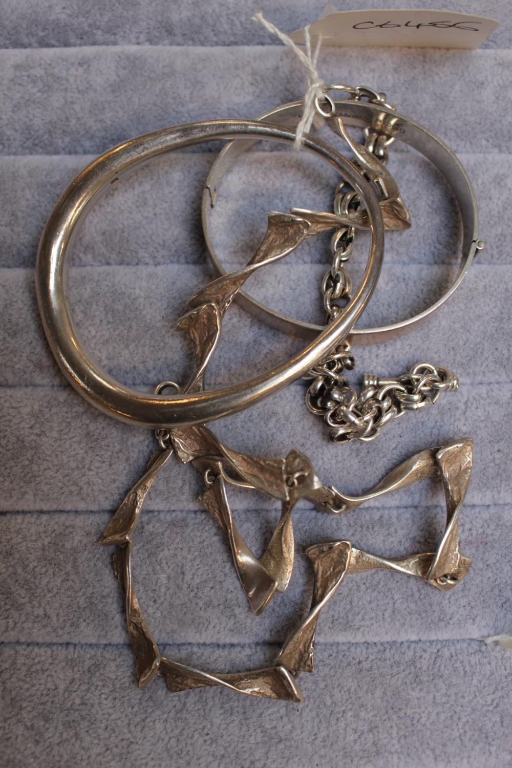 Collection of assorted Silver Jewellery inc. Georg Jensen Type Silver Bangle, Silver Bangle, Silver Chain Bracelet and a Silver Twisted Bark effect Necklace