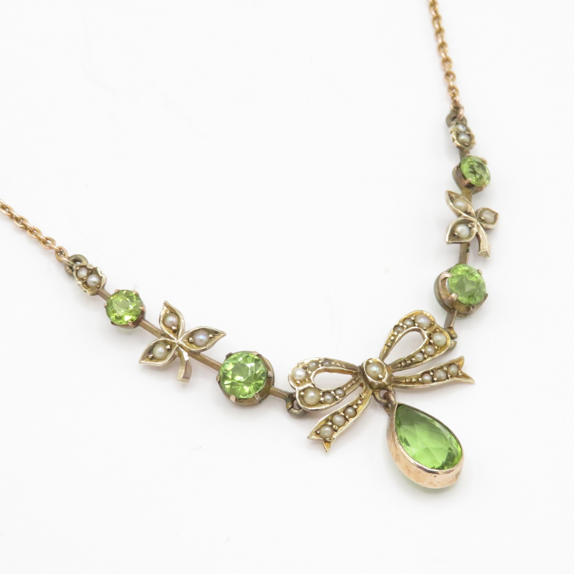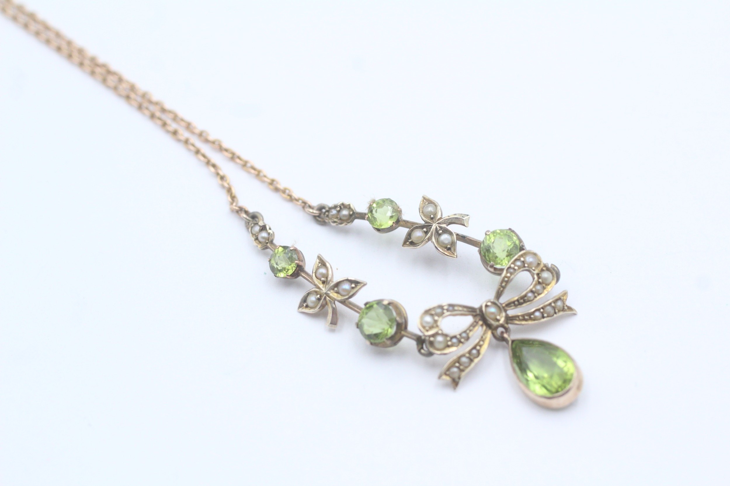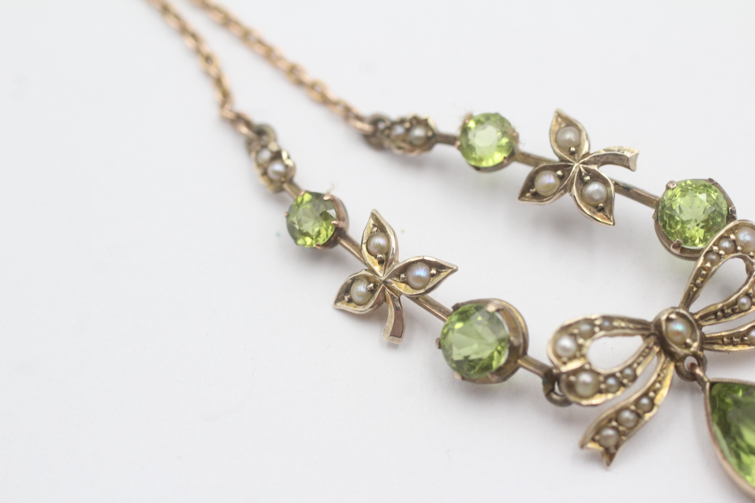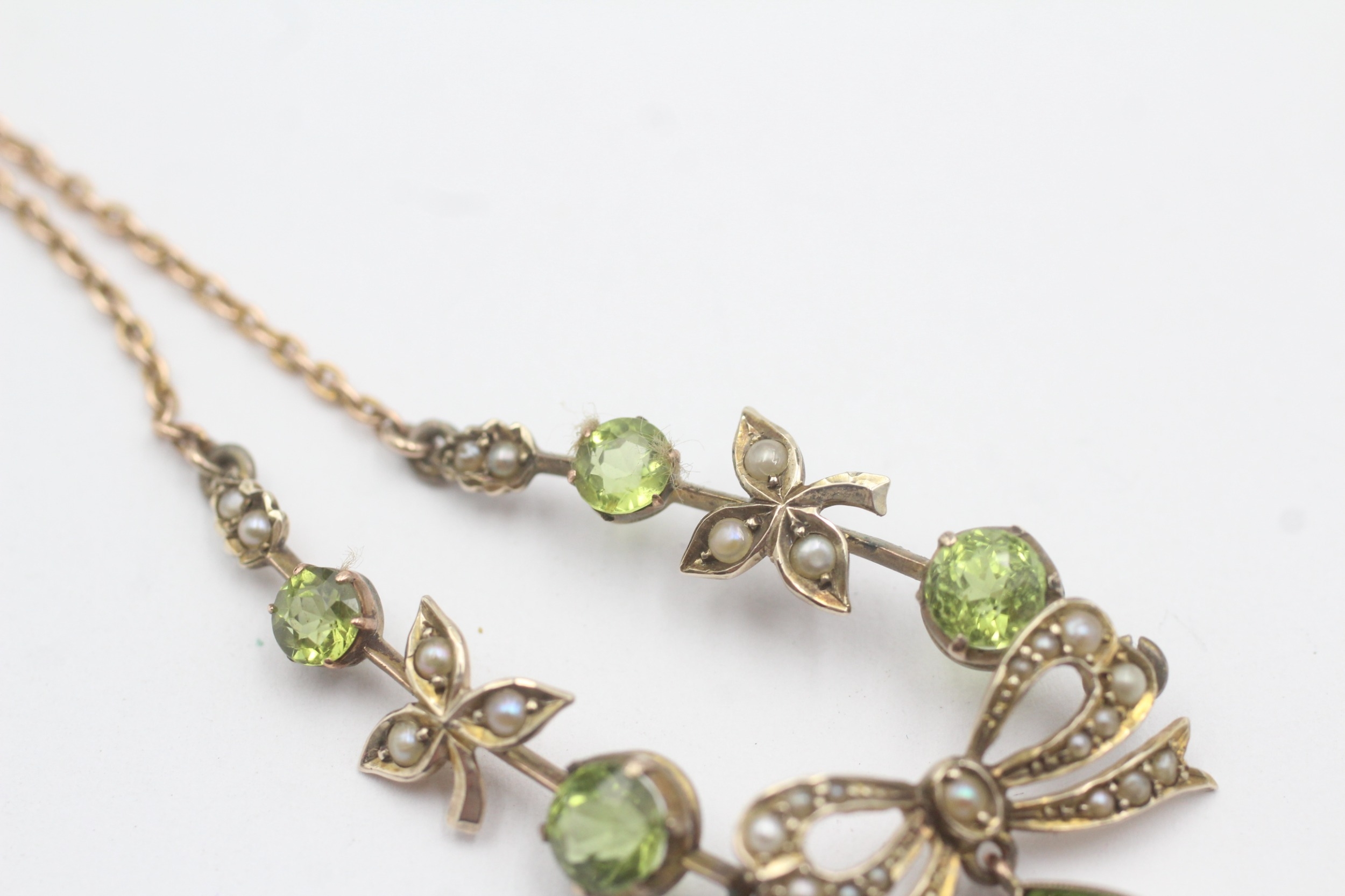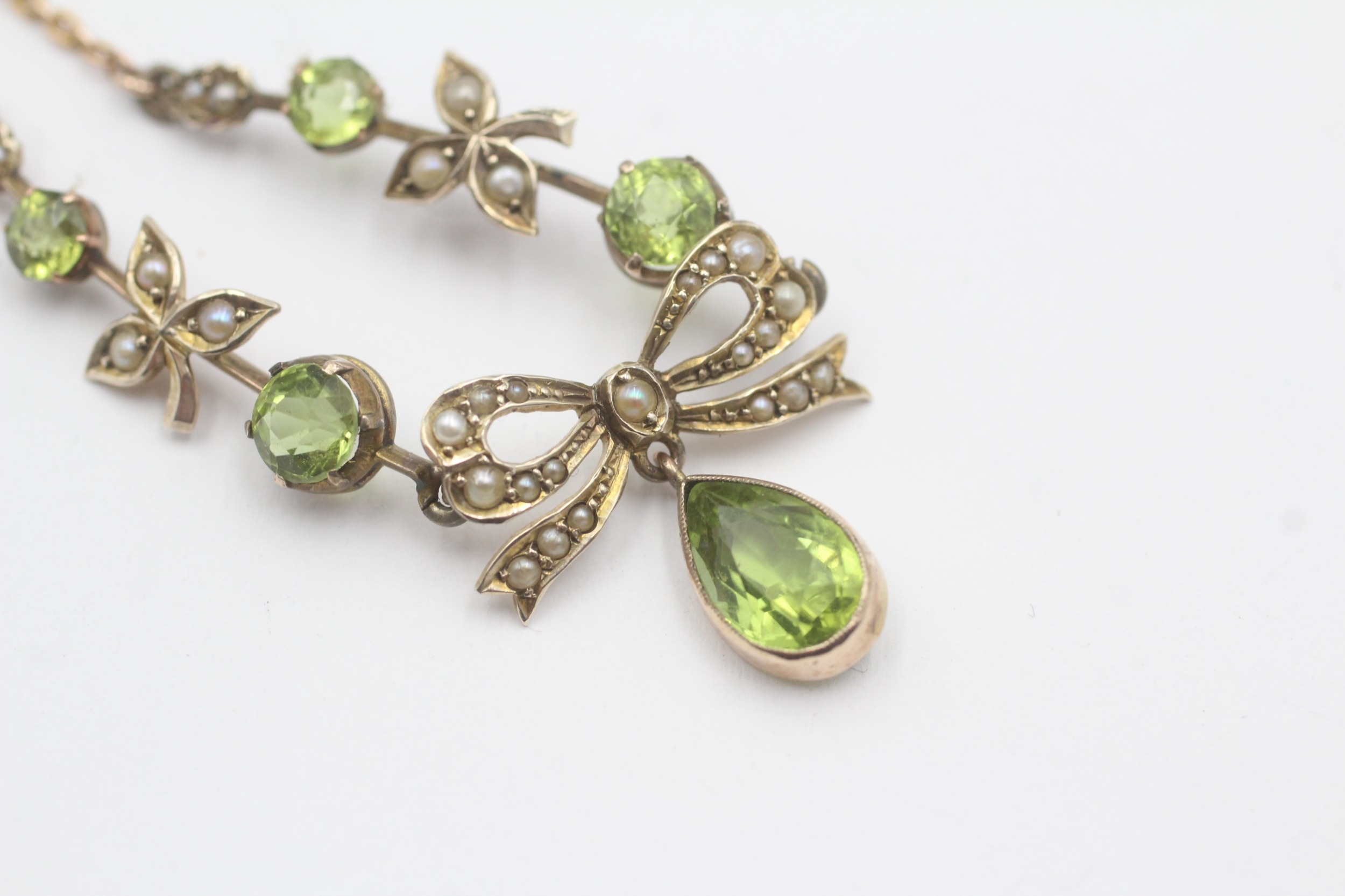 9ct gold peridot split pearl necklace (7.6g)