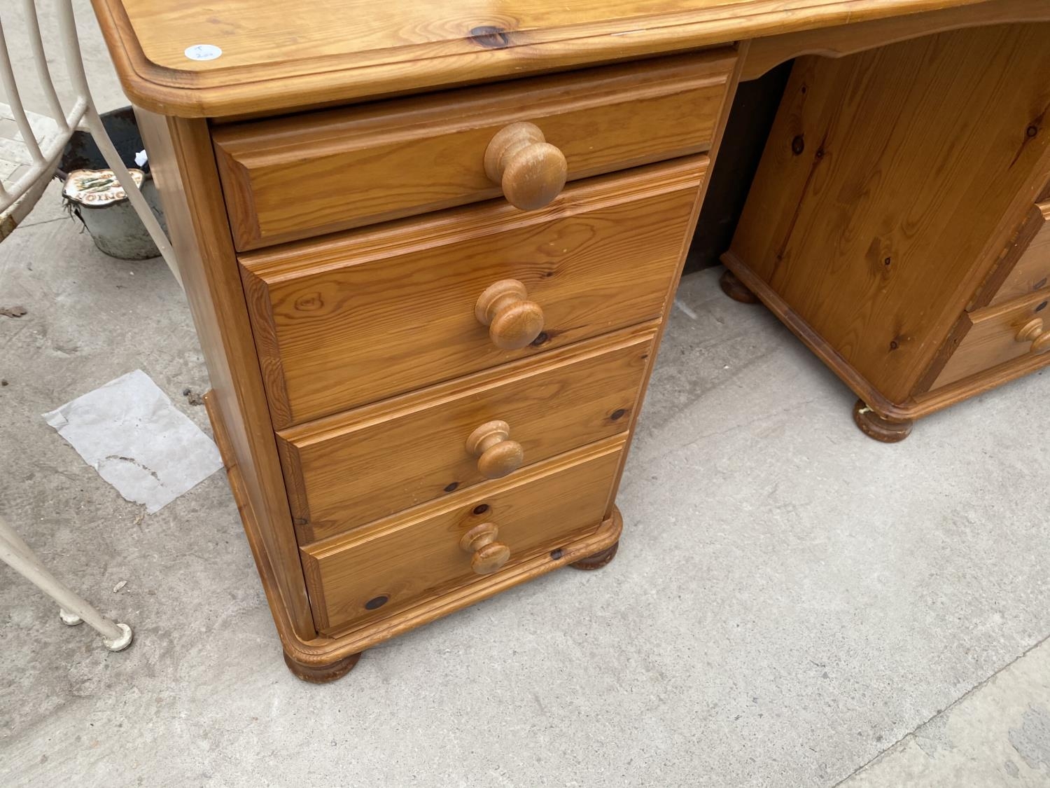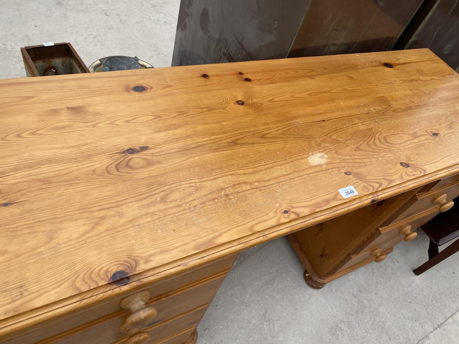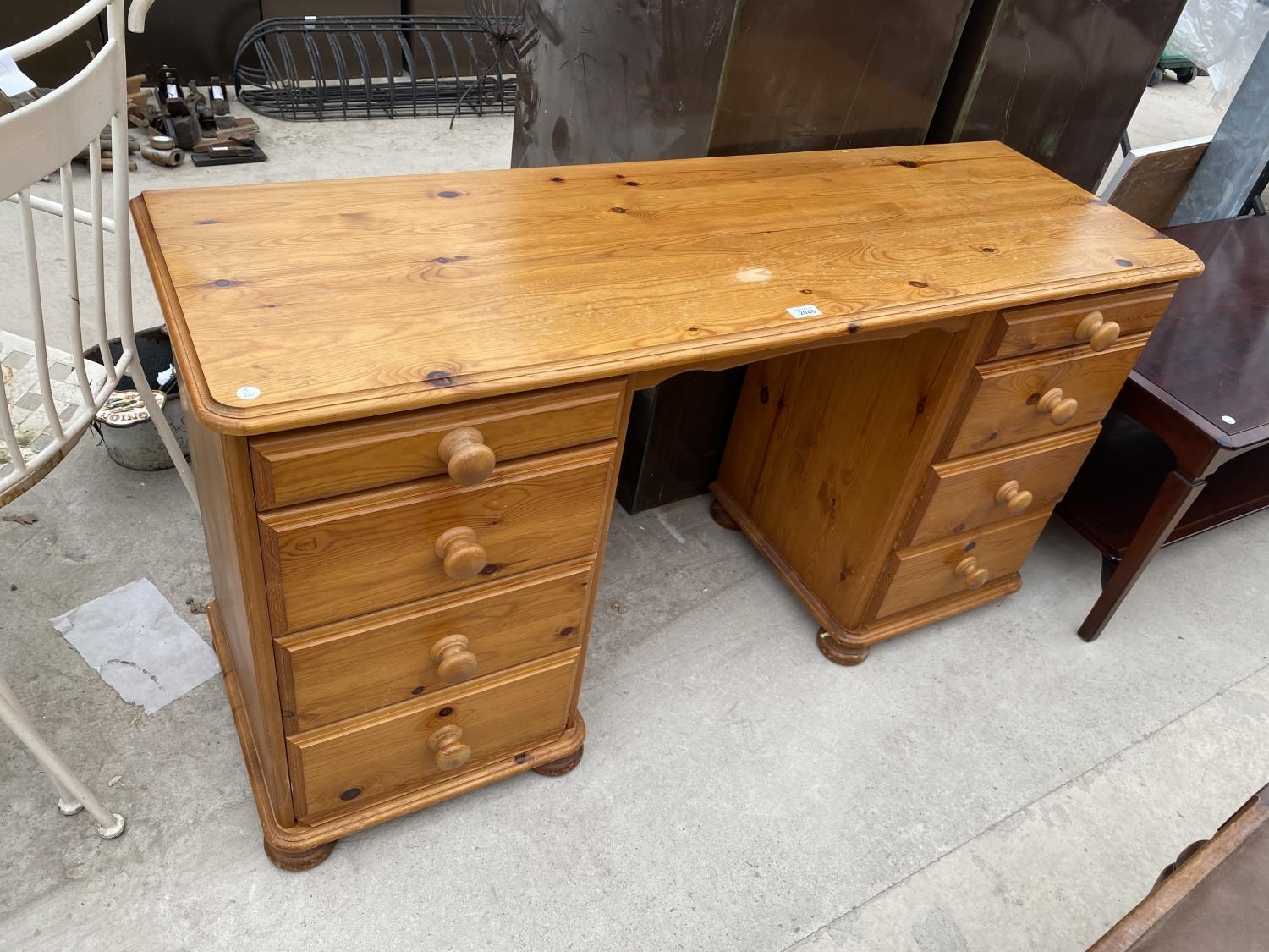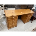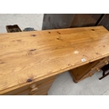 A PINE DESK WITH EIGHT DRAWERS