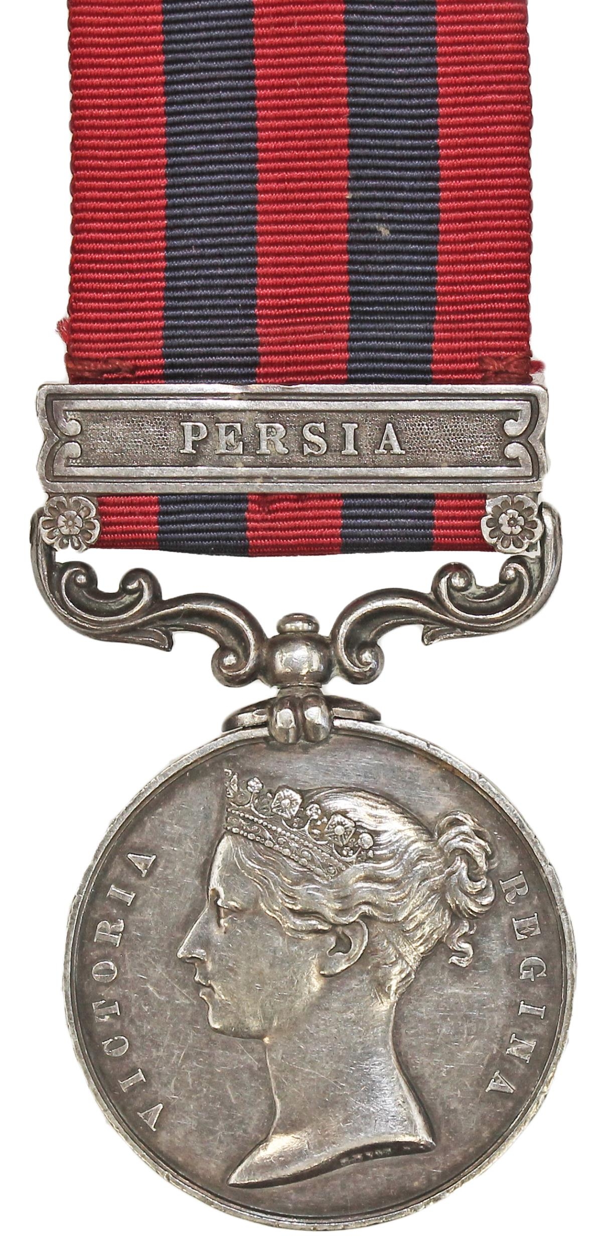 1854 India GSM Persia clasp to S. Jenner 14th King's Lt Dgns various contact marks to edge, nearly very fine. With copied Indian Mutiny roll, died of delirium at Camp Niovar 11/7/58. (See photo) (Y)