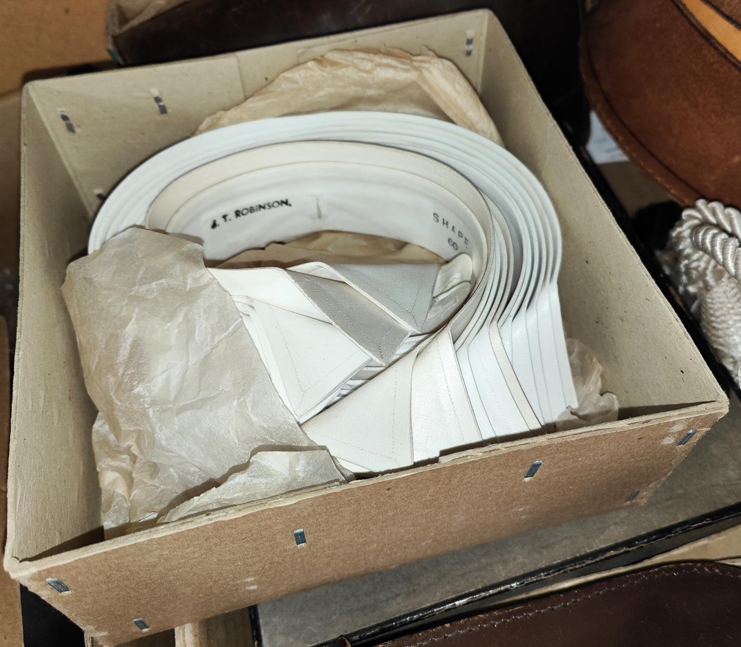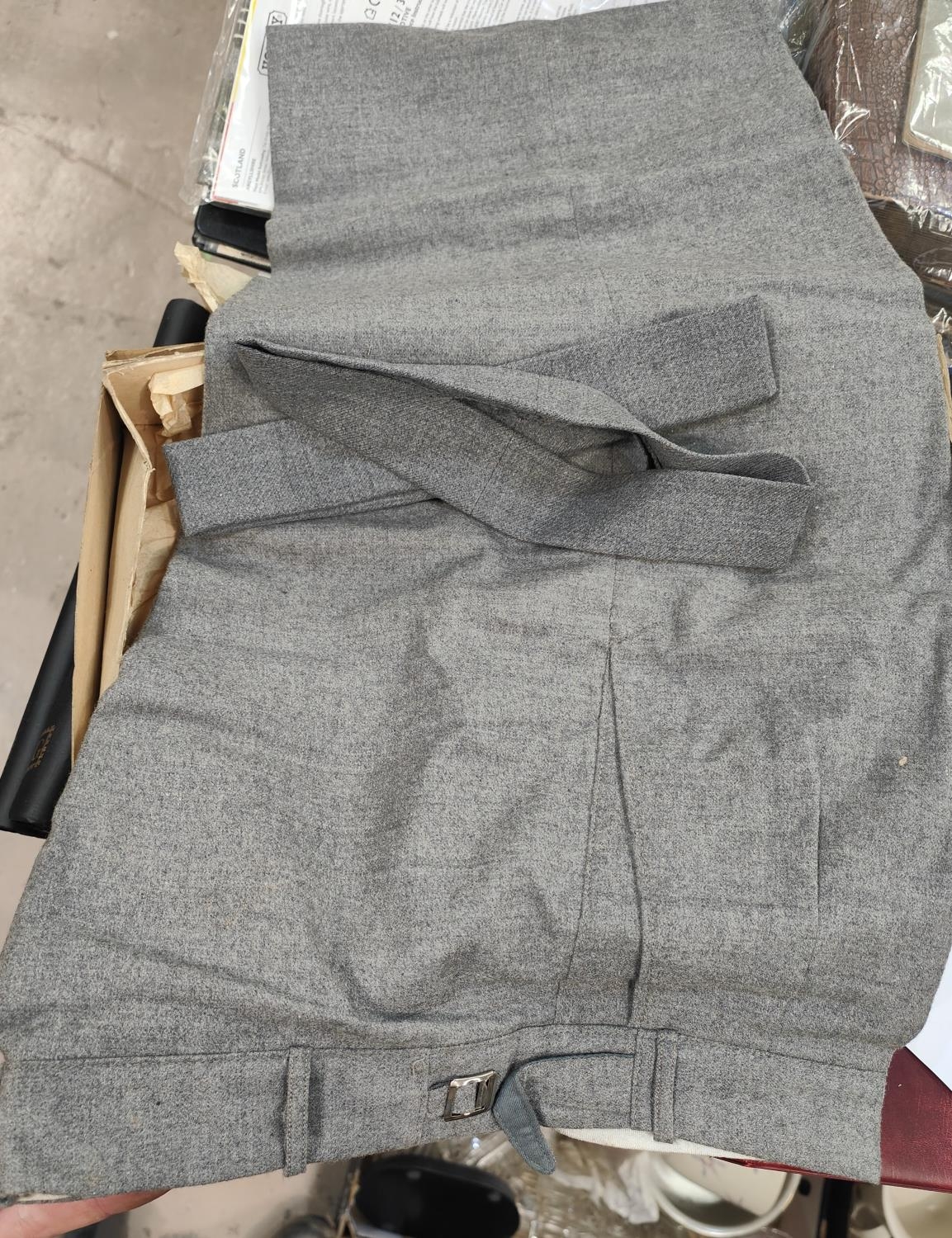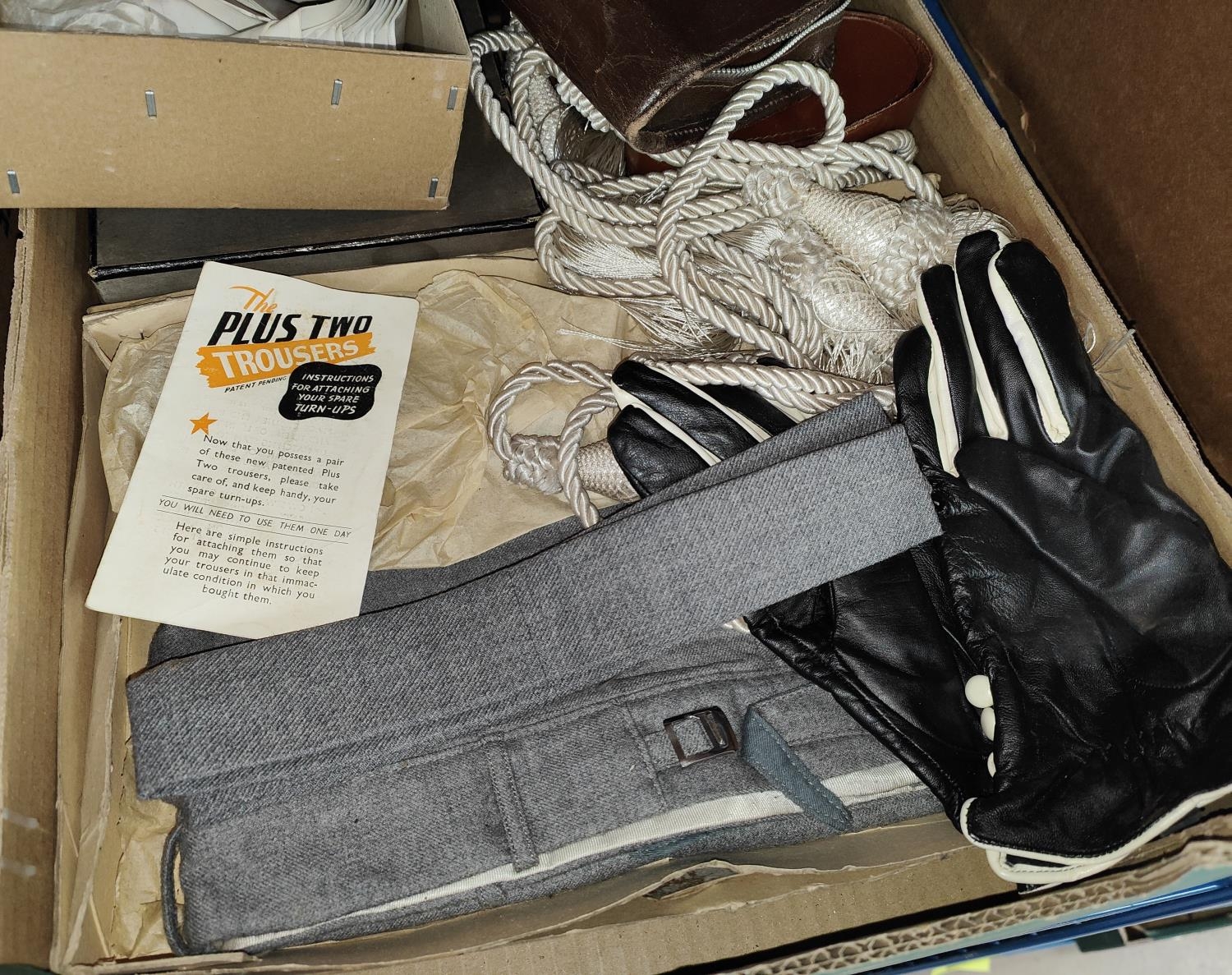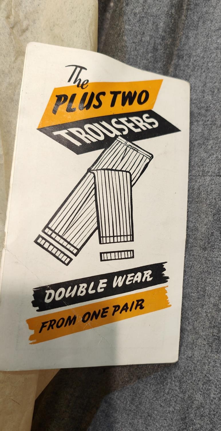 A Utility period pair of 'Plus Two Trousers' with original receipt; boxes of collars; etc.